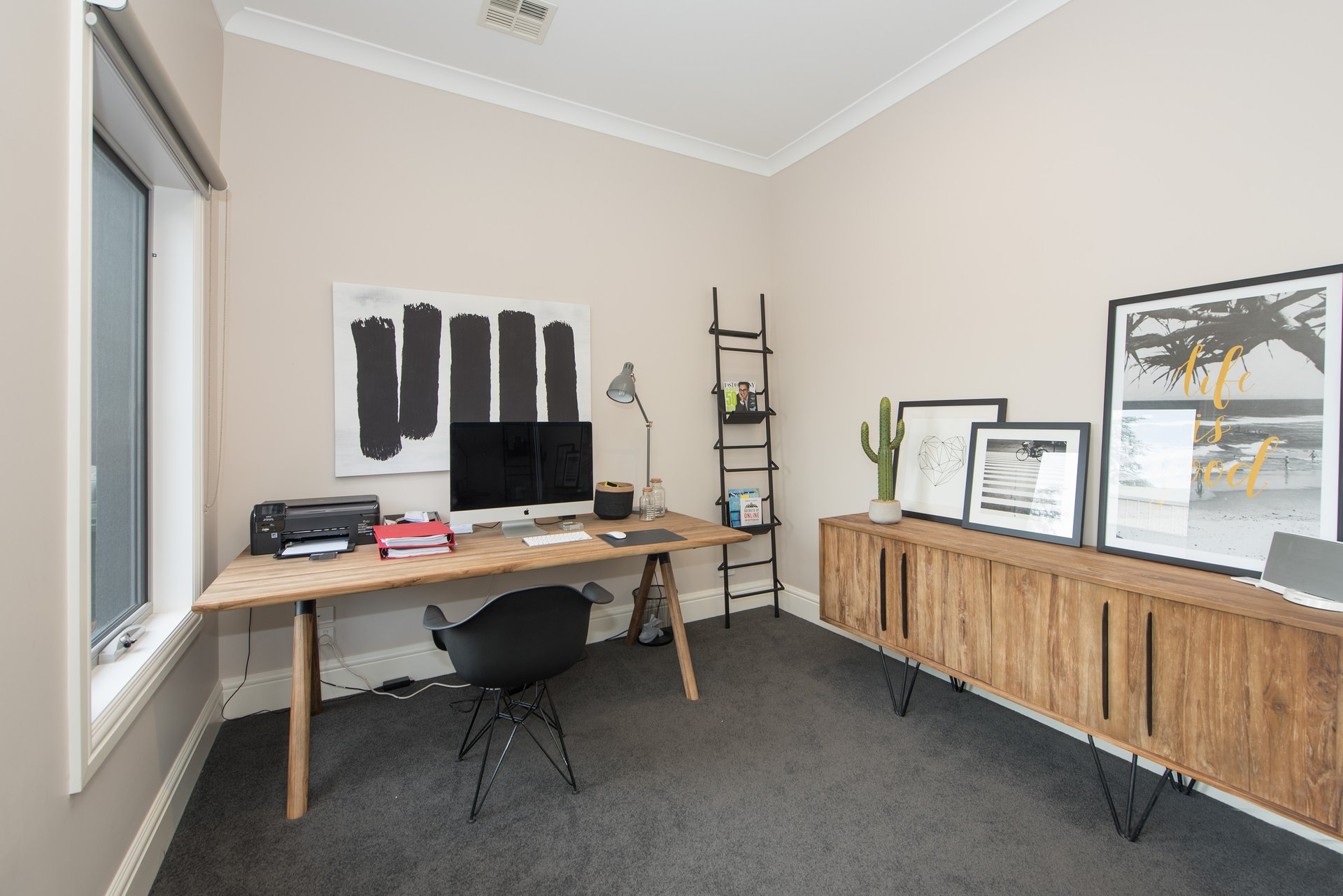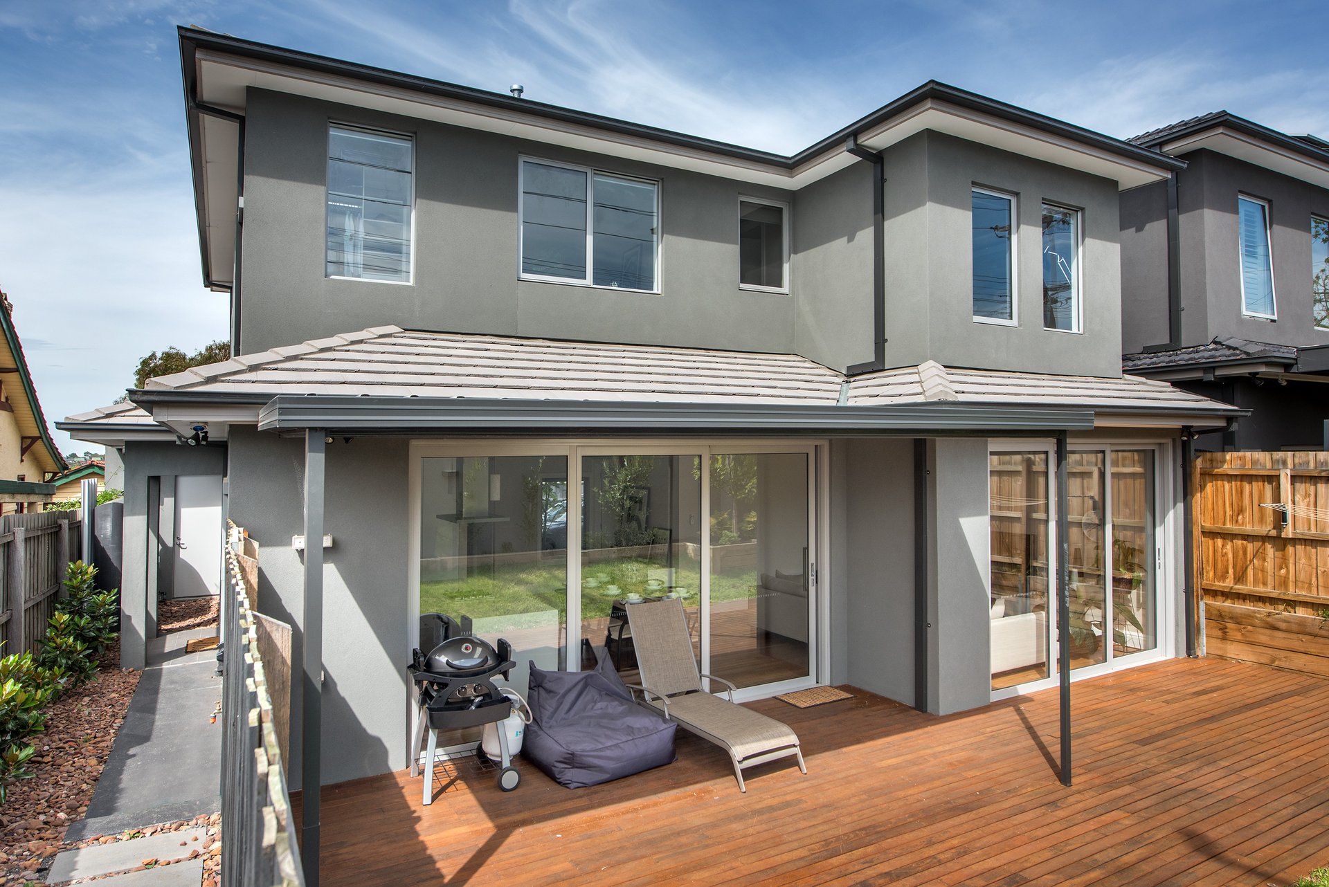 The ground floor features generous open-plan living areas, complemented by a stylish kitchen with gas/electric cooking, dishwasher, and ample cupboard space. The living area flows seamlessly to a private timber deck and northerly facing garden.