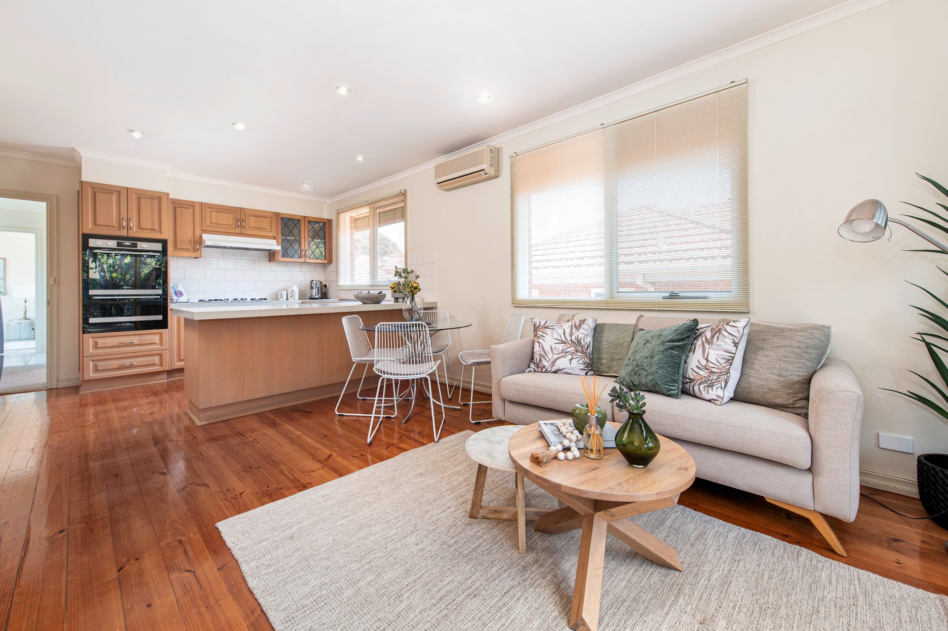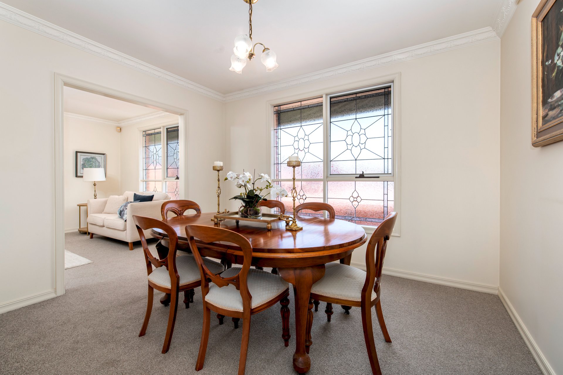 This home is brilliantly presented and ready for all buyers, from small families to young professionals and those ready to downsize. A light-filled front lounge room is graced with an elegant bay window on one side and picturesque leadlight window on the other side, with the latter providing a touch of beauty as well as practical privacy. A separate dining room also offers sensational natural light, and sits not far from the stone kitchen which offers timber cabinetry and quality appliances, and the sizeable family/meals zone.