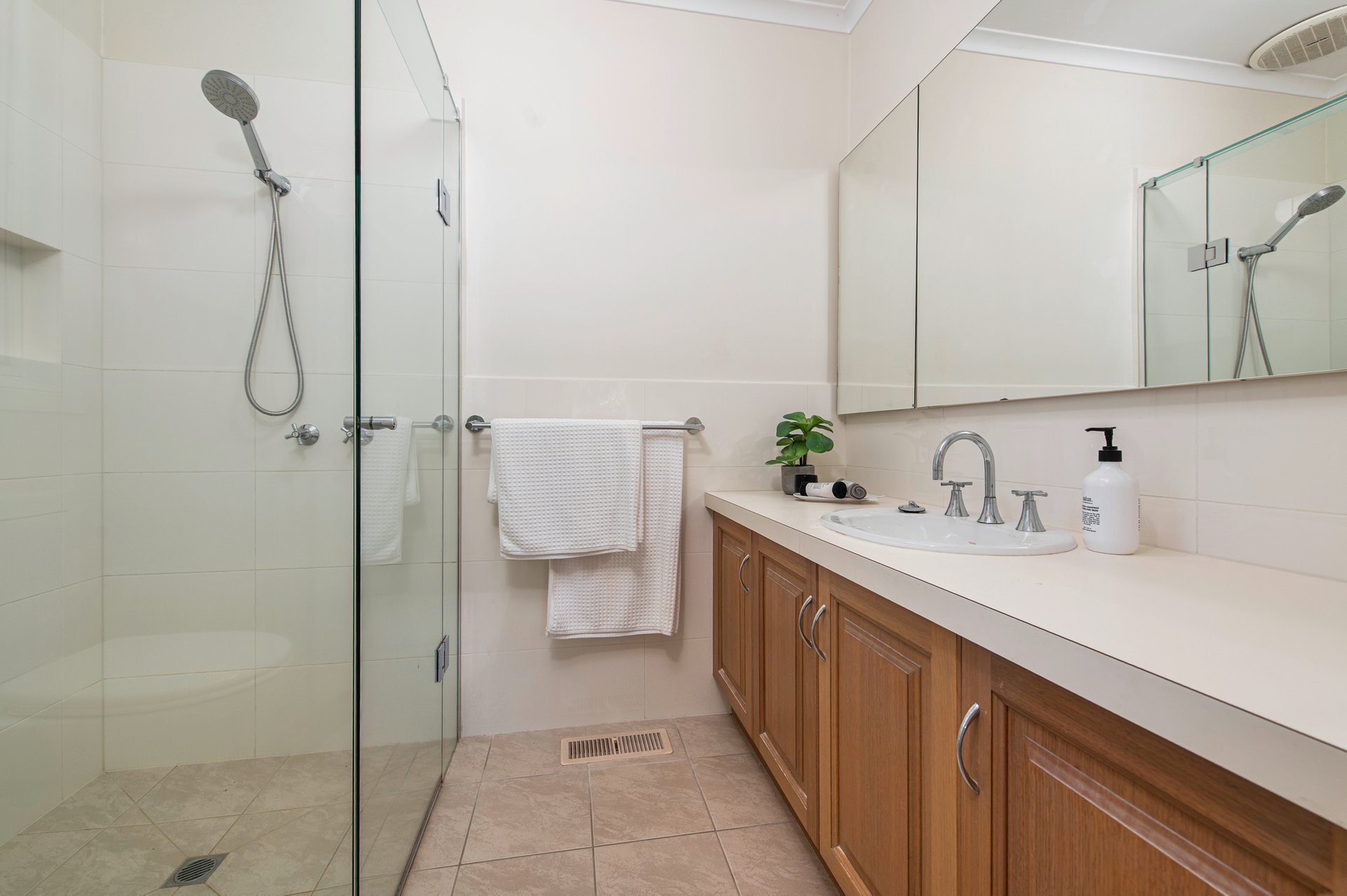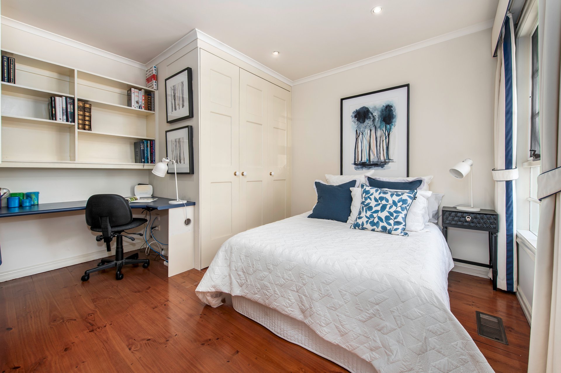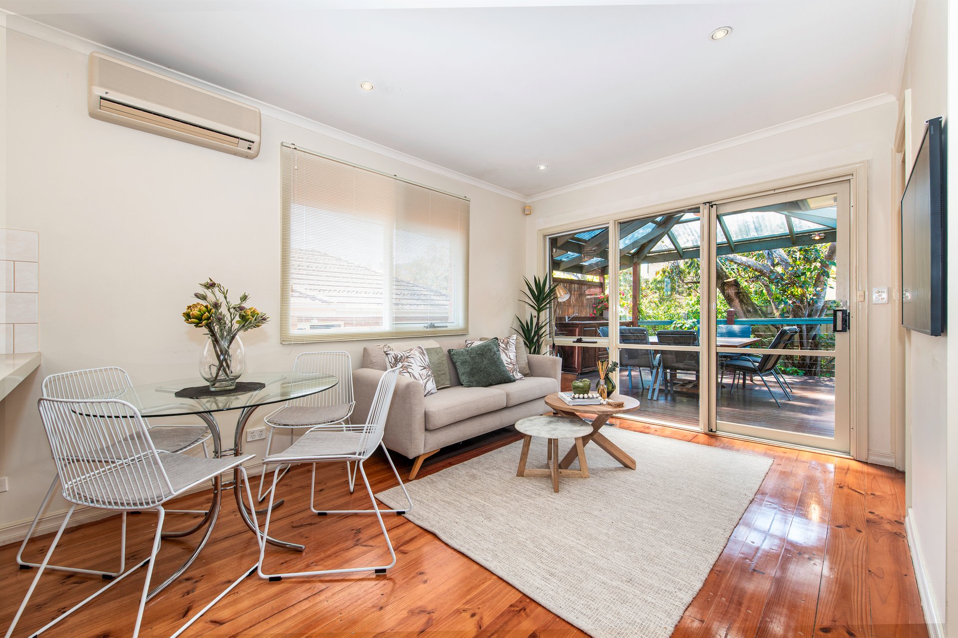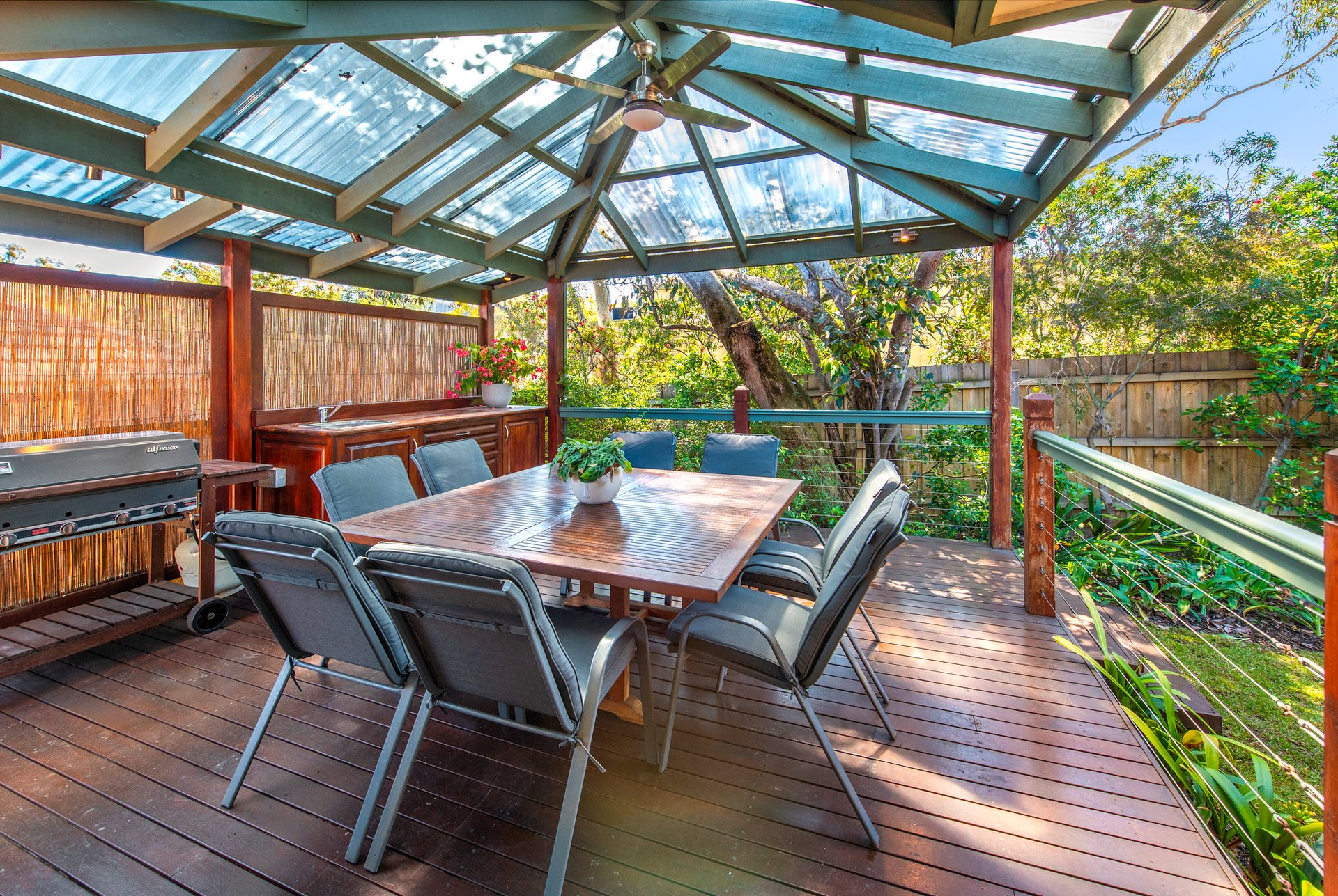 A front bedroom has the added advantage of a built-in desk making it flexible to become a home office. The master bedroom also benefits from a bay window, twin built-in robes, and an ensuite with new under-floor heating. The memorable undercover deck has a built-in kitchen making meals preparation a cinch, while the garden flourishes and attracts native birdlife. The garden further has direct gate access to a handy walking path.
