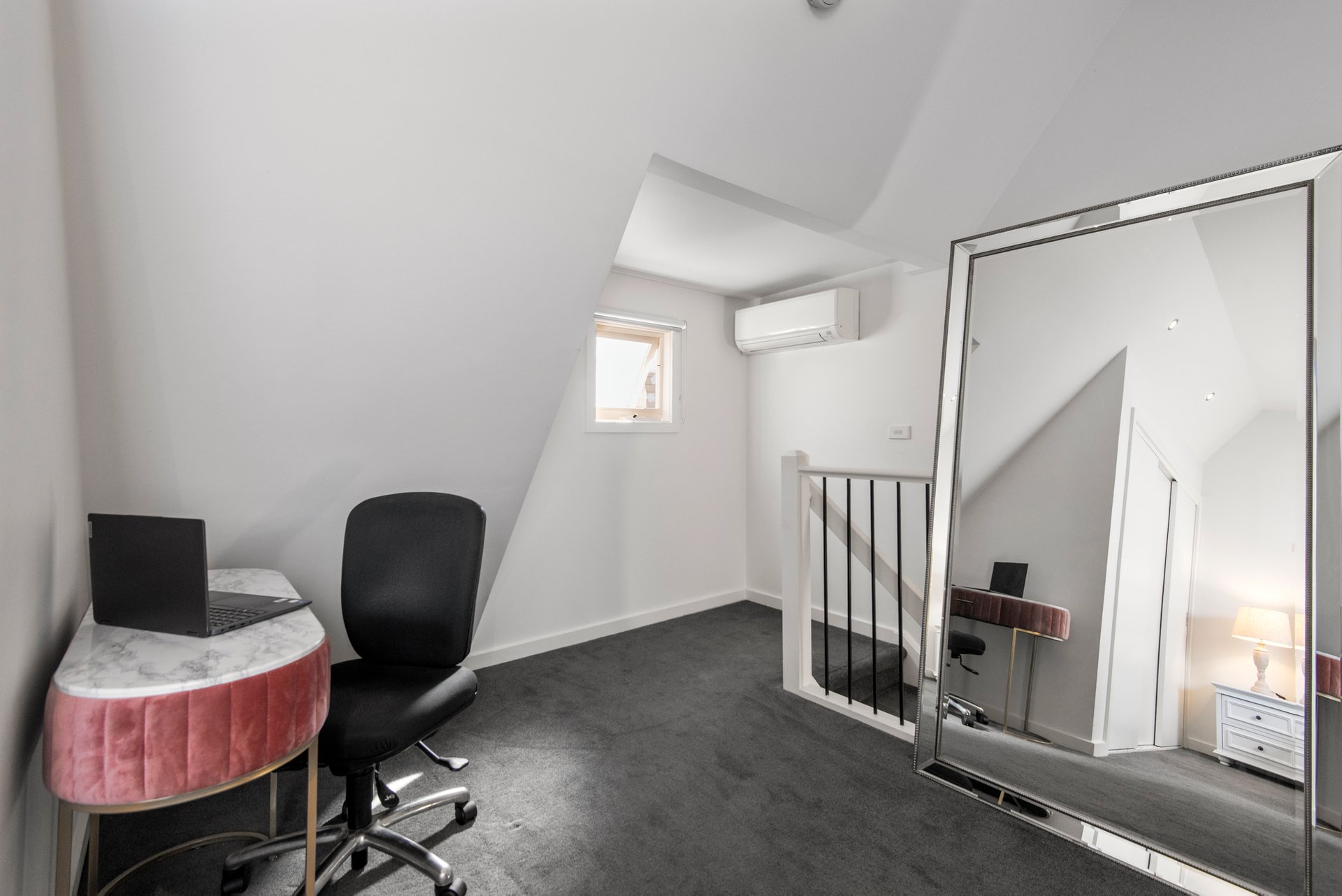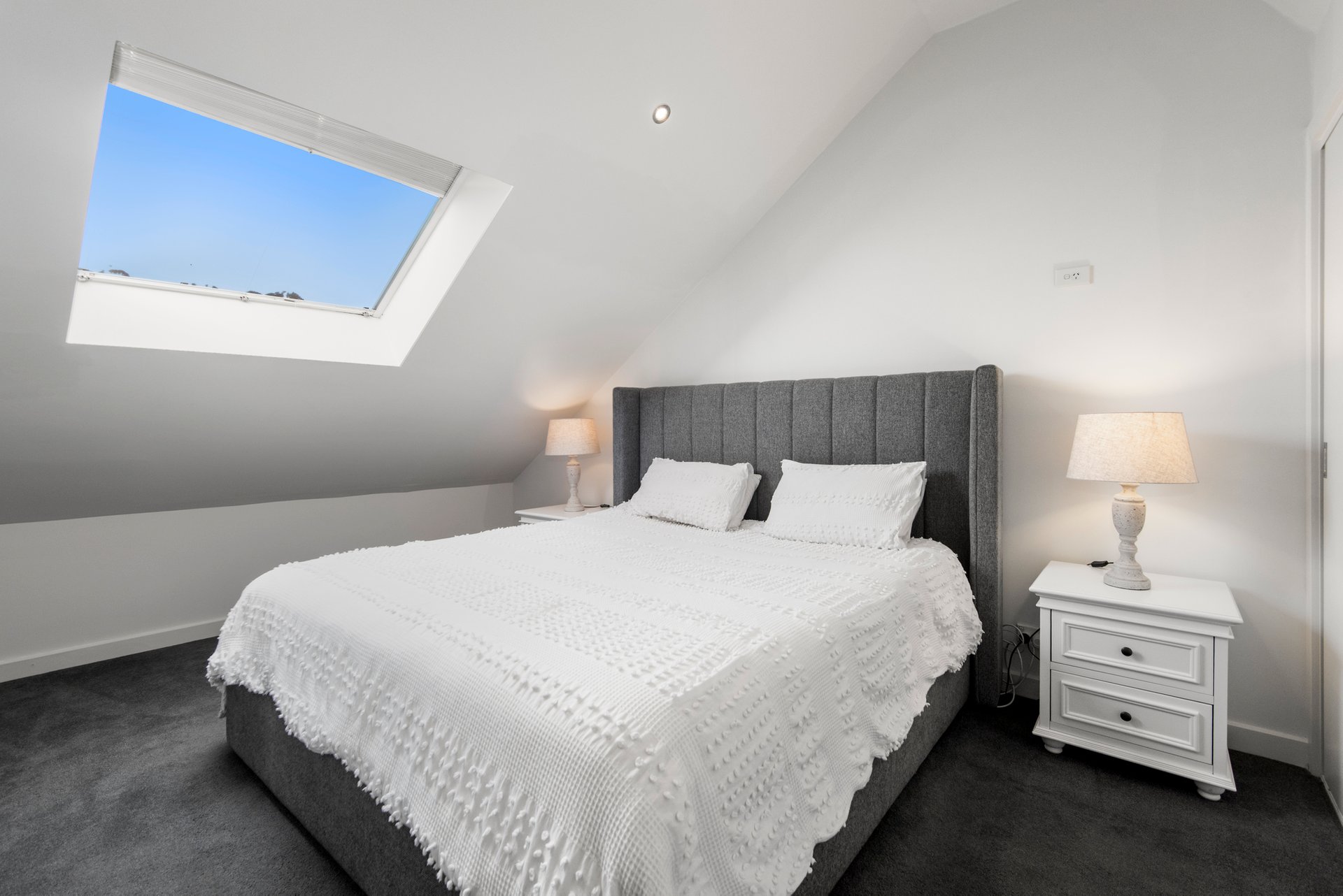 The generously sized master bedroom is located on the top floor, carpeted for comfort and features extensive built-in wardrobes, a skylight and additional space for a desk or a relaxing retreat. The large ensuite completes this restful space.