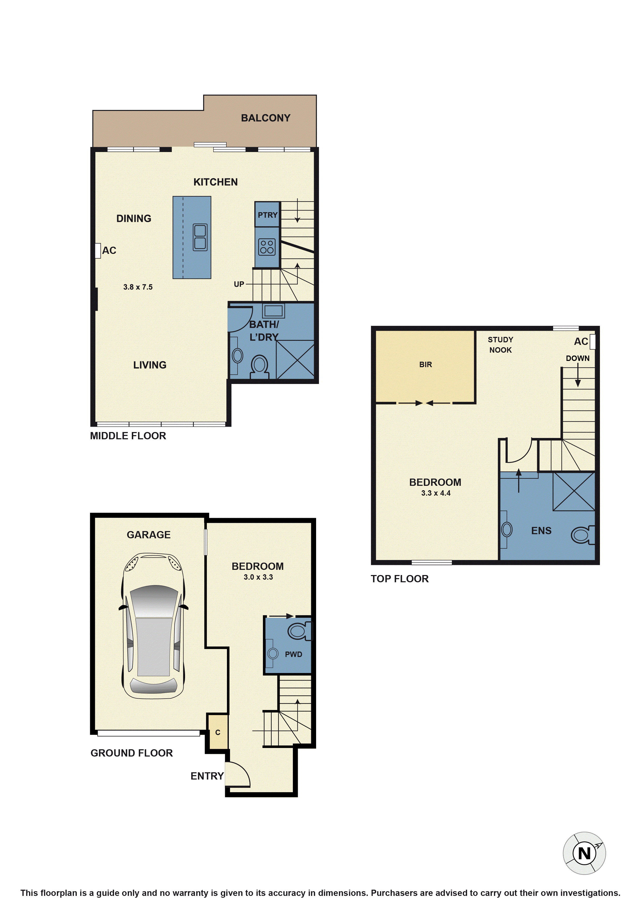 Additional features include a central bathroom / laundry on the mid-level, reverse cycle air conditioning, security entry, and a secure lock-up garage with additional storage space.