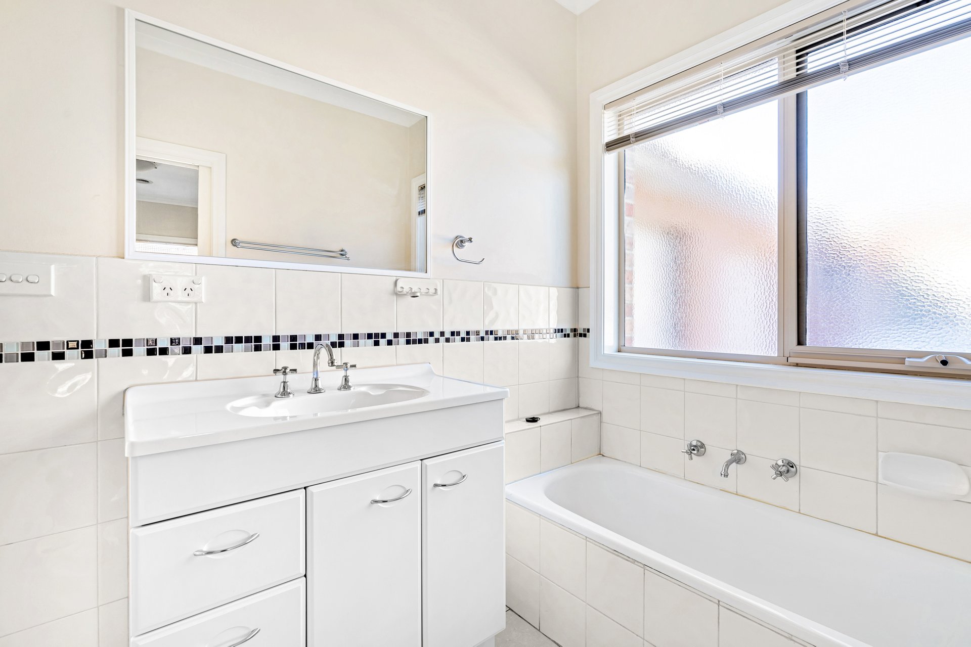 Three bedrooms with built in robes, master with direct access to the central bathroom with bath. Separate laundry and toilet.