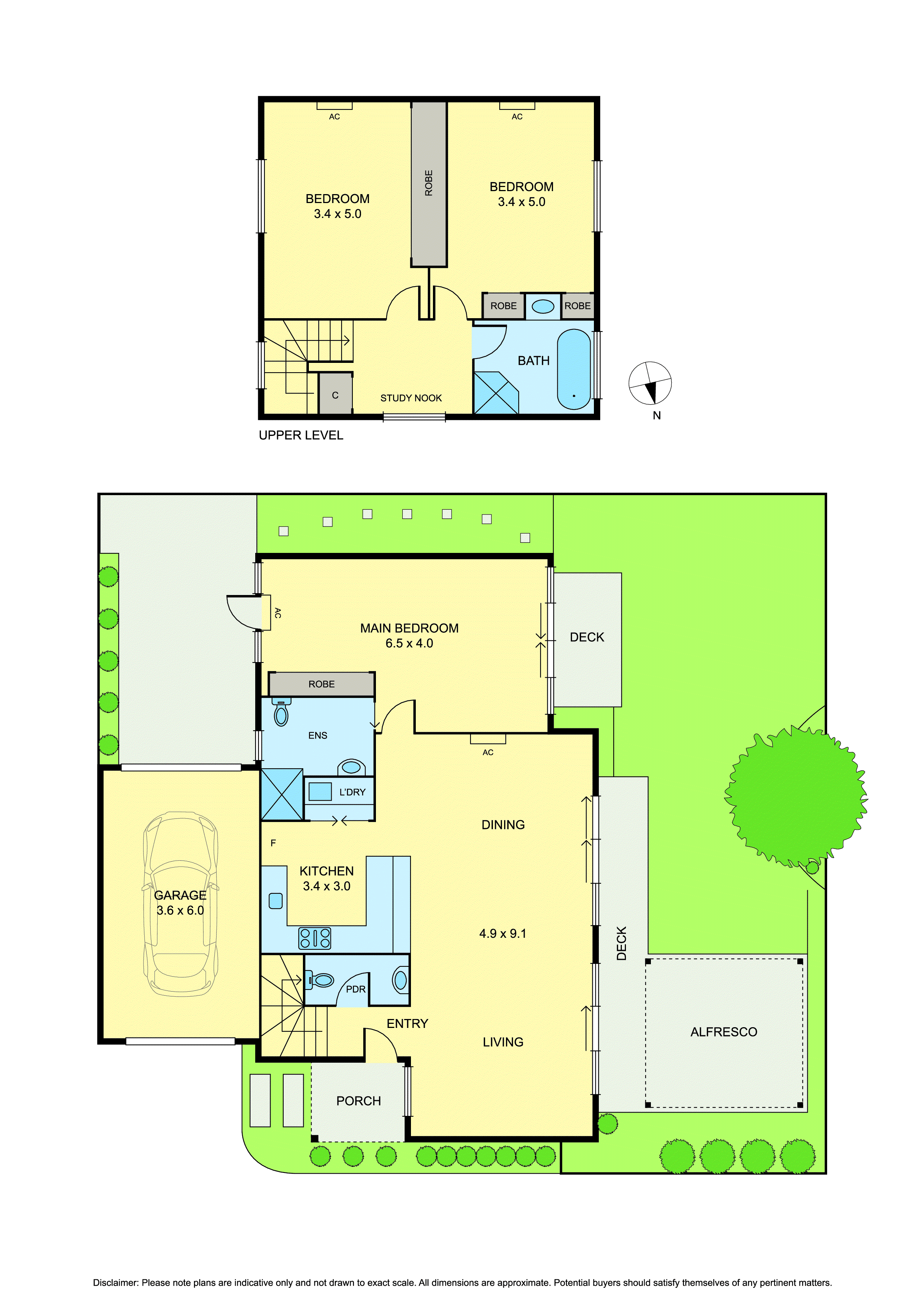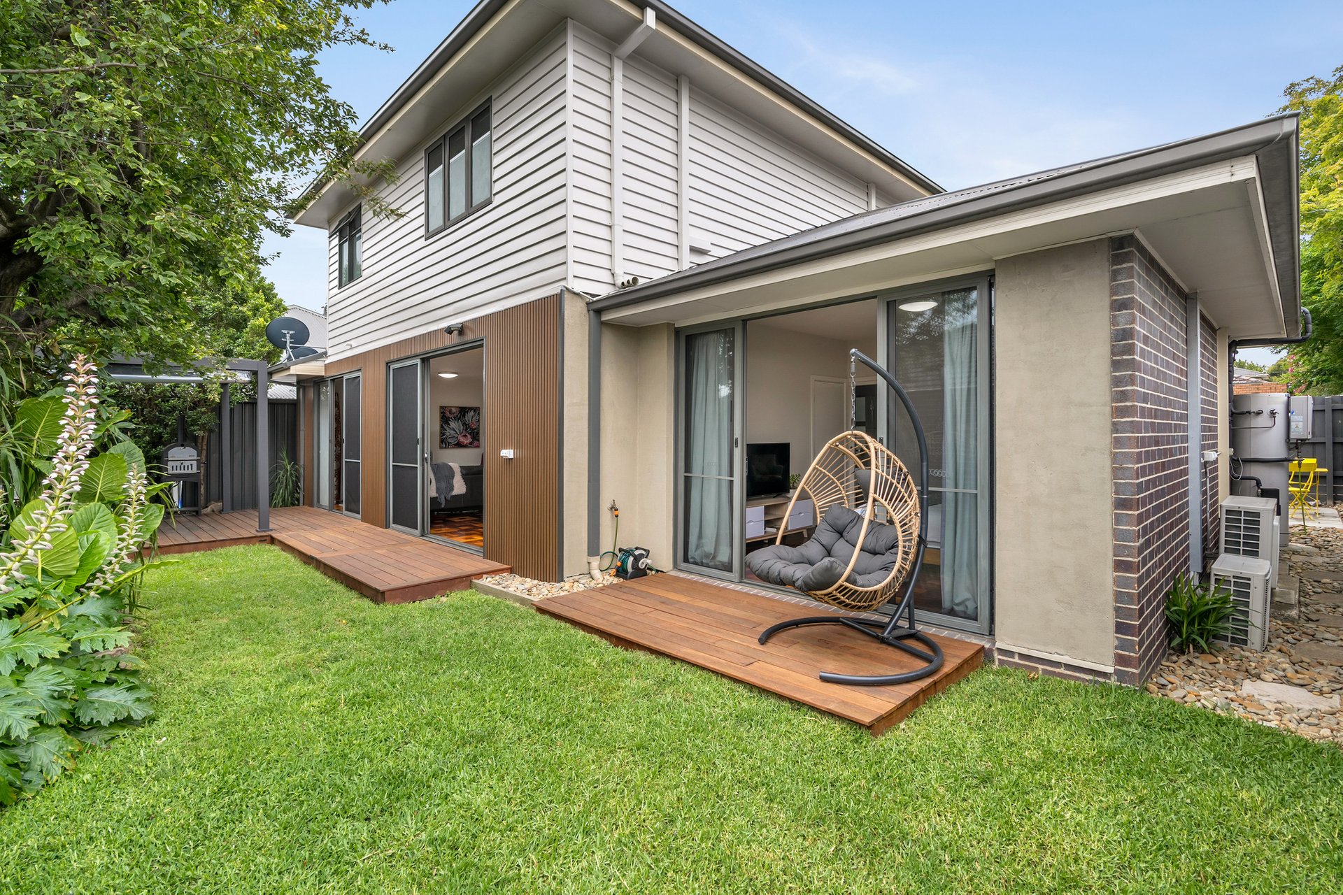 The master bedroom is conveniently located on the ground floor, providing a private retreat complete with an ensuite & built-in robe. Upstairs, two large bedrooms are serviced by a central bathroom and complemented by a dedicated study area, perfect for those working or studying from home.
