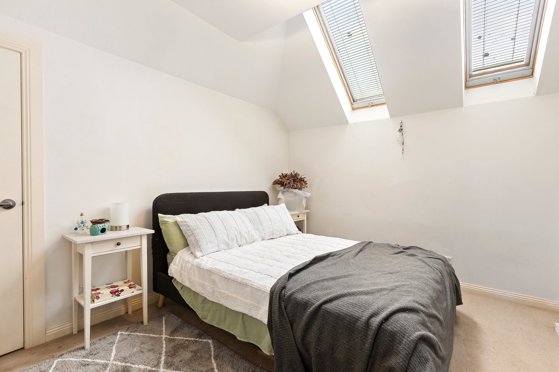 Accommodation is intelligently zoned upstairs, where skylights draw in abundant natural light across the robed bedrooms. The main bathroom is finished with stylish tiling and includes a separate bath and shower, complemented by an additional powder room to enhance everyday functionality. Every wet area reflects the same commitment to quality and cohesive design. Additional appointments include a secure double garage with internal access and split-system air conditioning, ensuring year-round comfort and convenience.