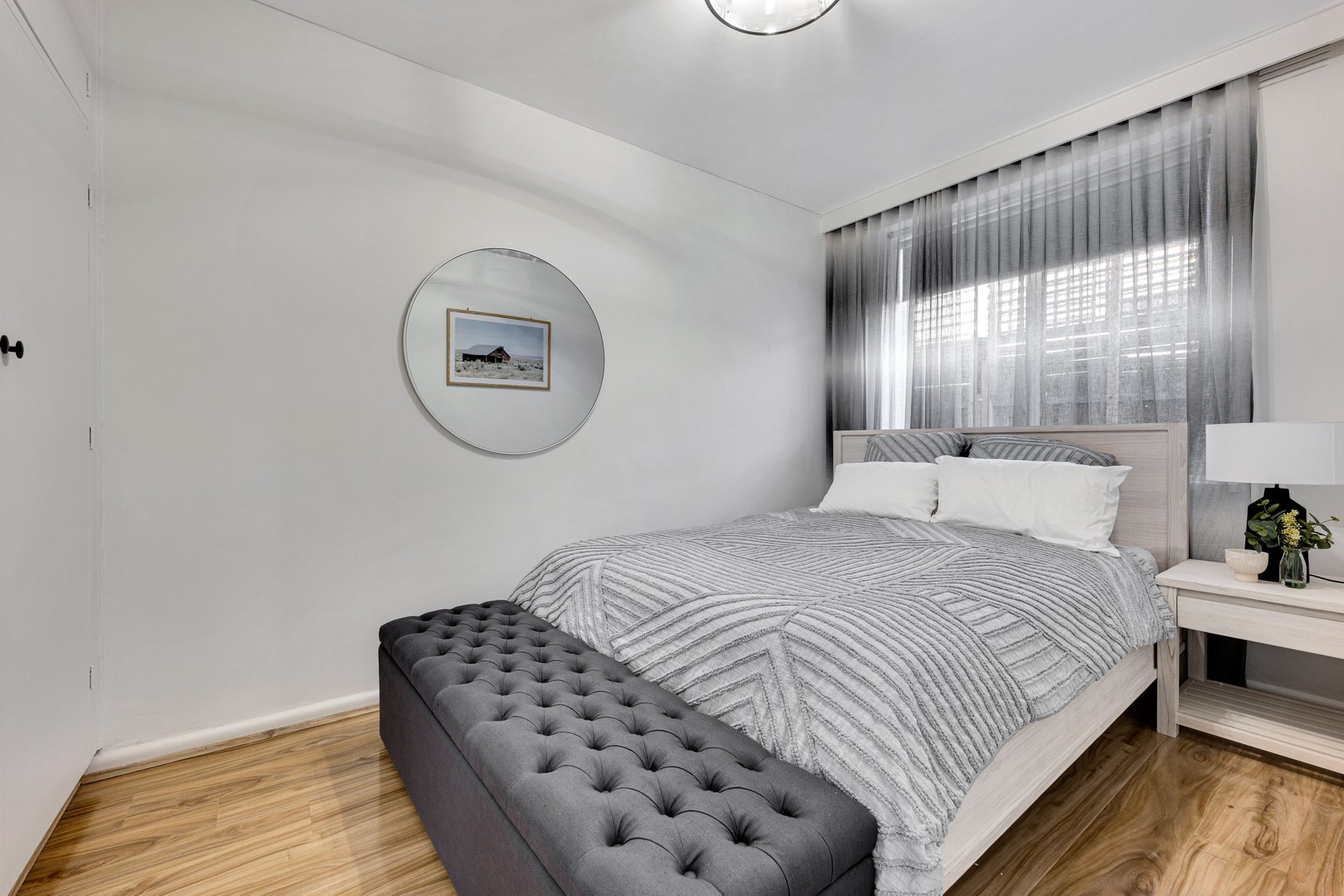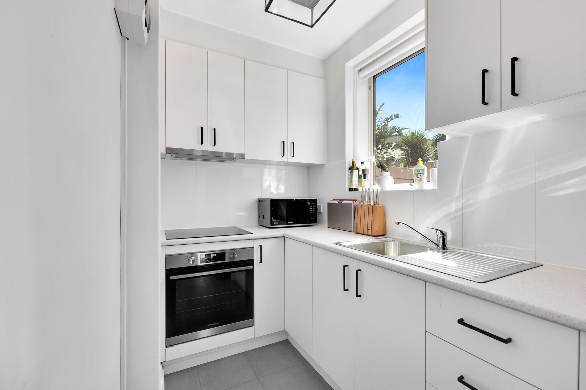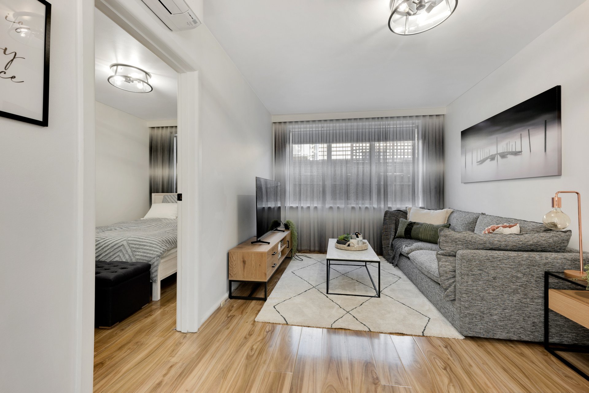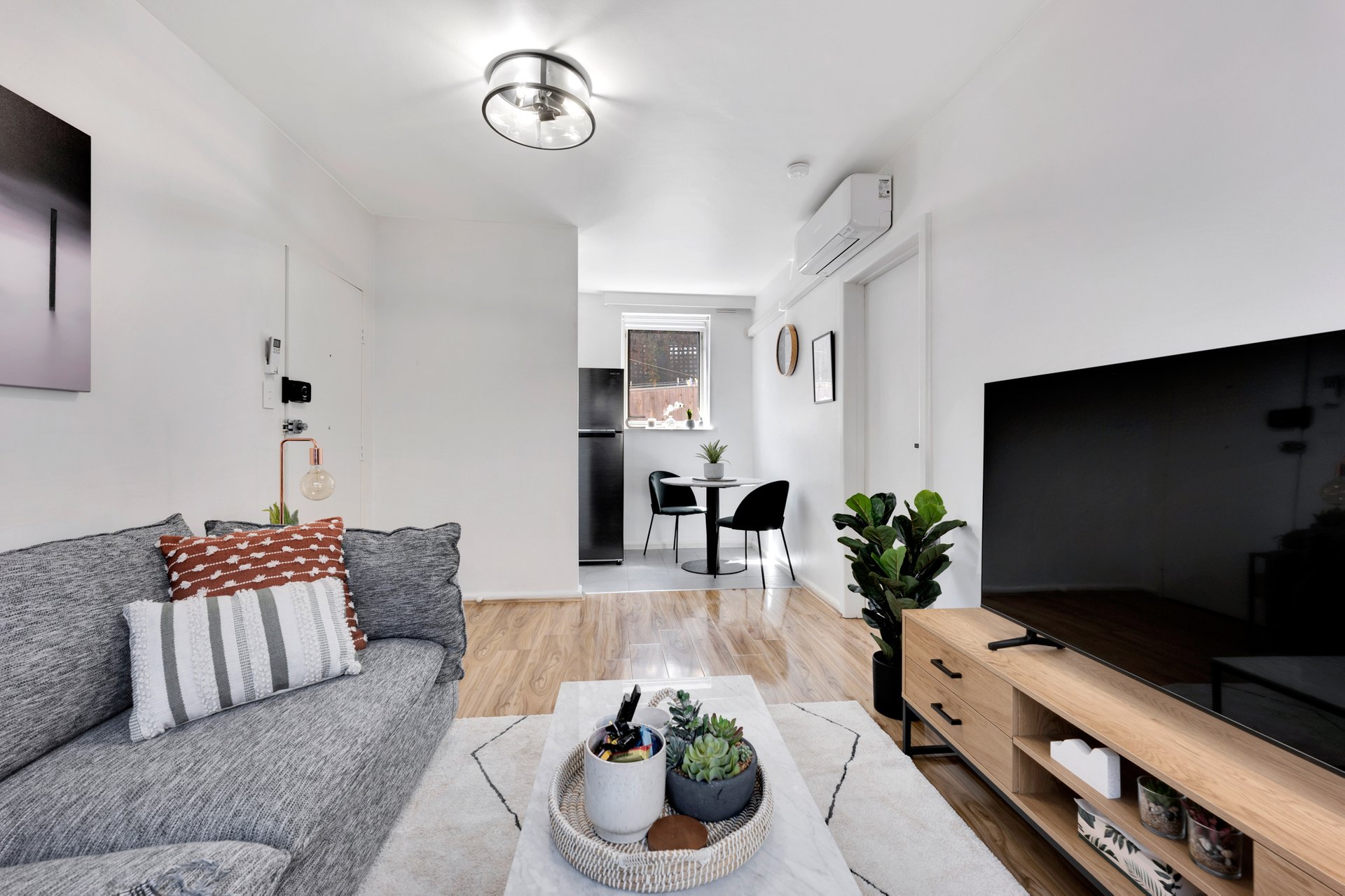 The separate living room provides a comfortable and private space to relax, while the modern kitchen has been thoughtfully updated with sleek cabinetry and an electric cooktop. The bedroom is well proportioned and fitted with built in wardrobes, and reverse cycle heating and cooling ensures year-round comfort.