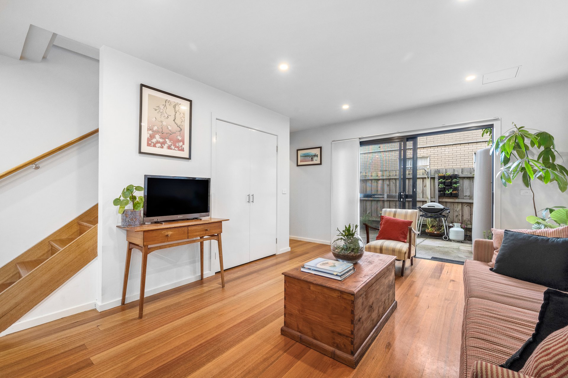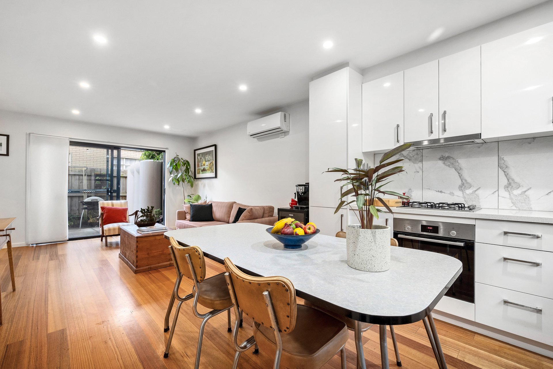 Defined by its desirable dimensions, complemented by the comfort of three bedroom, three bathroom accommodation and enhanced by the exclusivity of a boutique development of only three, this impressive townhouse is attractive from every imaginable angle. The natural beauty of solid hardwood floorboards and the elegant efficiency of a contemporary open-plan kitchen add to the profile of living and dining areas that flow to a courtyard where low-maintenance ease makes entertaining a breeze. A bedroom, bathroom and separate study or home office complete an ideal downstairs picture before two bedrooms and two further ensuite bathrooms define the upstairs allure. Quality details, faultless presentation and a double carport each add their own appeal to a rewarding address moments from West Footscray's famous cafes, several parks, Central West Shopping Centre and the buzz of the Barkly Street precinct.