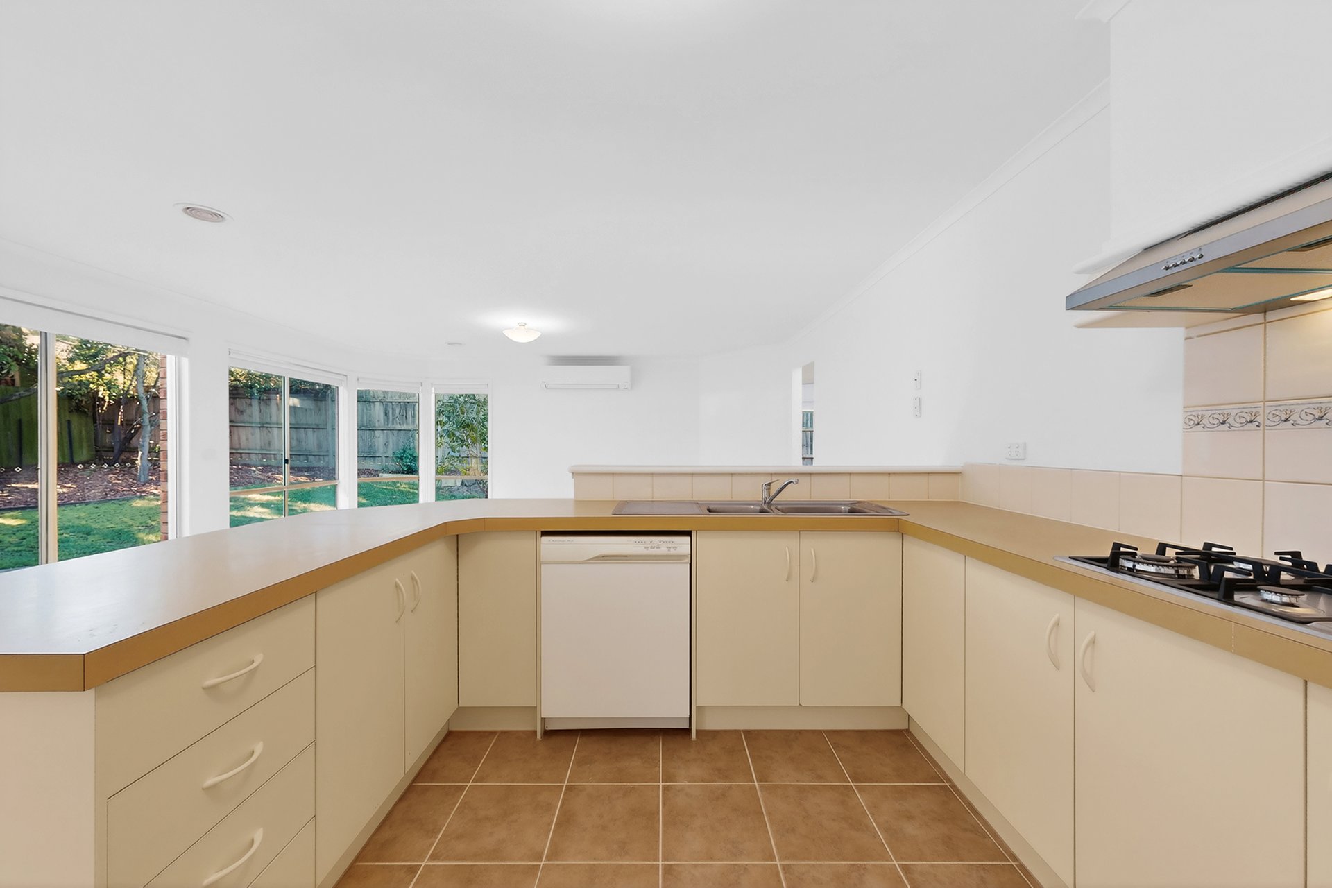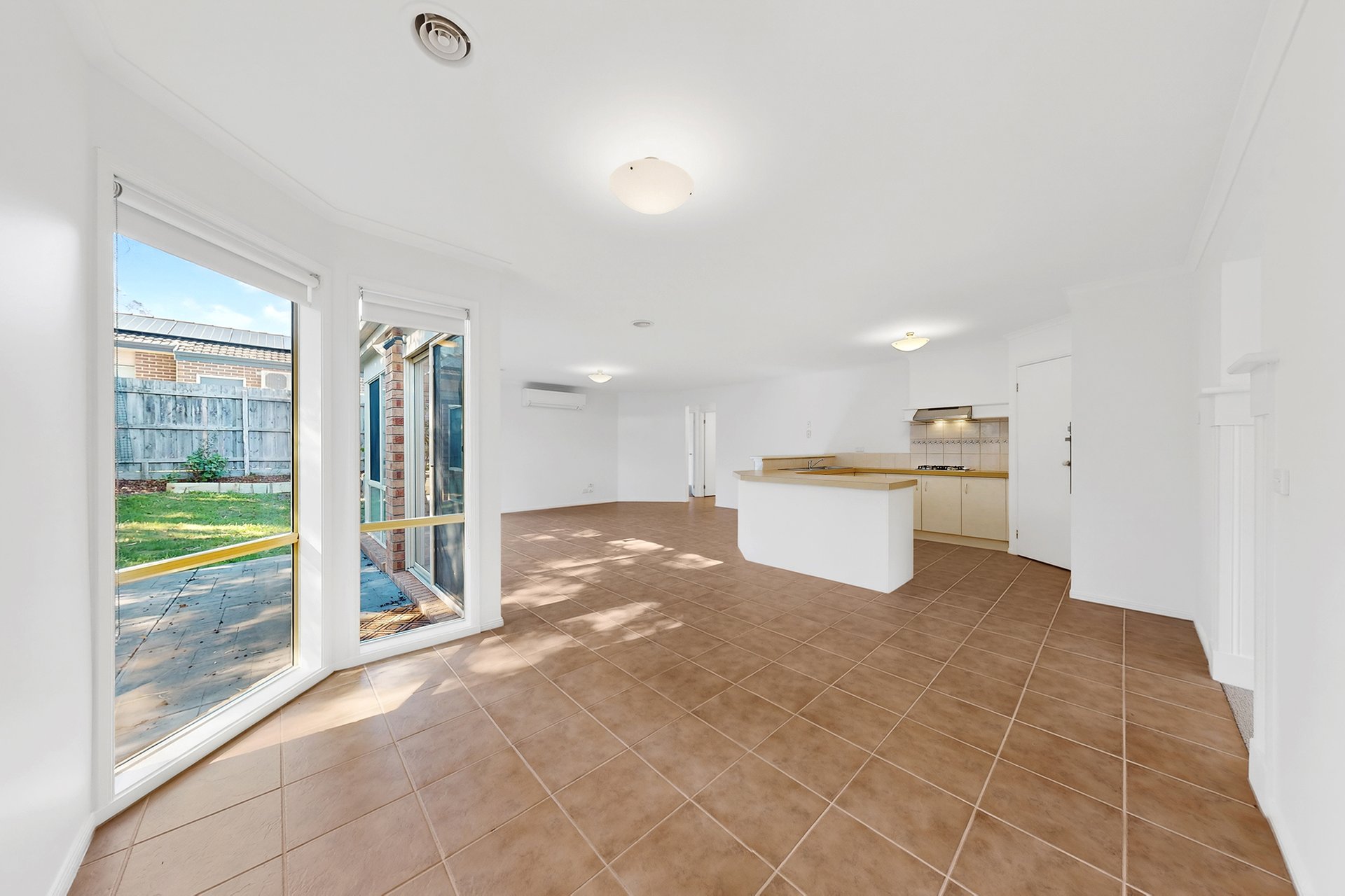 The functional kitchen offers ample cupboard space, complemented by a central bathroom with a separate toilet for added convenience. Enjoy year-round comfort with ducted heating and split system heating and cooling.
