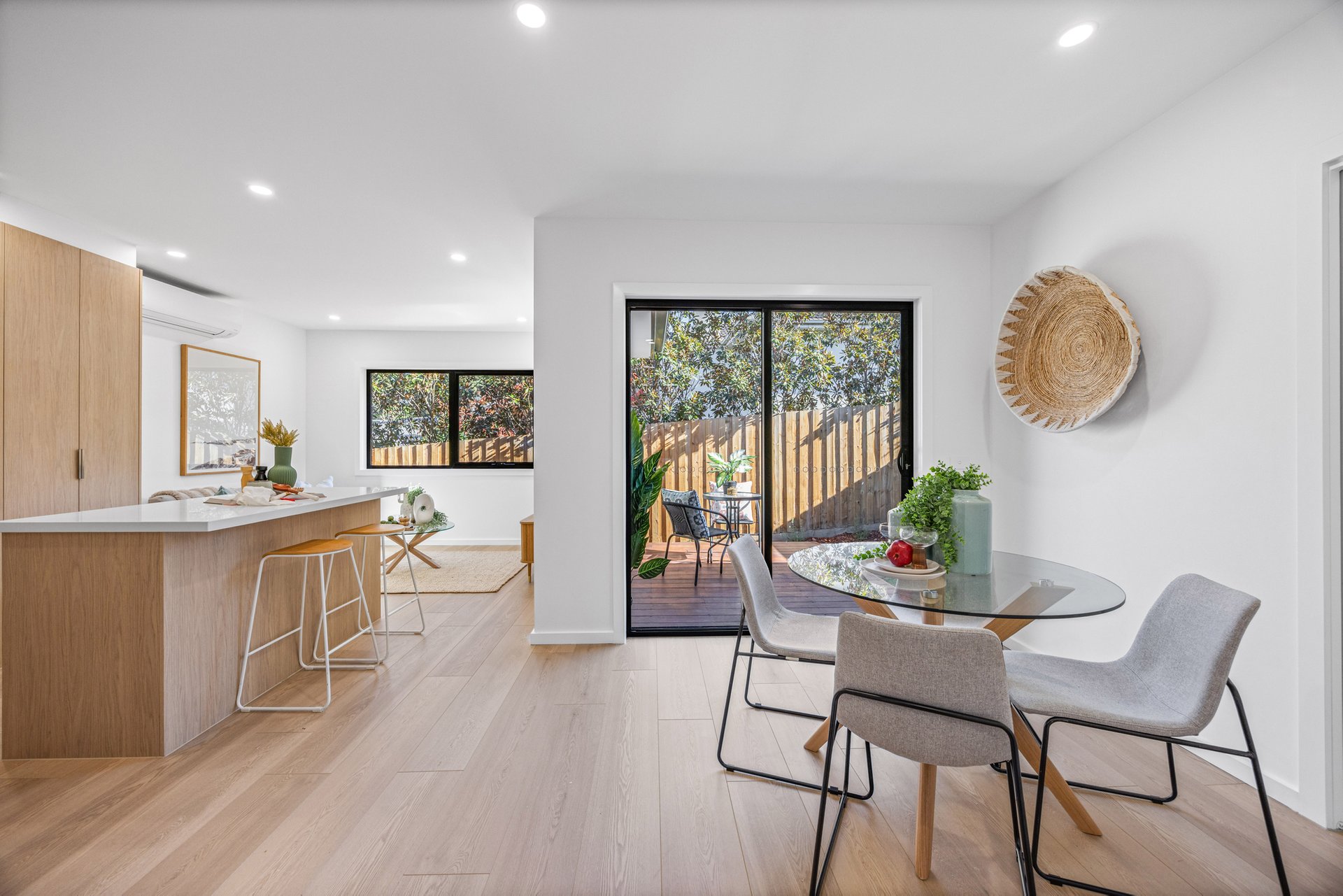 - Open plan living and dining areas