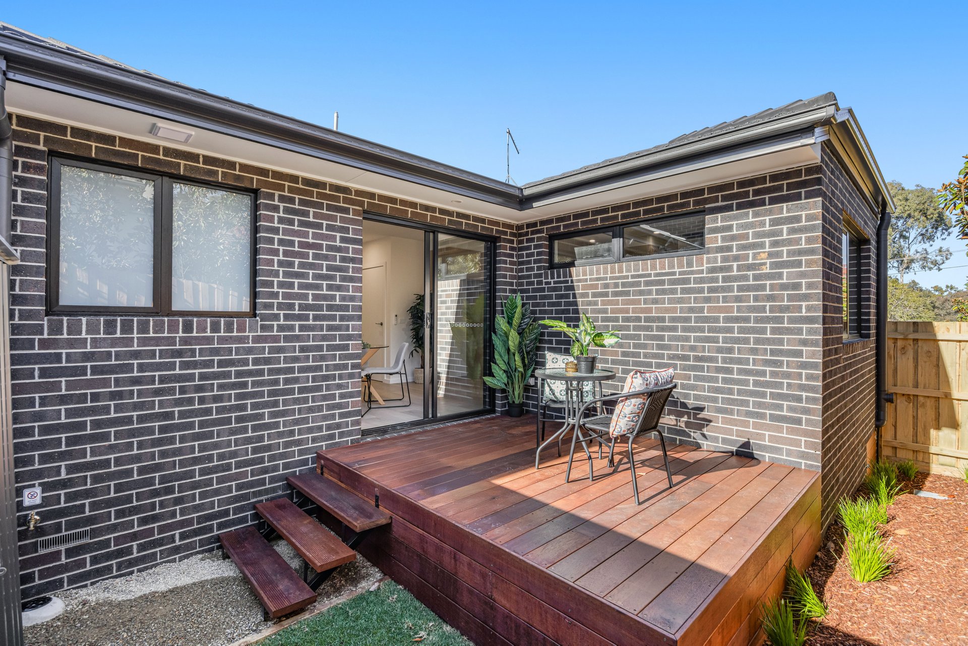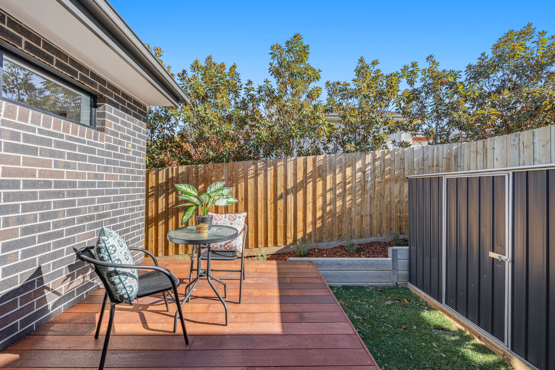 - Outdoor entertaining areas with decking (Units 1–3) or concrete paving (Unit 4)