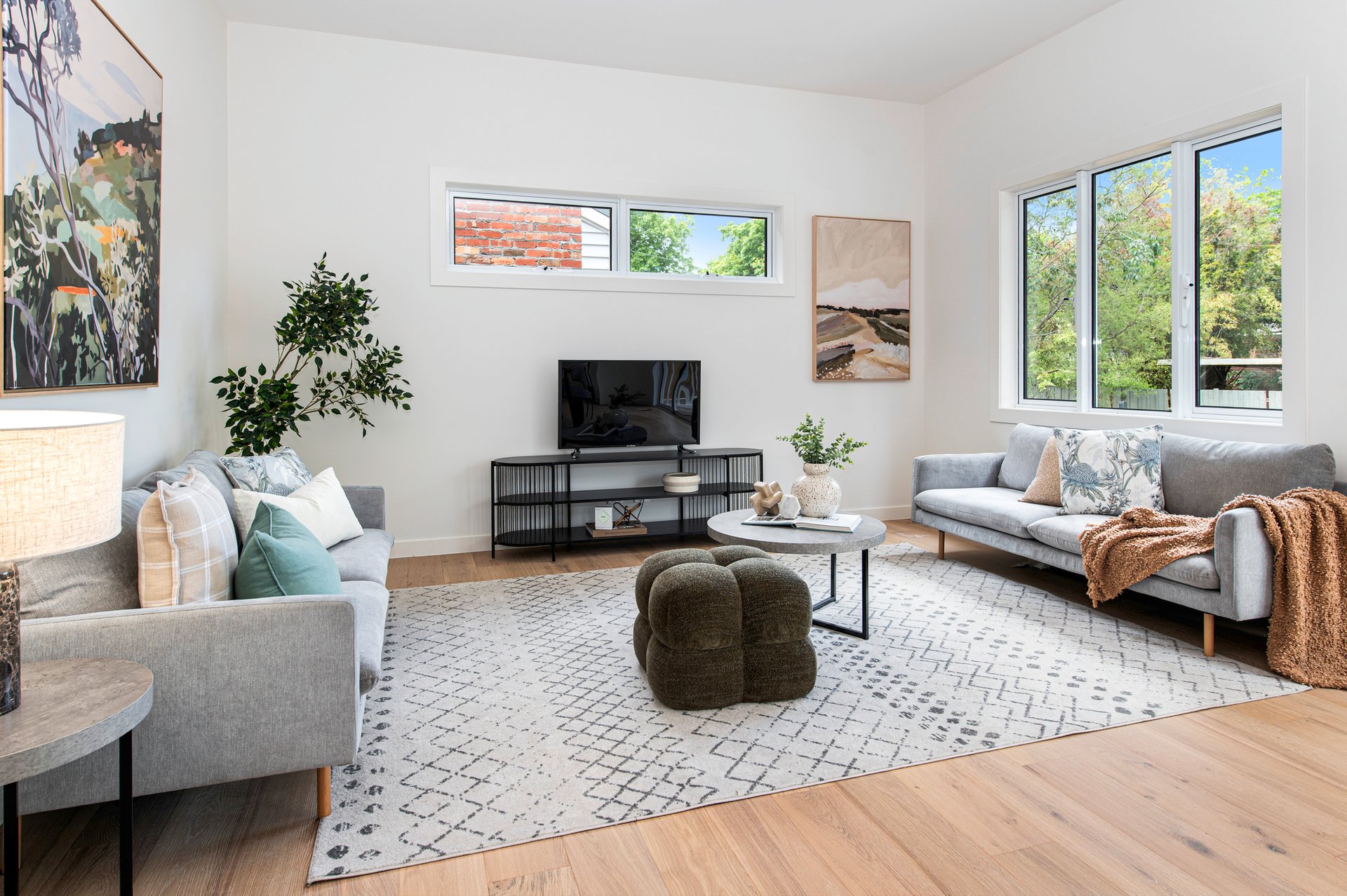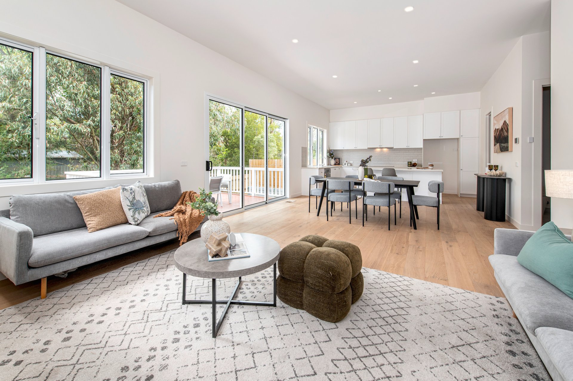 High-end finishes such as flawless timber flooring, plush carpets, double-glazed windows, and premium tapware ensure comfort and quality at every turn. A sun-splashed formal lounge at the front welcomes guests, while the expansive family and dining zone—boasting lofty 3m ceilings—creates a warm, connected space perfect for everyday living.