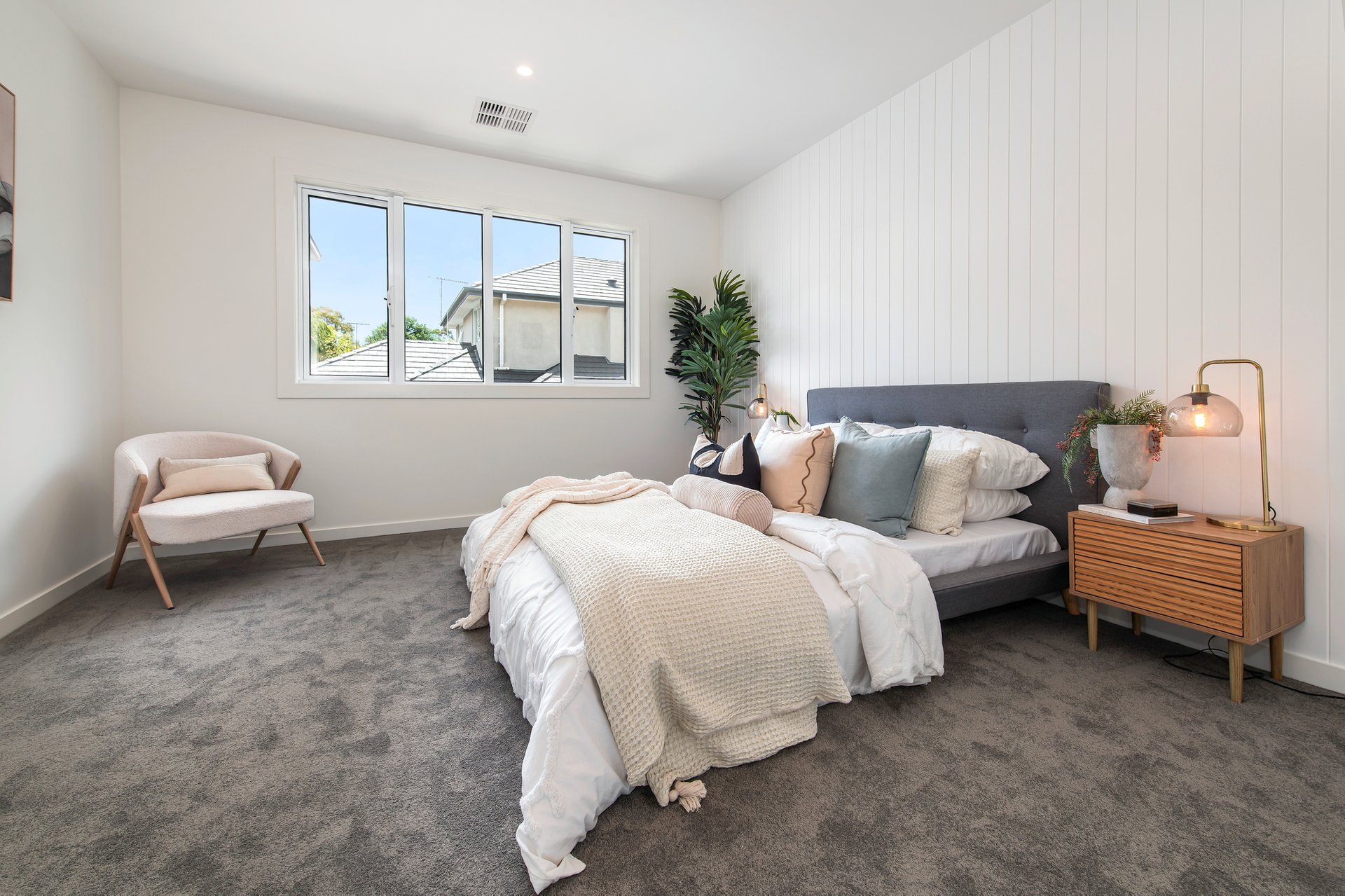 The gourmet kitchen will mesmerise with its opulent stone surfaces, abundant natural light, induction cooking, and a generous walk-in pantry. Families will love the flexibility of two main bedrooms—one conveniently located on the ground floor with a walk-in robe and ensuite, and another upstairs with the same premium features. The top floor also offers a peaceful living retreat ideal for teens, two further bedrooms with BIRs, a beautiful central bathroom, and a study nook for homework or working from home.