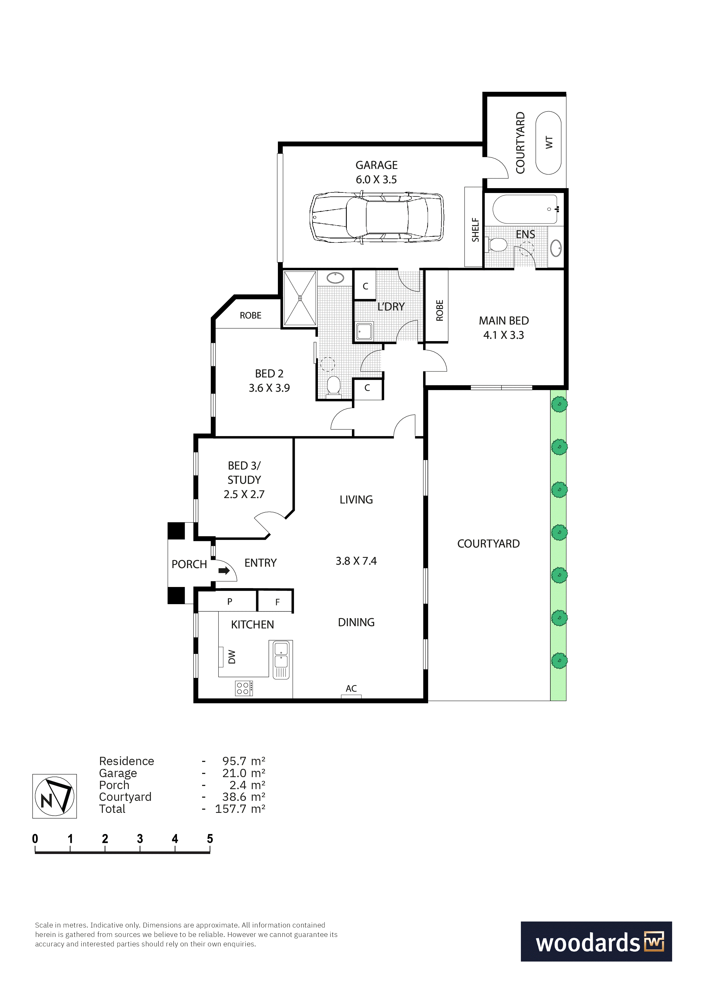 Ducted heating, split-system air conditioning in the living area, a security alarm, walk-in laundry and a garage with internal access and shelving add to the comfort.