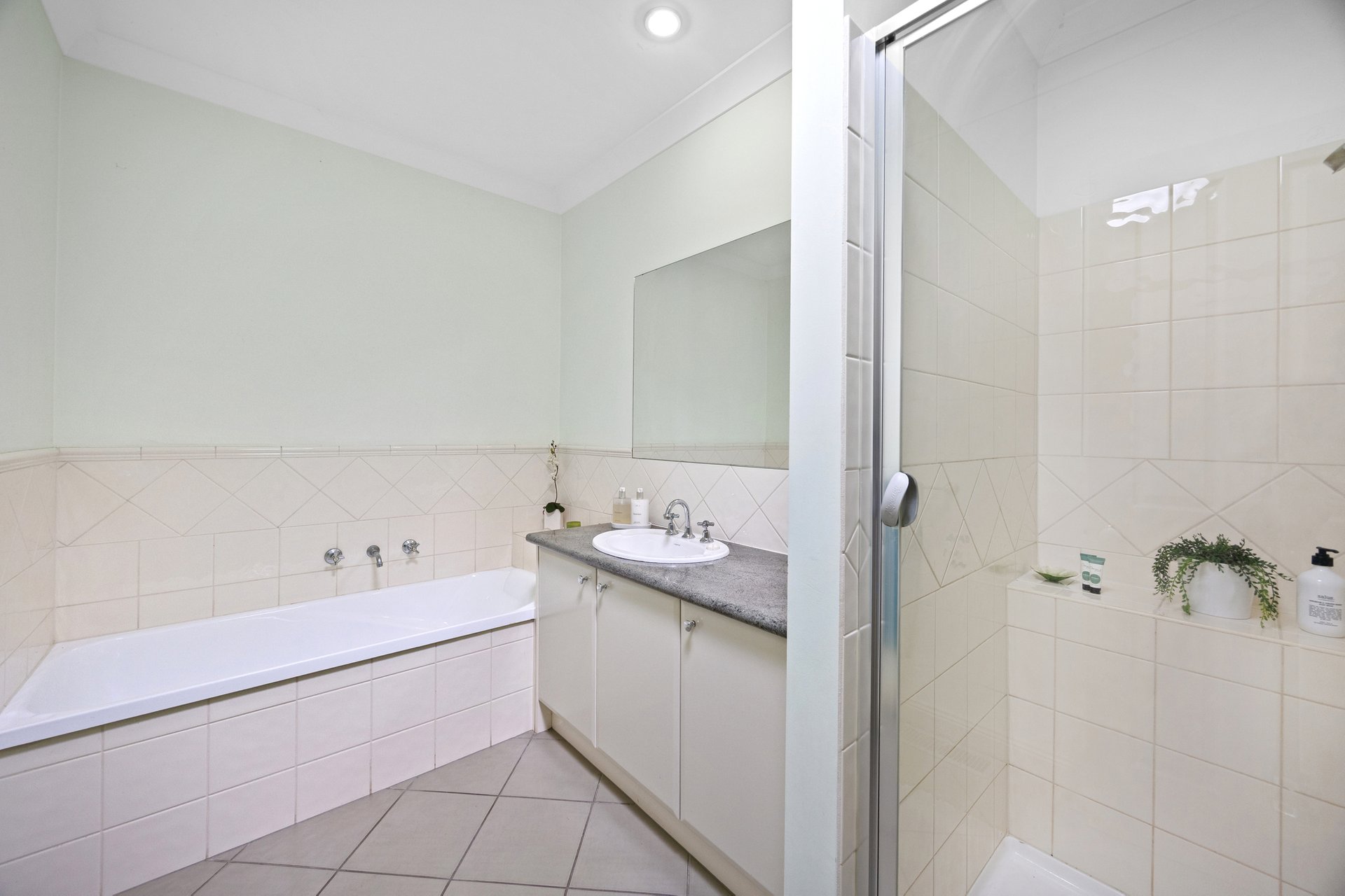 The master suite enjoys a walk through robe to the ensuite boasting a shower, vanity and toilet whilst bedroom two and three are endowed with double built-in robes and positioned close to the main bathroom with bathtub, shower and vanity with a separate toilet.