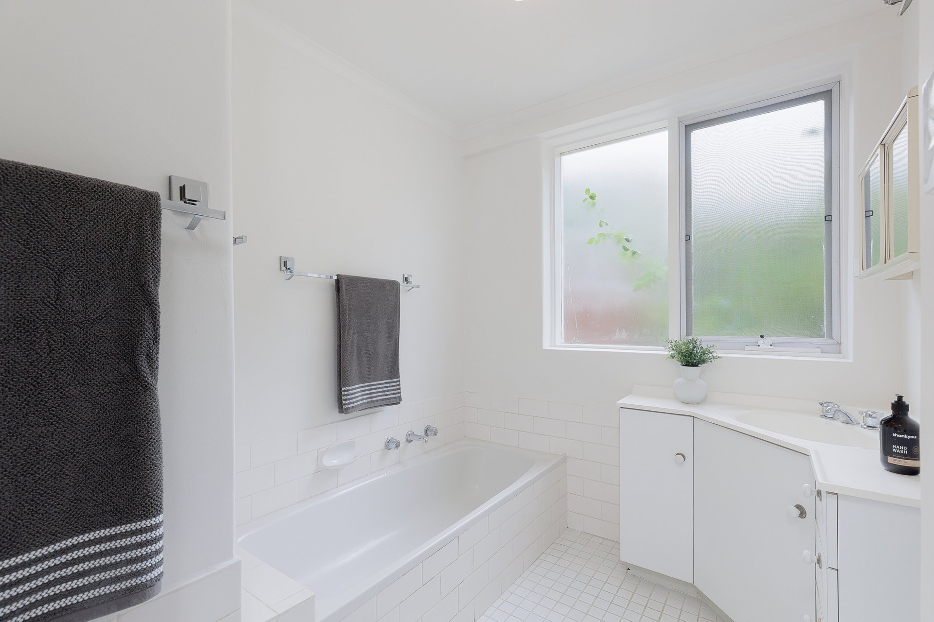 The well-appointed kitchen features gas cooking, tiled splashbacks, an integrated dishwasher, ample pantry storage, and the convenience of a separate entry. The central bathroom includes a full-size bath, separate walk-in shower and vanity, complemented by a separate toilet.