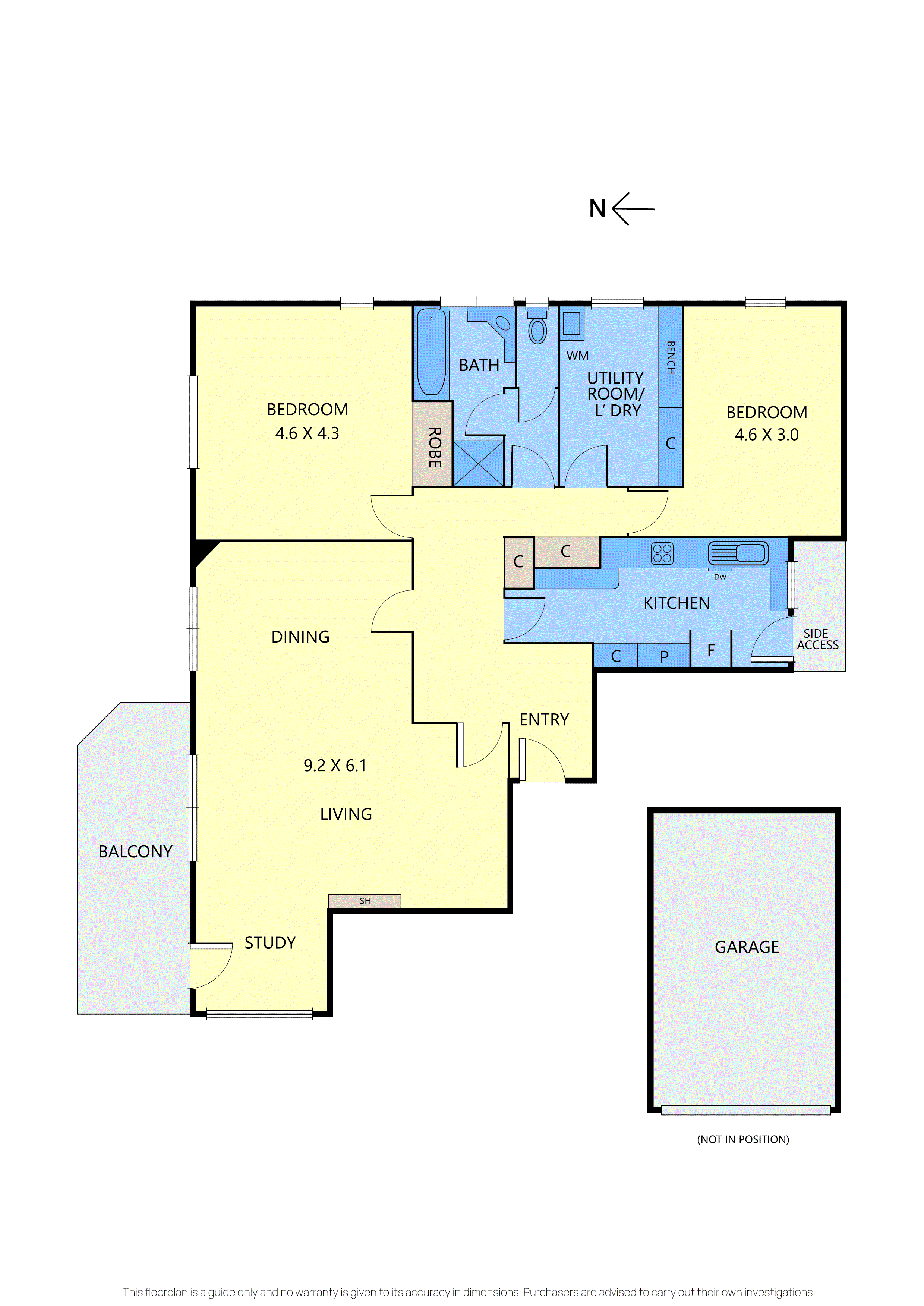 Accommodation is generous and adaptable, with two large bedrooms (main with built-in robes) and a substantial laundry/utility room that was formerly a third bedroom, offering exciting potential for reinstatement or creative use as a home office, studio, or guest space.