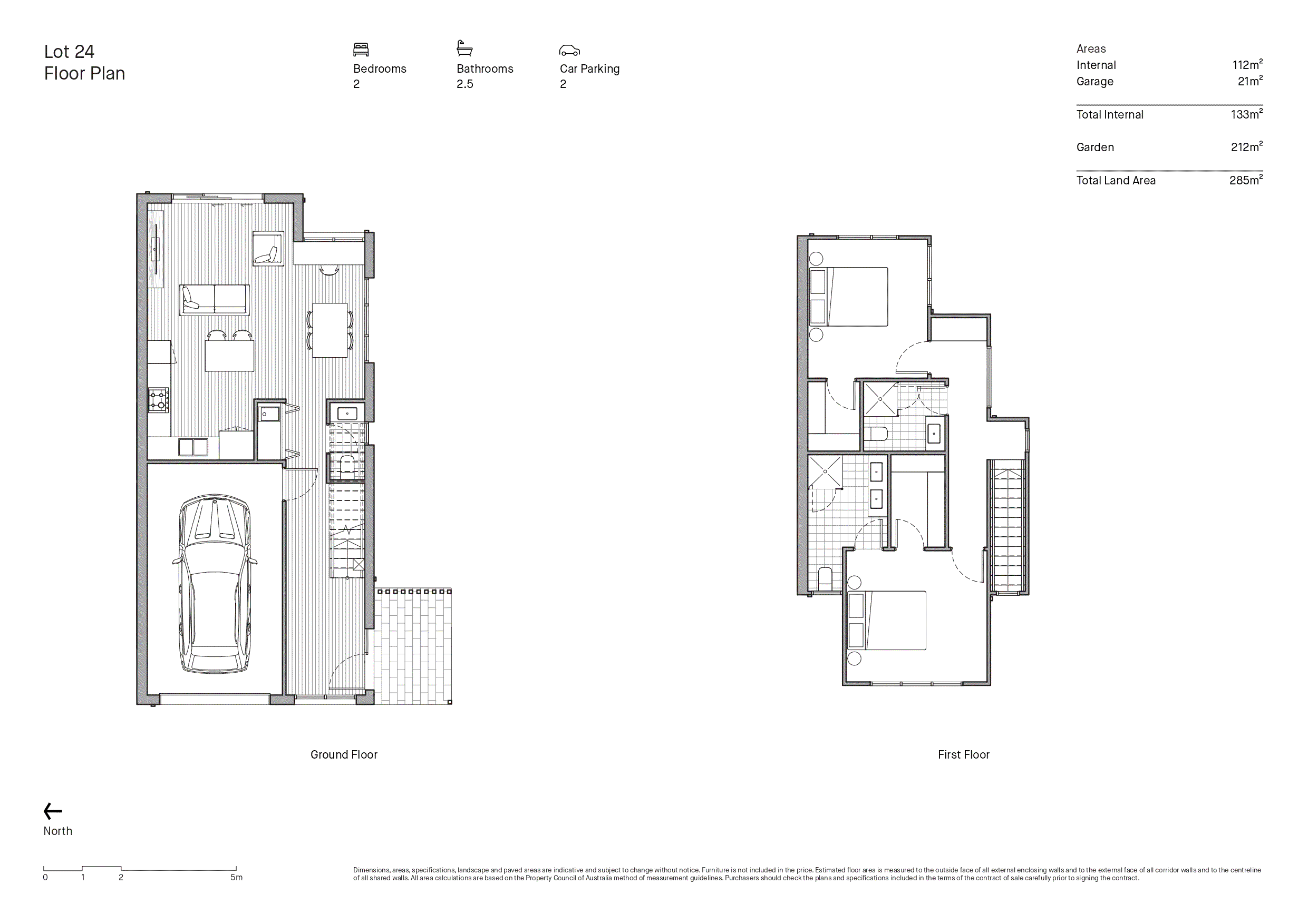 Each townhouse’s open plan living areas ensure a sense of space and openness. Large sliding doors open onto private courtyards, creating a harmonious relationship between the outside and in.