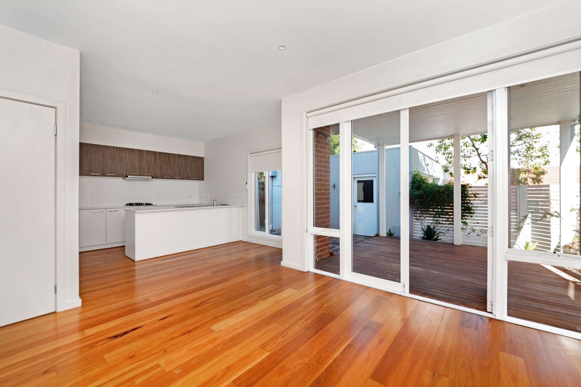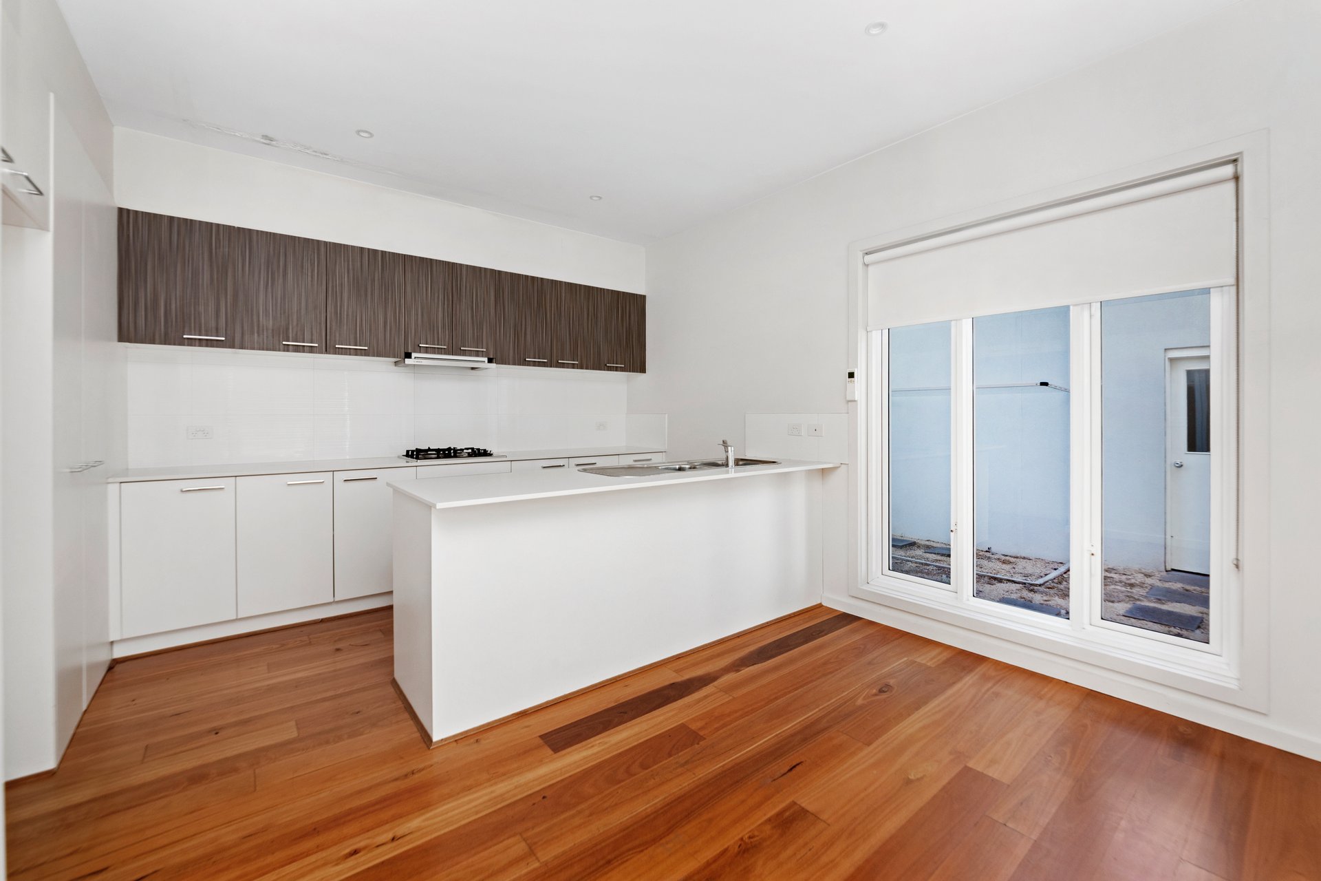 This sun-filled, two-storey townhouse offers a thoughtfully designed layout combining modern comfort with practical living. Upon entry, a welcoming hallway leads through to a spacious open-plan living, dining and kitchen area, complete with engineered timber flooring and direct access to a private courtyard, ideal for indoor-outdoor entertaining. The contemporary kitchen is well-appointed with gas cooking, a dishwasher, stone benchtops and generous cupboard space. The ground floor also features a convenient Euro laundry, a dedicated home office, and a master bedroom with built-in robes and a private ensuite.