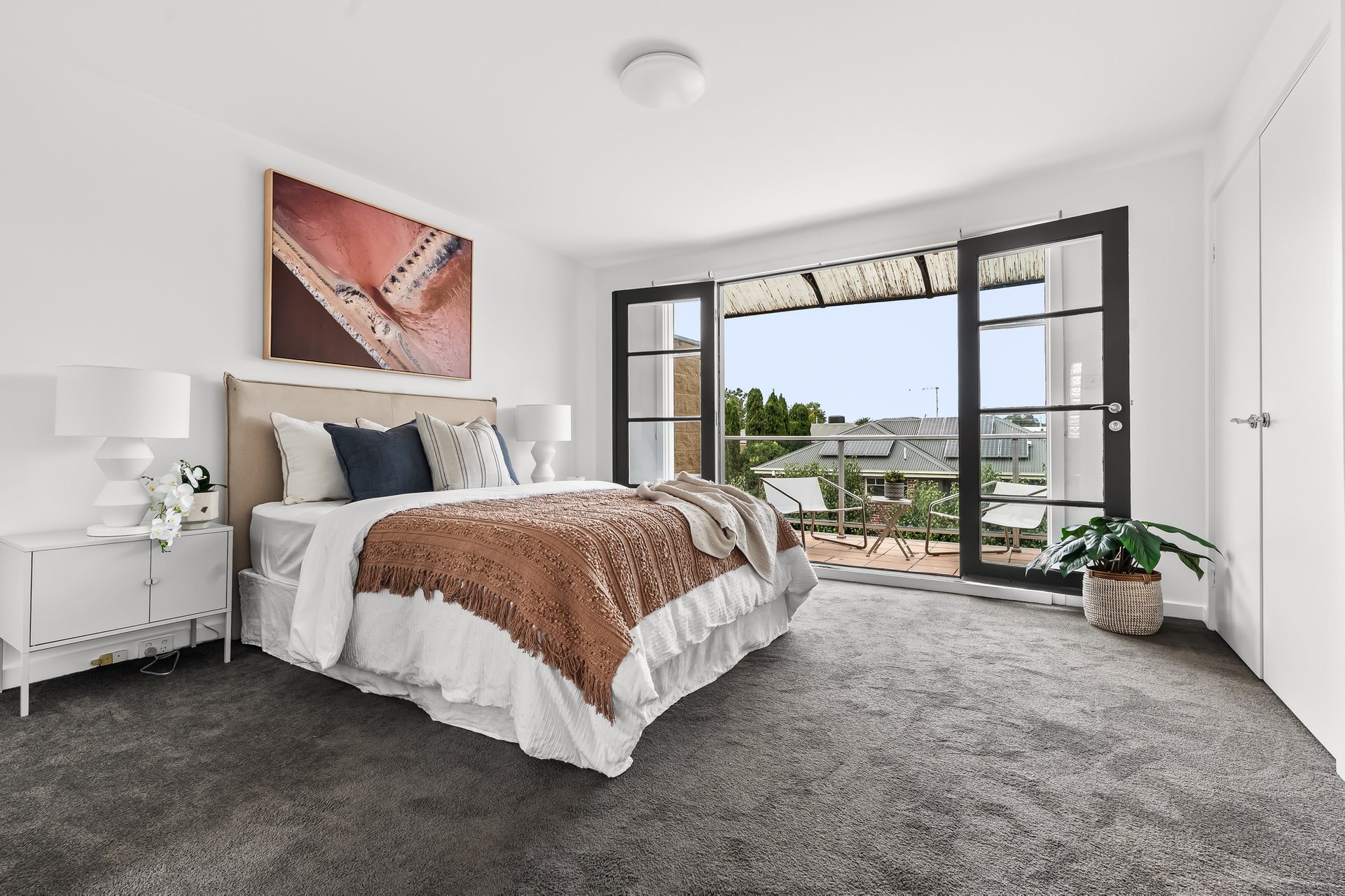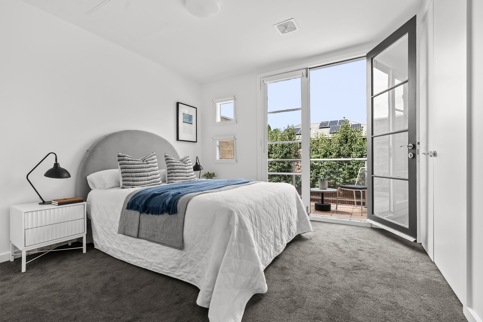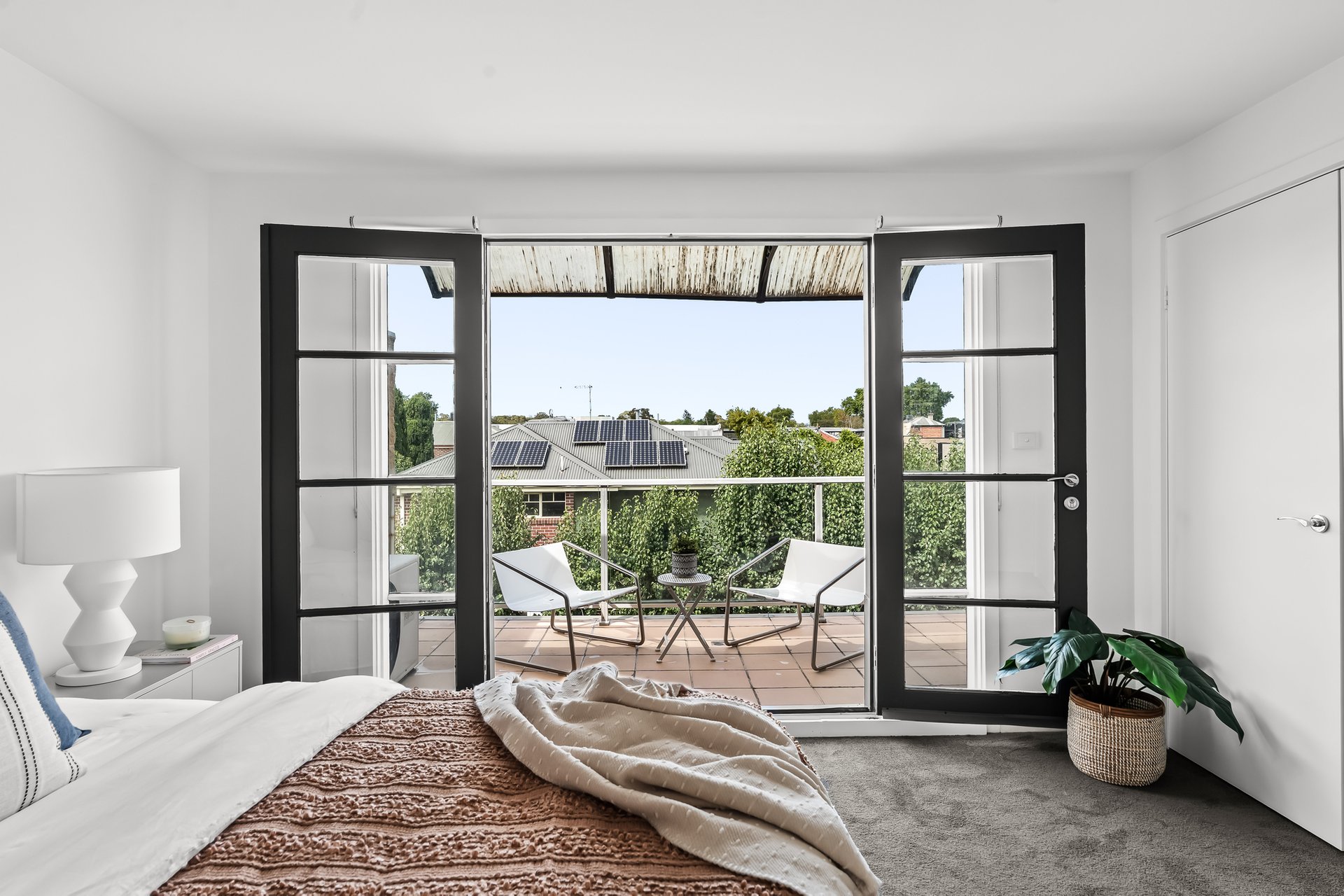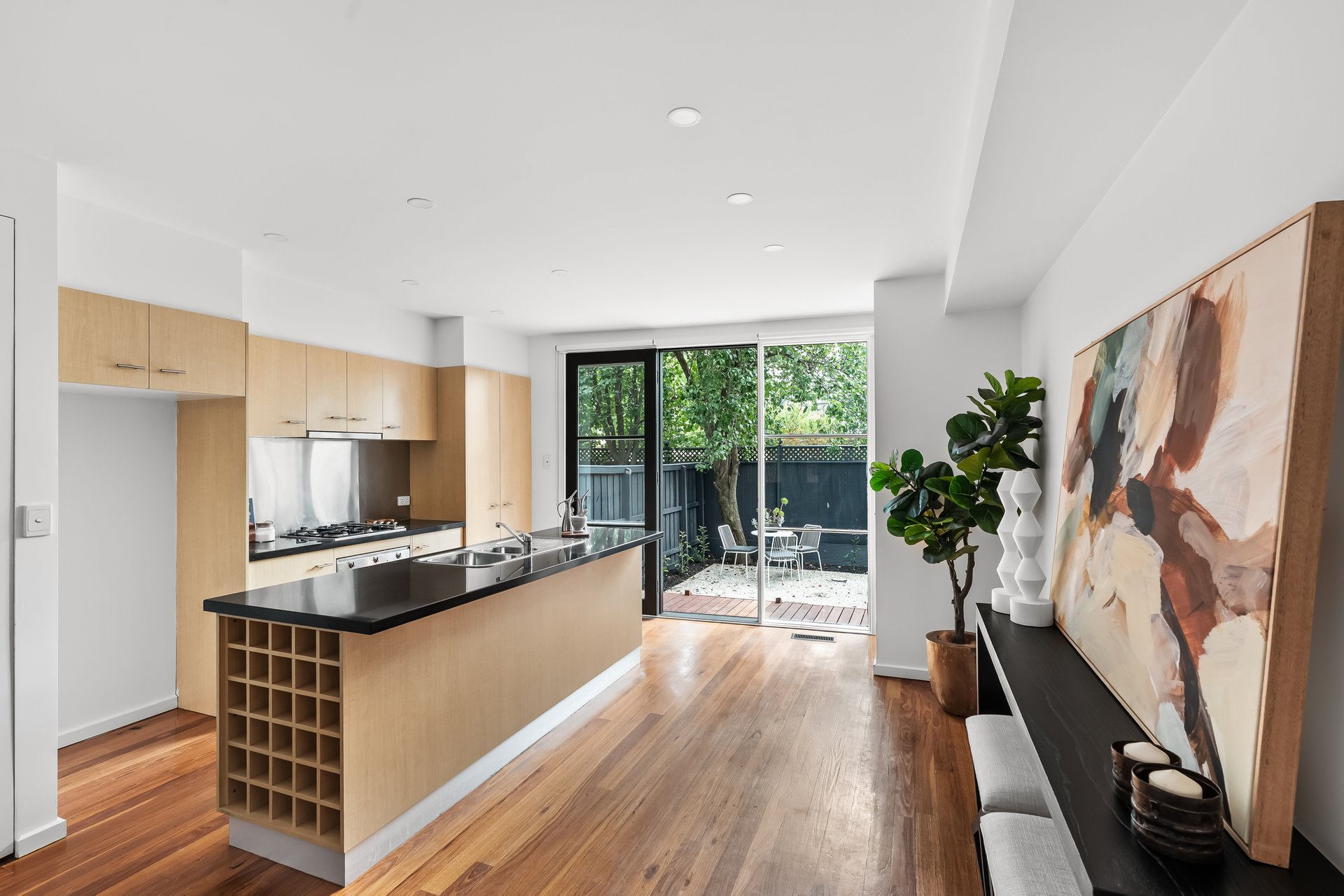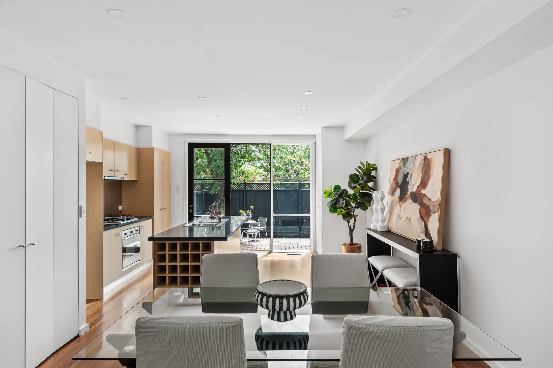 Tucked in a private enclave of only four, this three bedroom two bathroom contemporary townhouse is a lifestyle lover’s dream. Enviably positioned moments to Fairfield Village and a range of Yarra parklands, this sundrenched home’s sophisticated style, timeless finishes and north-facing entertainer’s courtyard offers a low-maintenance lifestyle of the highest order. Beyond the carpeted double bedrooms with robes that share two fully tiled bathrooms, master with a spacious ensuite and two of the bedrooms accessing private balconies; open plan living and dining is framed by stylish hardwood floors and square set ceilings. Panelled windows flood this inviting domain in natural light while granite counters grace a chic Smeg appointed island kitchen and seamless flow to the private rear courtyard invites relaxed indoor/outdoor living and entertaining. With extras that include ducted heating, split system cooling, separate powder room, European laundry and car space on title, all embraced by both the serenity of Yarra parklands, Fairfield Station, highly regarded schools (zoned to Northcote High) and the bustling cafes and shopping of Station Street, this secluded yet perfectly connected property offers modern low-maintenance living at its best.