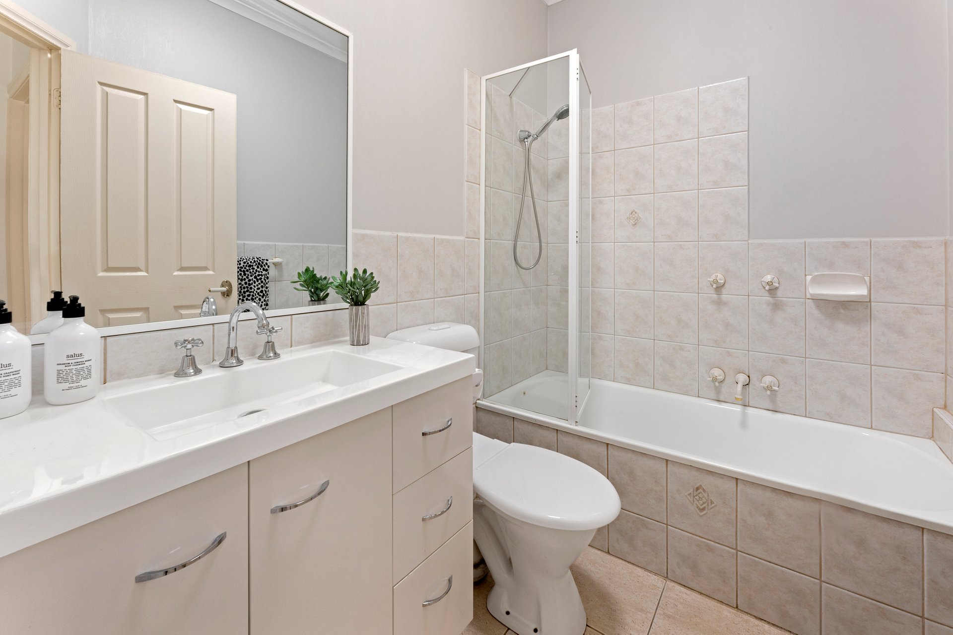 All three bedrooms benefit from built-in storage – they share a bright central bathroom with WC and shower over a bath. A full laundry, ducted heating/vacuum, split system heating/cooling, alarm, paved courtyard and double auto garage with handy house access wrap up a truly appealing package – one that will appeal to young home buyers, downsizers and even families seeking spacious yet easy-care living in a sought-after locale.