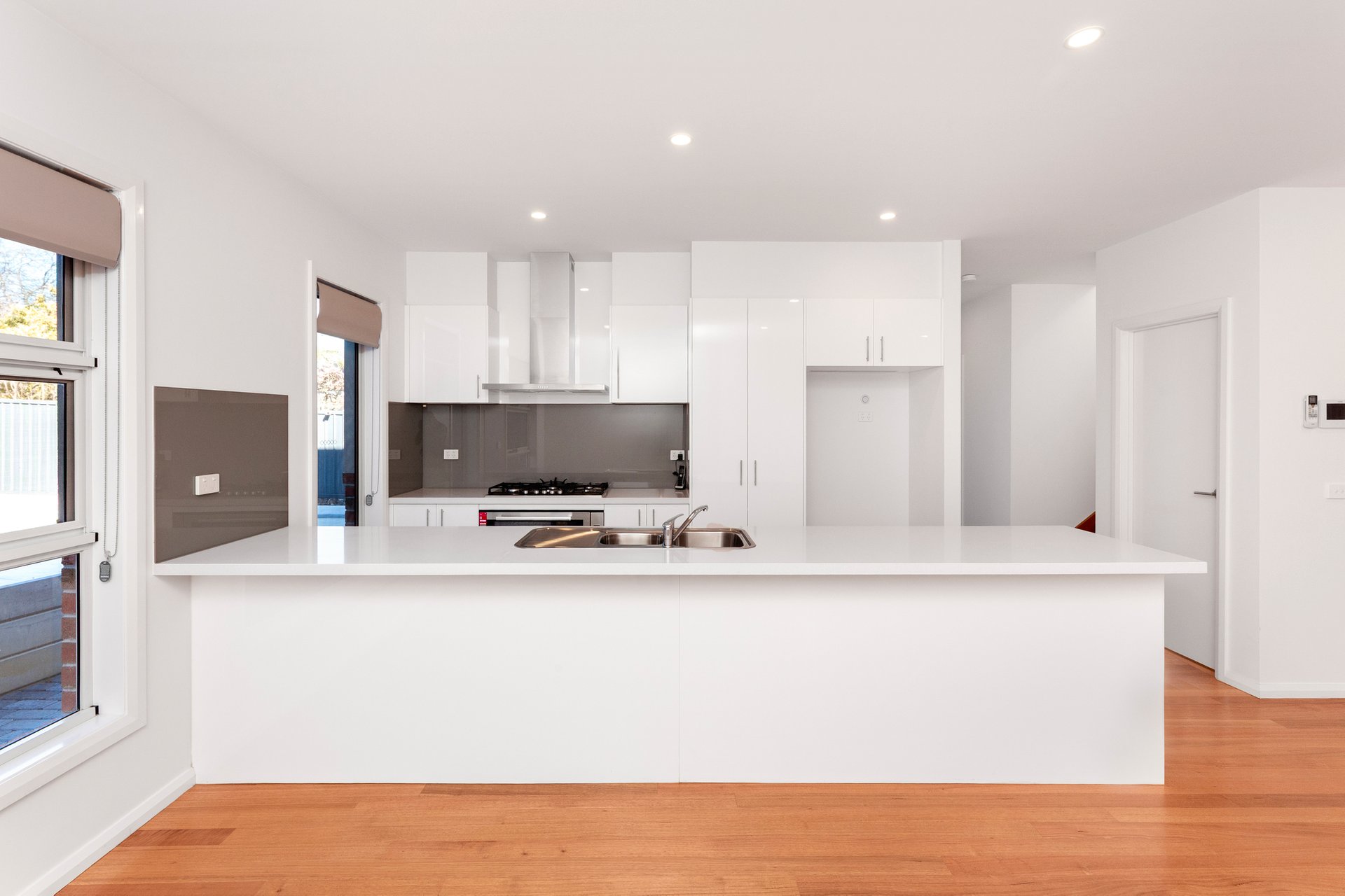 Sleek and stylish, the homes welcome with warm hardwood floors flowing into a light-filled living and dining zone. Designed for entertainers, the kitchens are equipped with ample storage, stone benchtops, a 900mm oven and cooktop, plus a full walk-in pantry. Each opens to a sunny north-facing patio ideal for hosting guests or relaxing in the sun.