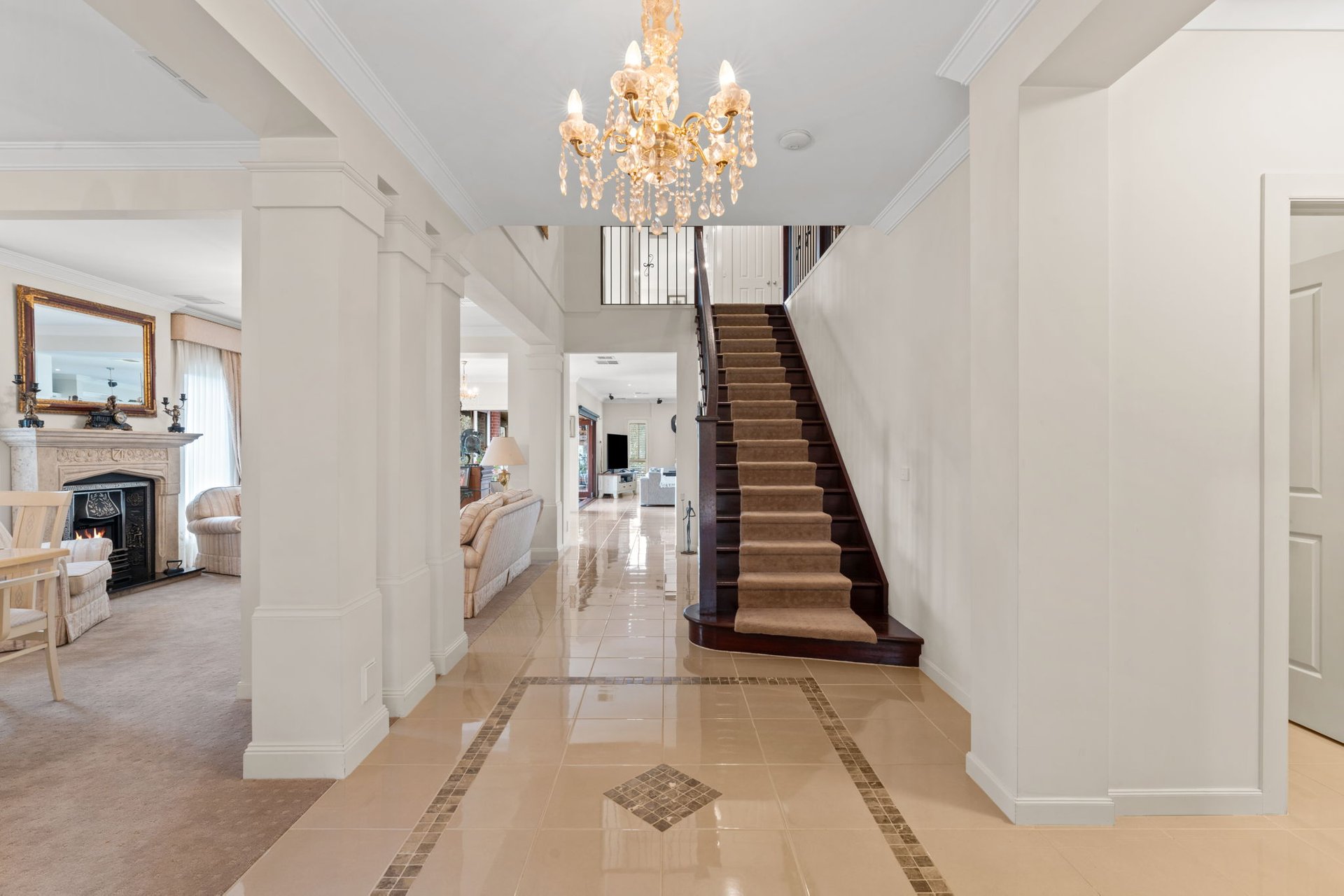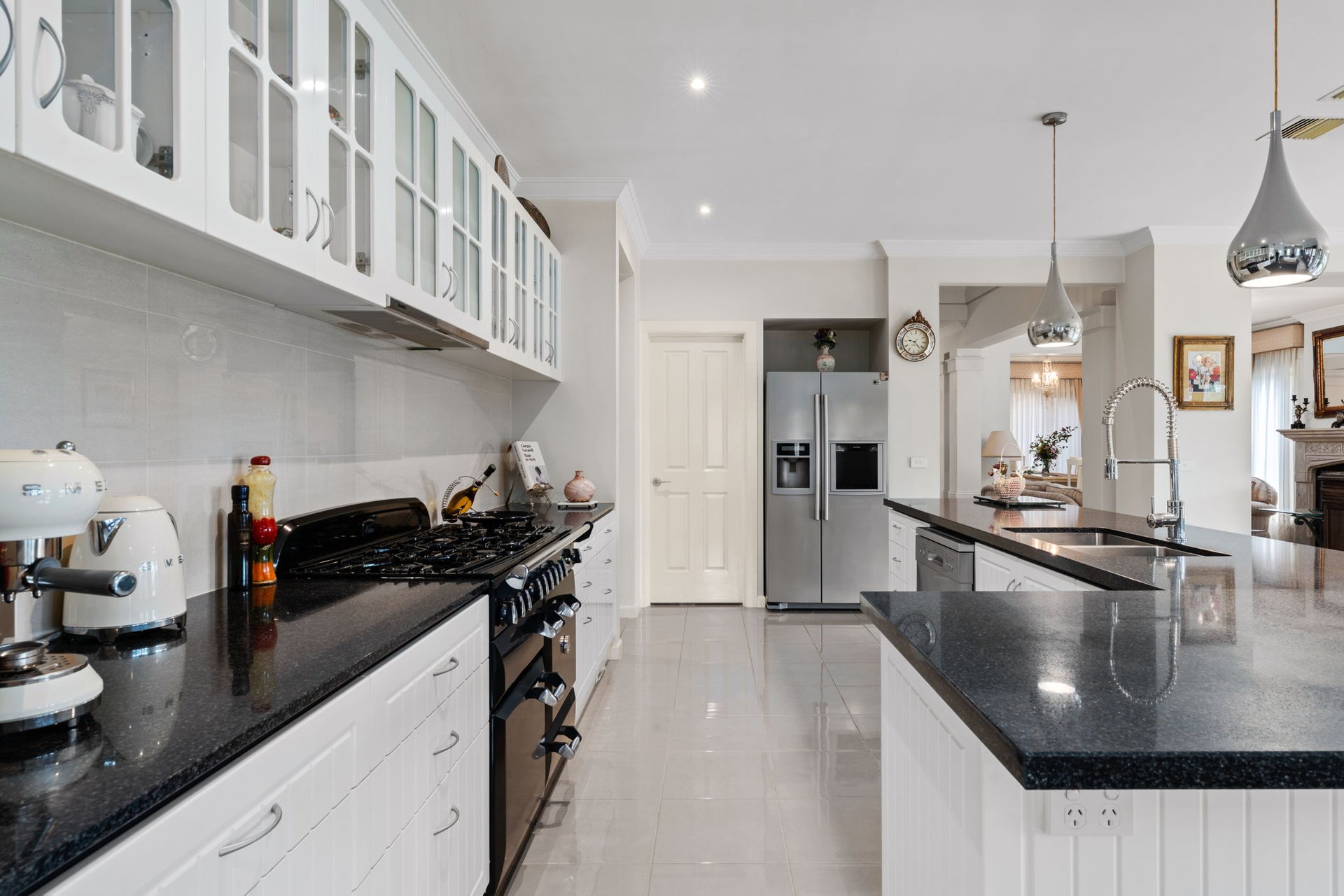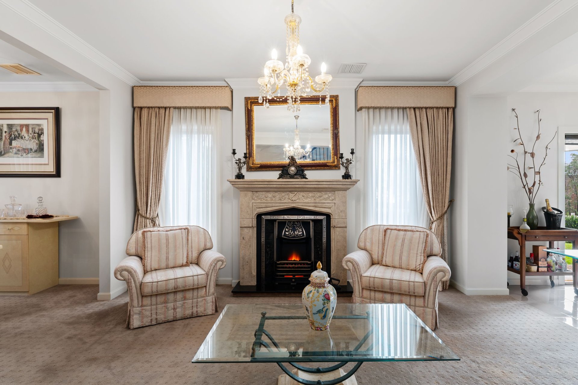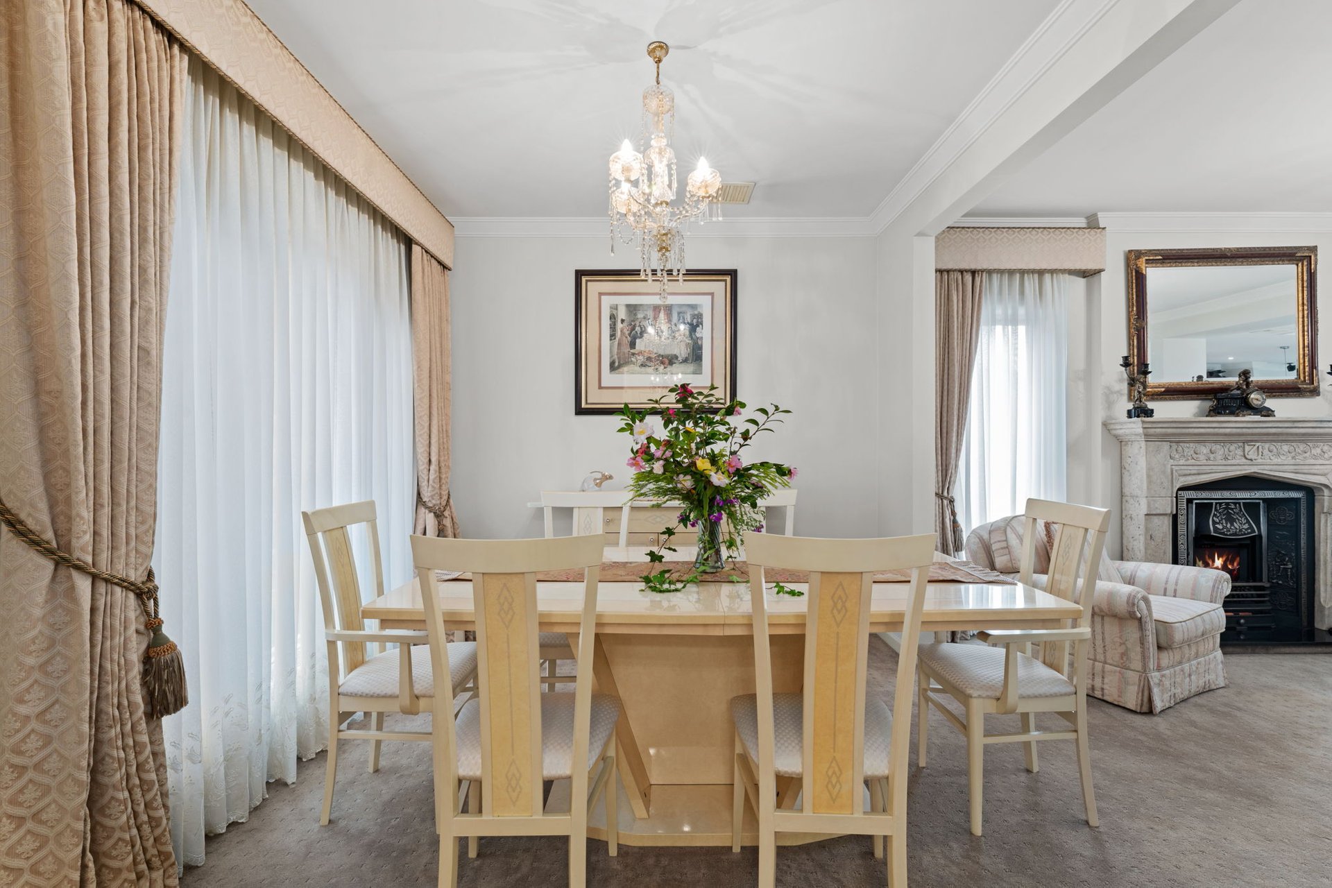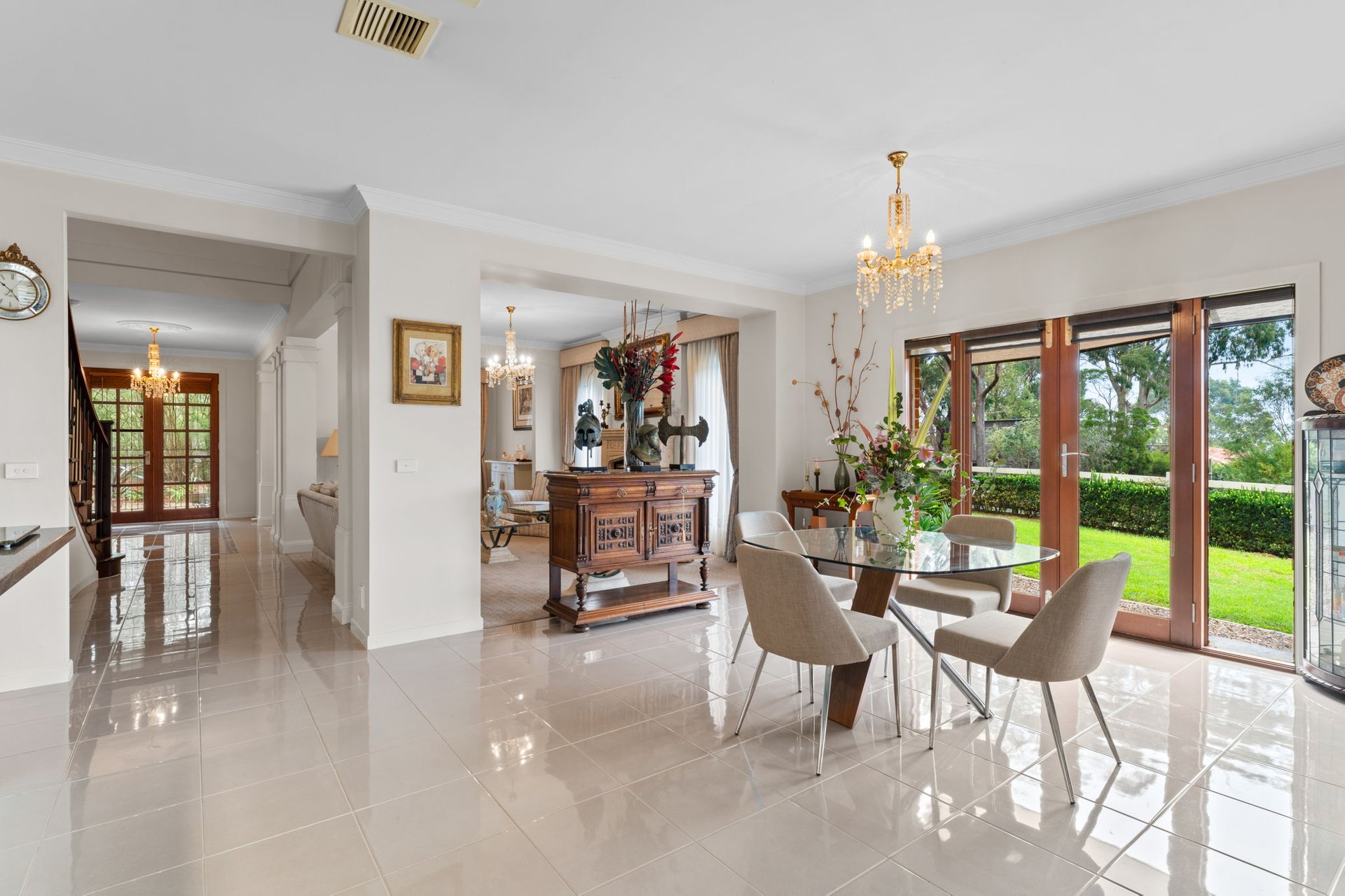 Built with a French Provincial style this grand home has luxurious proportions set high on Arthur's Seat's northern ridge. Showcasing panoramic views across Port Phillip Bay to Martha Cove and the Melbourne skyline, the home's design includes a dramatic chandelier-lit foyer, stylish formal sitting and dining rooms that lead to a casual entertaining domain with the same degree of finesse. A granite island and a falcon freestanding cooktop balance culinary precision with statement design in the kitchen, accompanied by a full butler's kitchen and pantry that surpasses expectations. A northern orientation ensures all-day sunshine across the enclosed alfresco and outdoor kitchen, while a slow-combustion fire invites warmth to the lounge through the winter months.