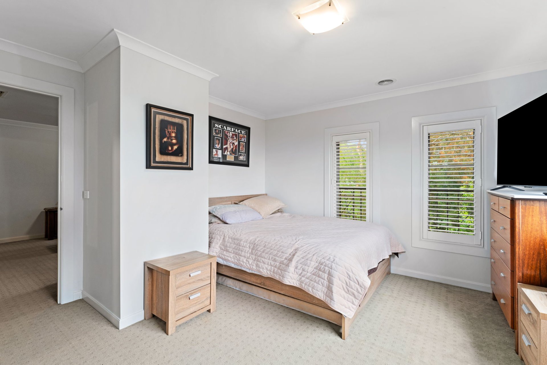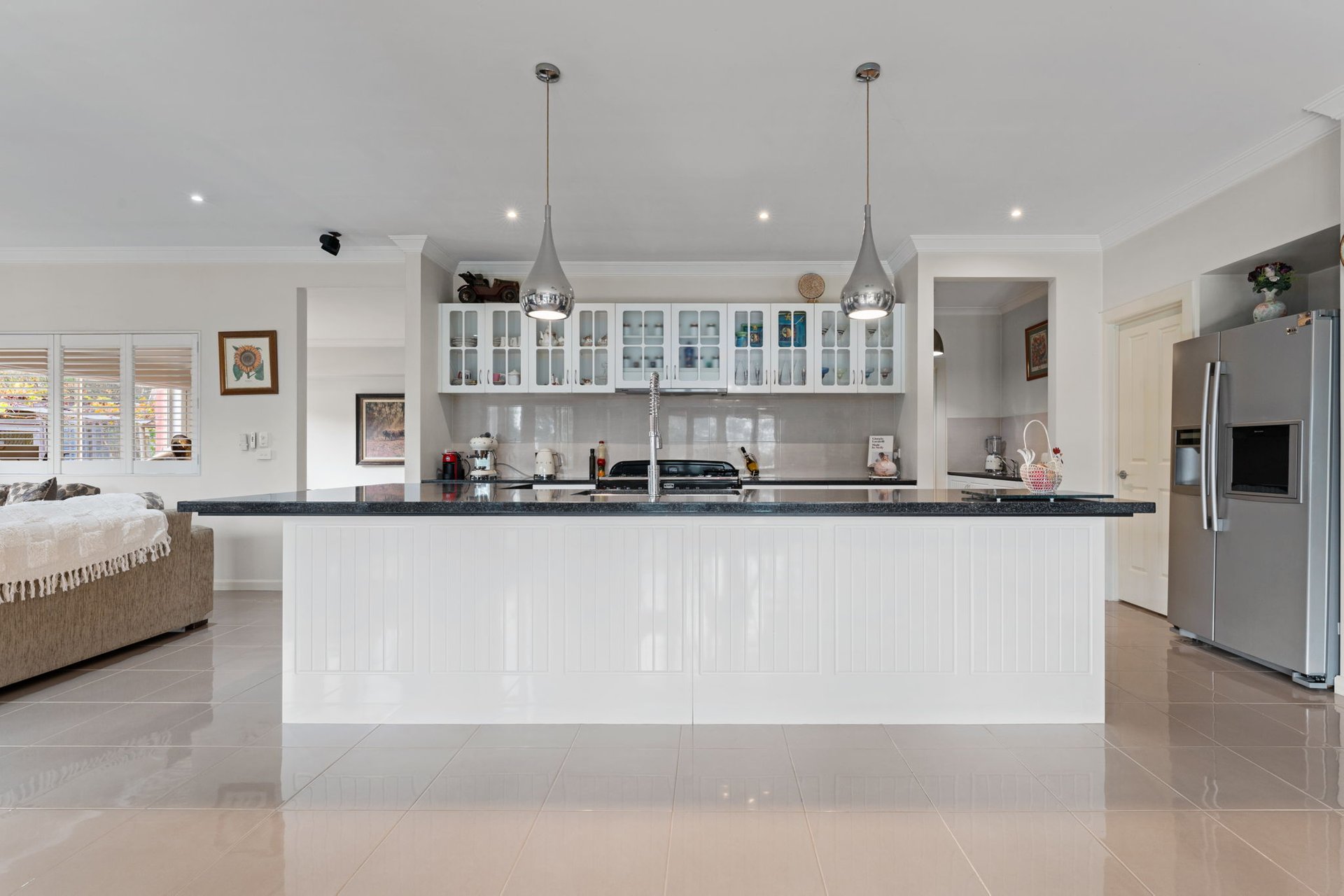 Further enhancements include a double garage, oversized laundry with walk-in linen storage, a cloak room, plantation shutters, ducted heating and evaporative cooling, solar panels, ducted vacuum, and a lower ground home office/rumpus that could easily be converted to an additional bedroom.