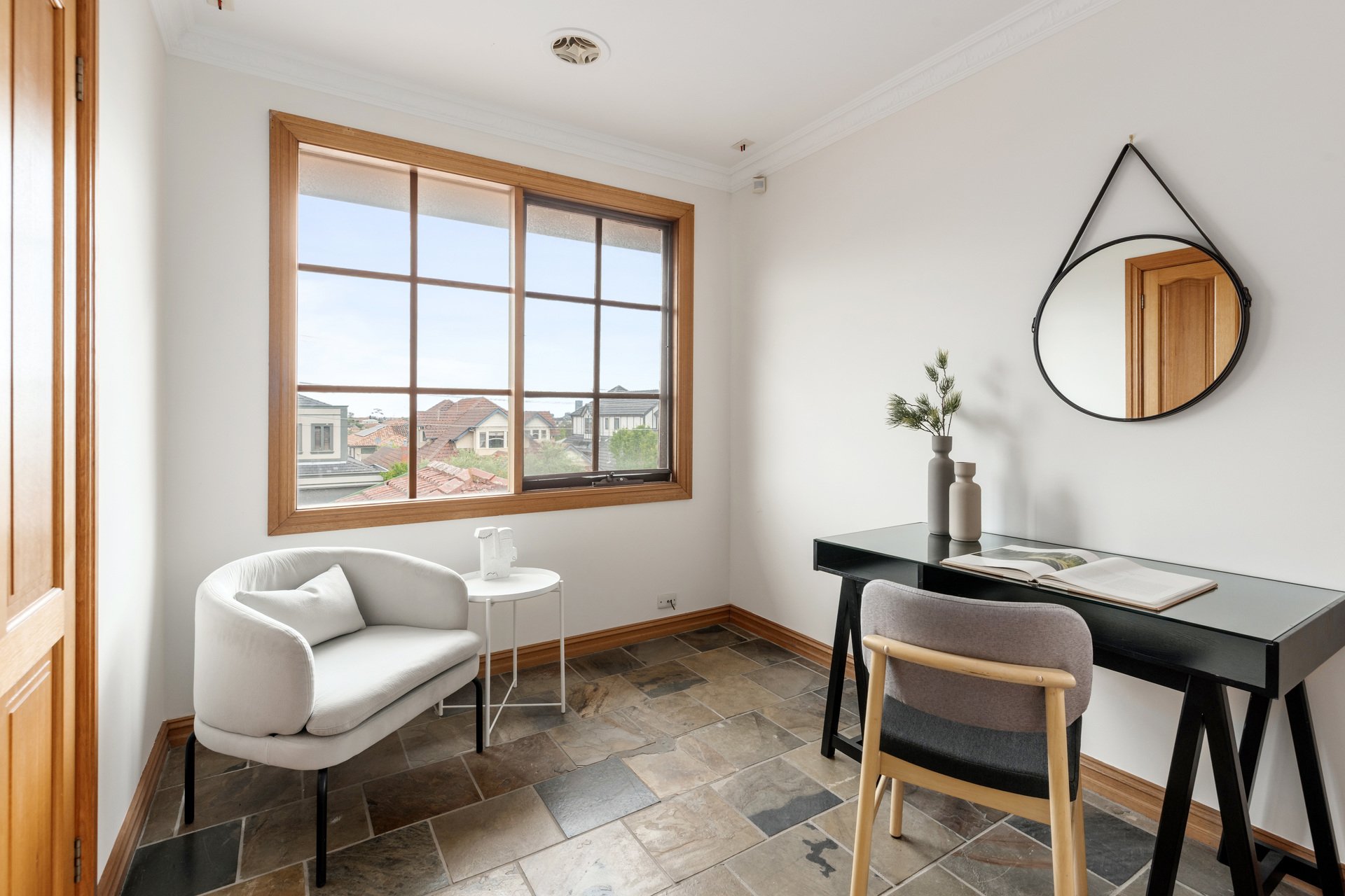 Resting on a sizeable 581m² approx. block zoned to Strathmore High, this well-maintained four bedroom plus study, three bathroom home delivers immediate family enjoyment across multiple living domains designed for both relaxation and connection. Showcasing a clever split-level layout, the double-storey property reveals a charming interplay of polished timber accents, corbelled archways and slate-tiled floors that exude timeless vintage appeal. The front lounge and separate dining complement a versatile family/meals domain, as the sparkling kitchen offers practical space for quick bites and delicious dinners. It's equipped with gas cooking appliances, a stainless-steel Bosch dishwasher, stone benches and ample shaker-style cabinetry. Outdoors, the brick-paved area invites summertime entertaining with a grassy backyard framed by established gardens providing ample room for children and pets to play freely. Upstairs captures city glimpses, while the handy study alcove accompanies robed bedrooms (master with ensuite) and central bathrooms on each floor, one of which boasts an indulgent spa. Further highlights comprise heating/cooling, a wine cellar, laundry, intercom, alarm, shed and an automatic two-way double garage with driveway parking. Less than 9.5km from the iconic CBD, with CityLink, trams and trains close by for an easy commute, it's also moments to the lush Moonee Ponds Creek Trail, Mitchell Reserve, childcare, local shops and popular eateries including Emil's Café.