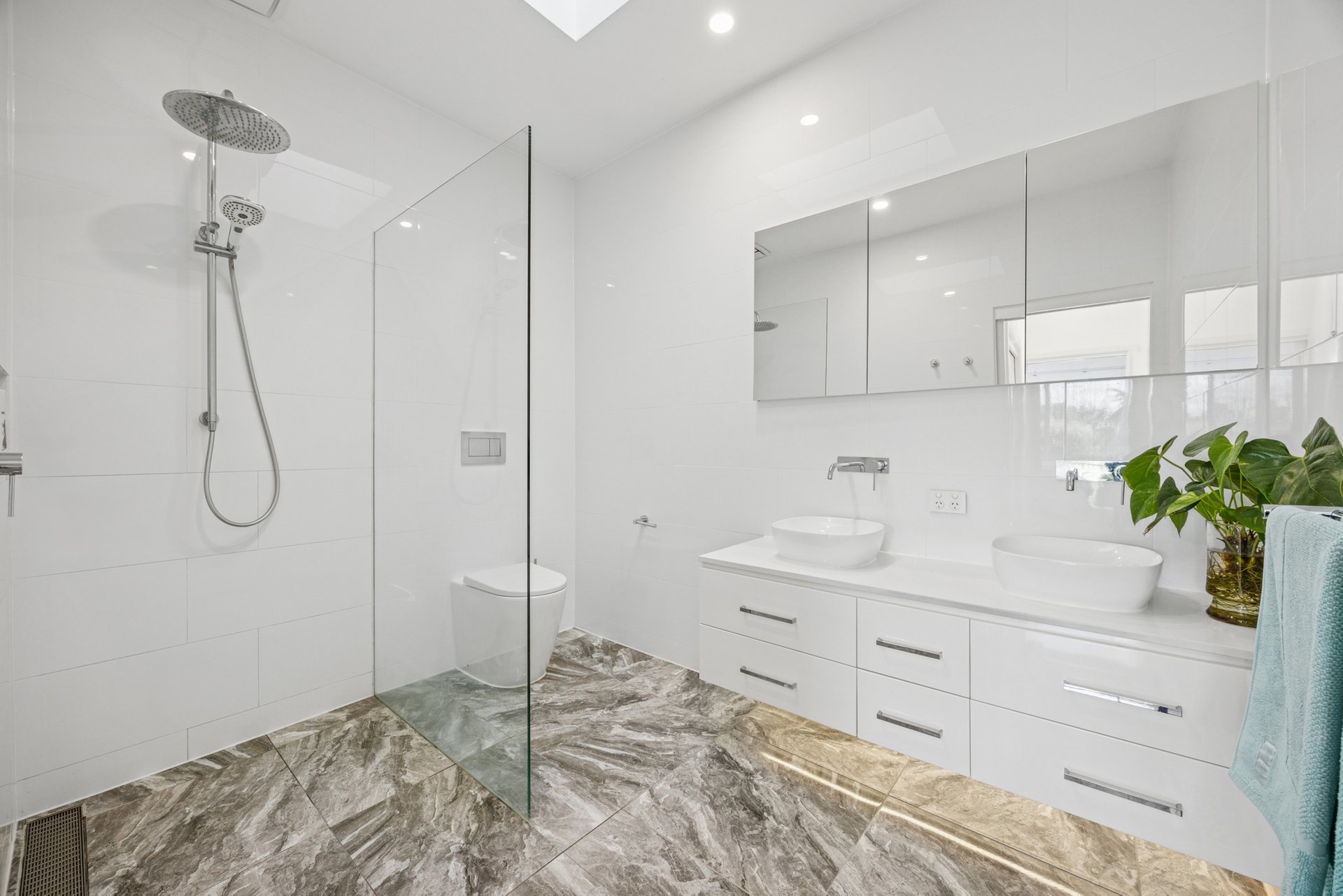 The main bedroom includes a walk-in robe and stylish ensuite. Two additional bedrooms have built-in robes and share a central bathroom with a separate toilet. A full laundry, ducted gas heating, a split-system in the family room and a four-camera security system are additional highlights.
