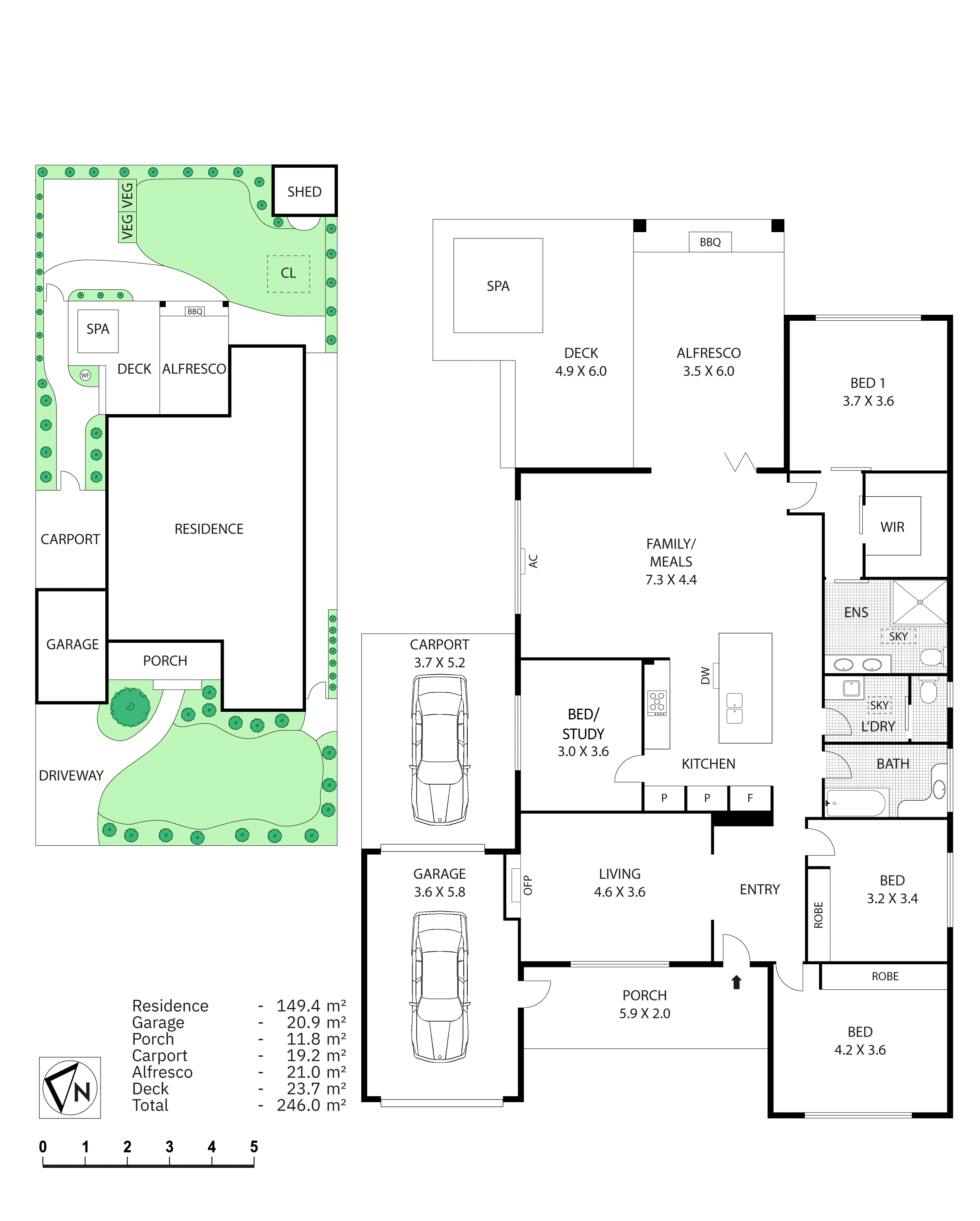 The garden is designed to be used, not fussed over. There are three raised veggie beds for those who like to grow their own, a shed for the things that don’t belong inside, and a fully automated 5-station sprinkler system. There’s also a carport and remote-controlled double garage.