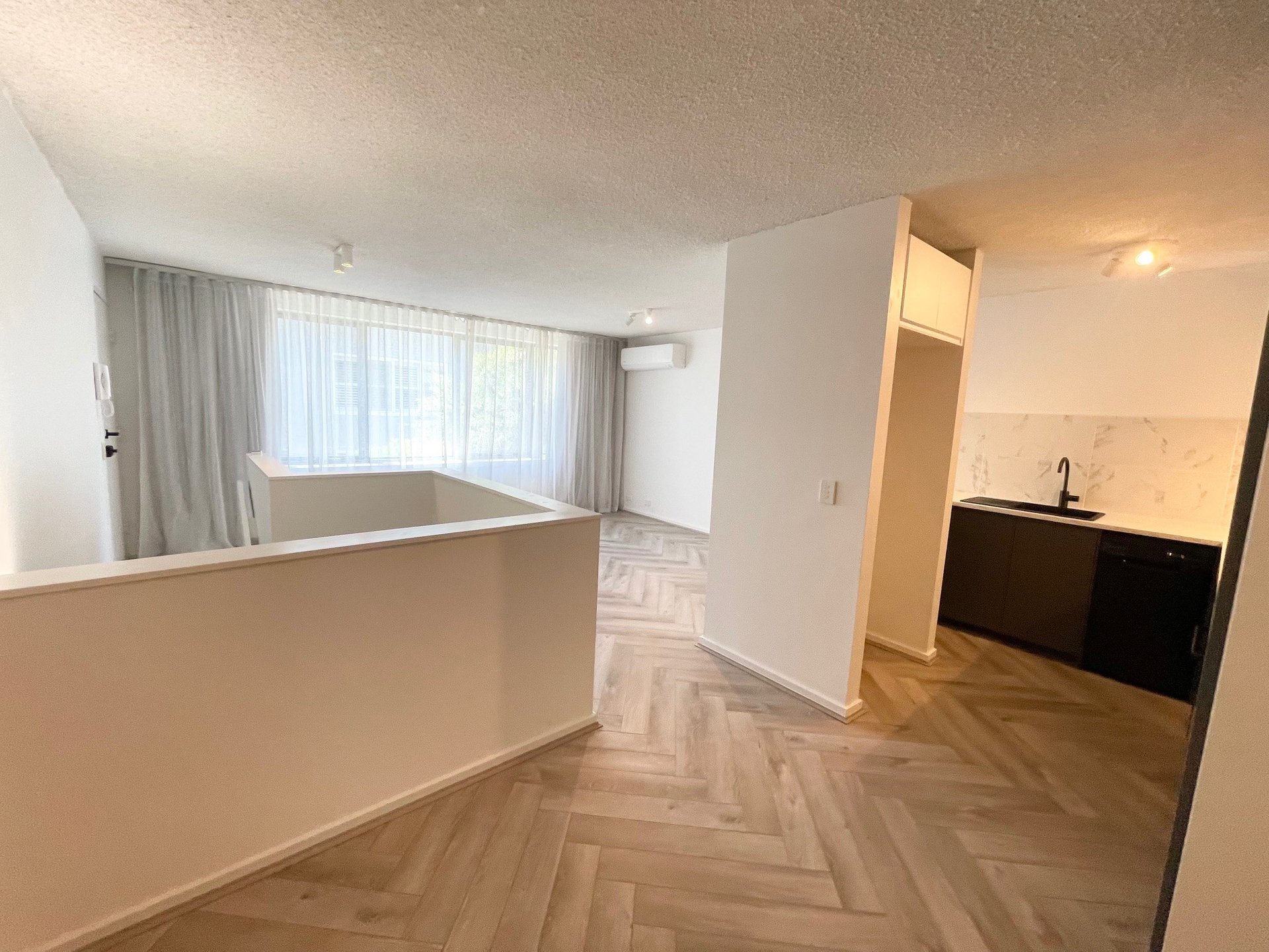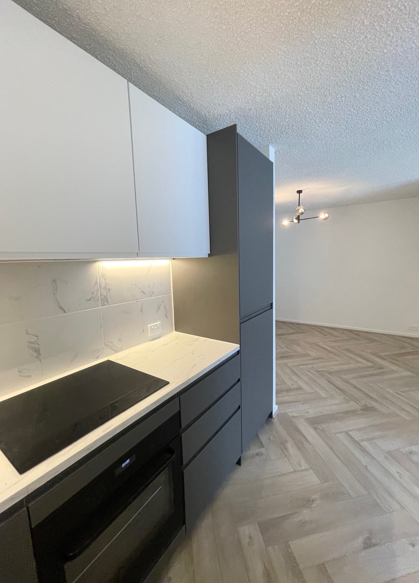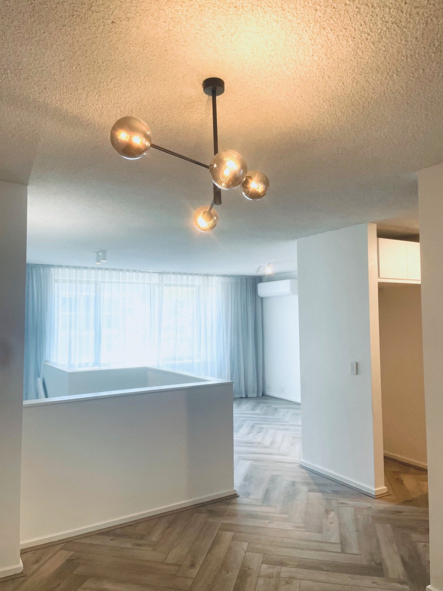 The brand-new kitchen with is both stylish and highly functional, showcasing brand new appliances throughout, quality finishes, ample storage and a breakfast bar. A generous bedroom with built-in robes and ceiling to floor curtains is also located on this level, serviced by a fully renovated central bathroom with separate toilet.