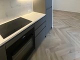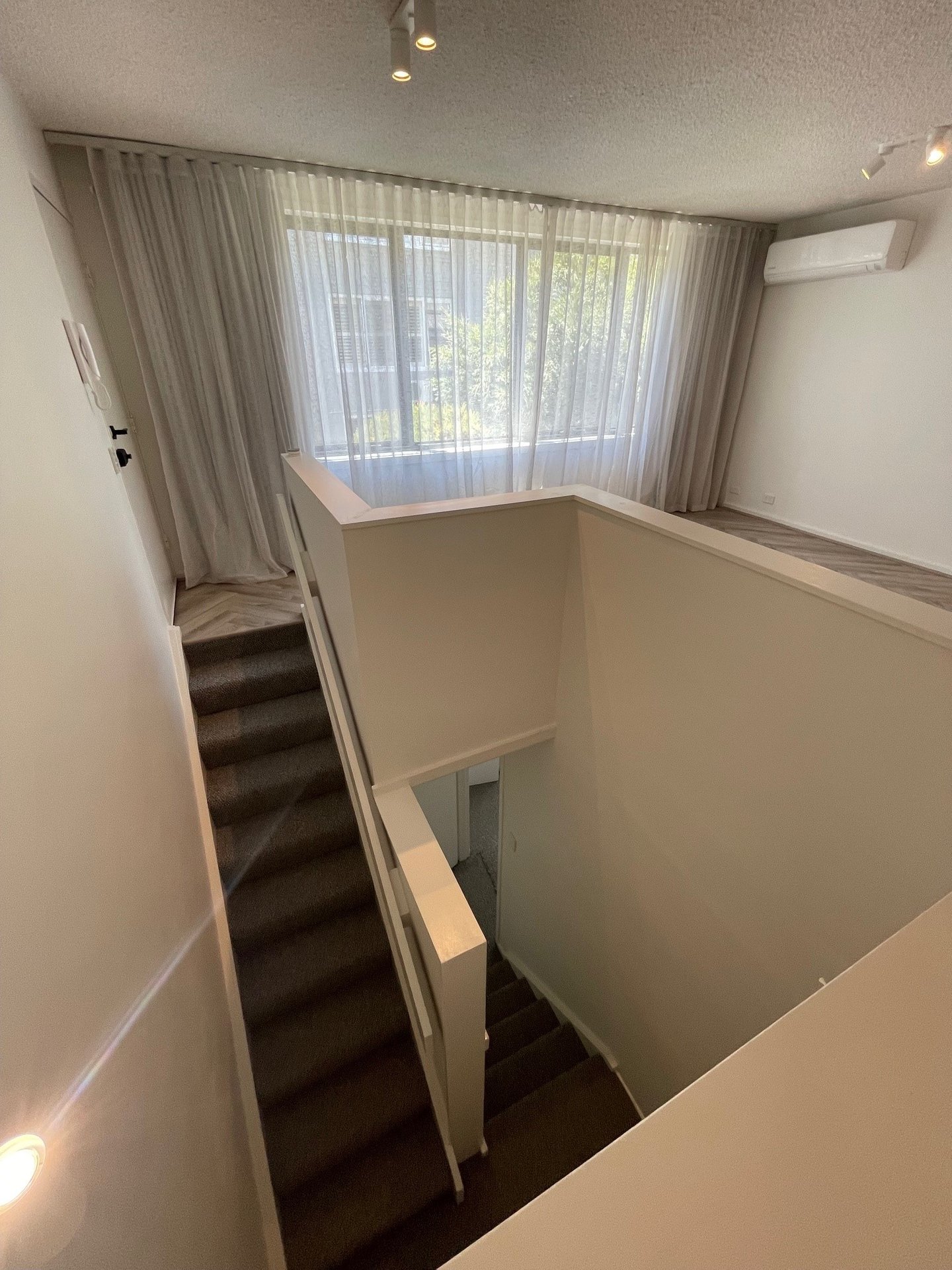 Spanning two generous levels and set well back from Power Street, the apartment offers excellent separation and a peaceful outlook. The first floor features an expansive living and dining zone flooded with natural light, enhanced by stunning herringbone timber floors, luxurious ceiling to floor curtains and is serviced by a split-system heating and cooling unit for year-round comfort.