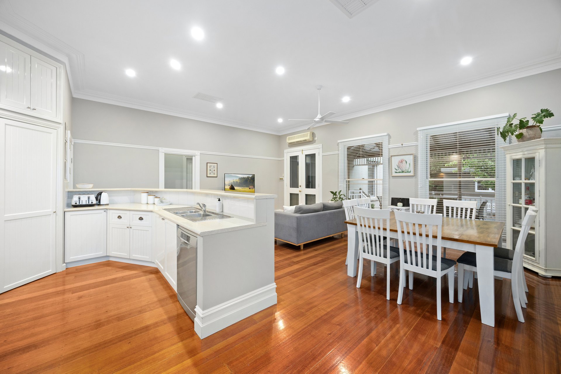 Seamlessly meeting the family’s sleep and study requirements, there are four sizeable bedrooms with built-in wardrobes and a dedicated office. The master boasts a walk-in wardrobe and an ensuite, while the remaining rooms share a stunningly renovated main bathroom.