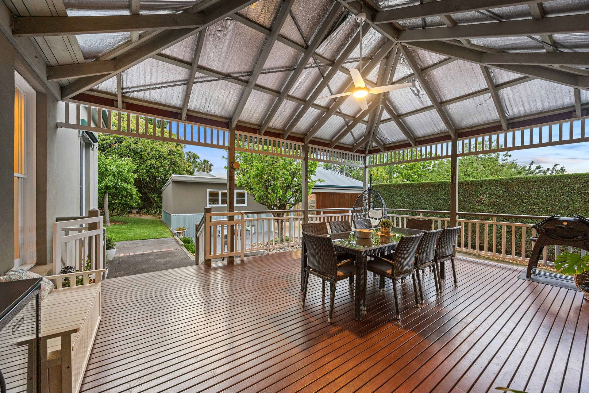 - Spacious covered entertaining deck