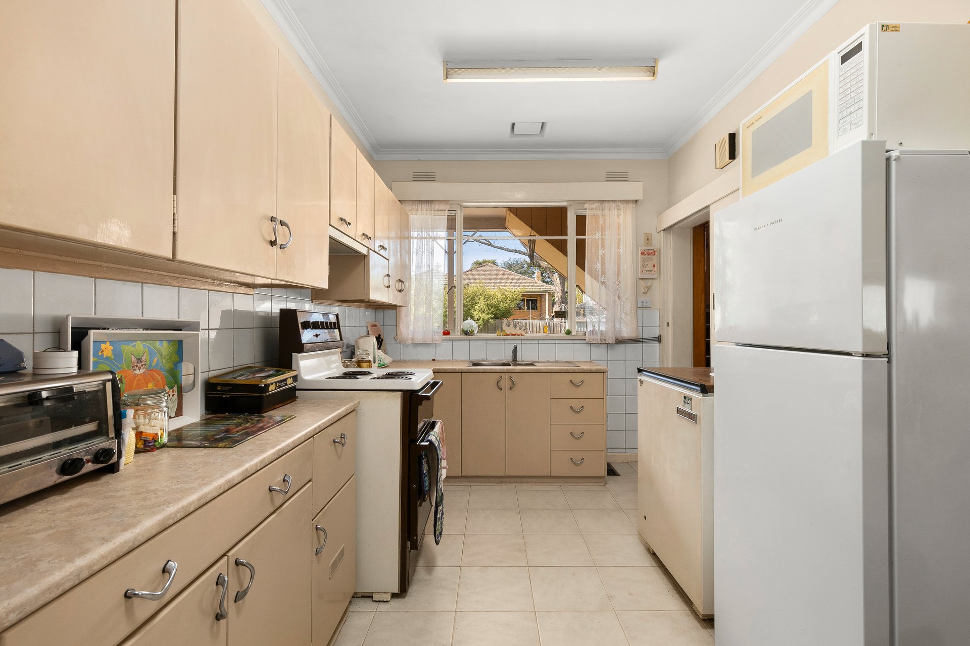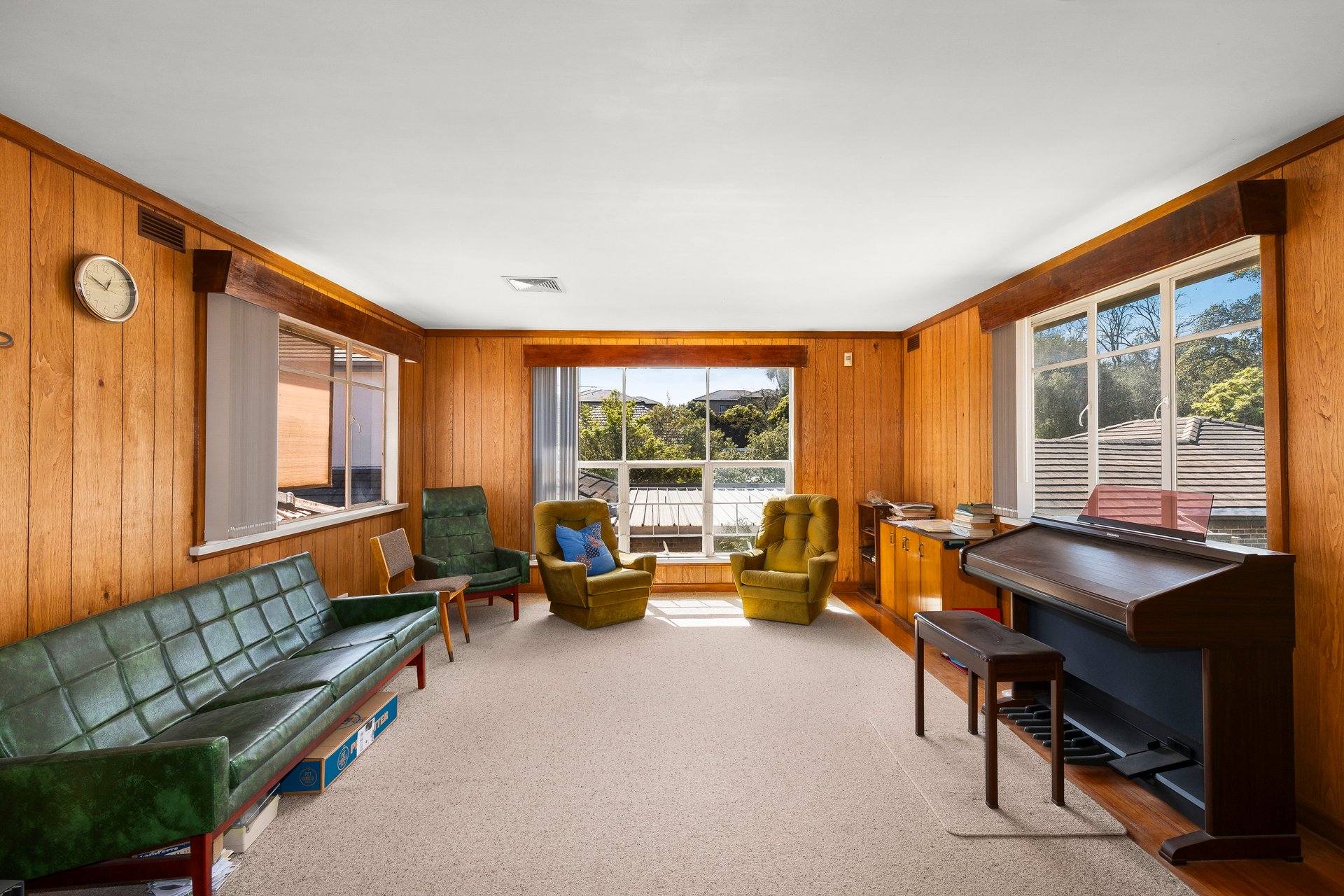 Amongst good company in a peaceful neighbourhood street, the home comprises a sunny lounge and dining room as well as a first floor rumpus room/retreat or office with light pouring in from every direction. Served by a well preserved kitchen and a charming powder-blue bathroom with tub. Also boasts a carport and a garage couched in manicured gardens.