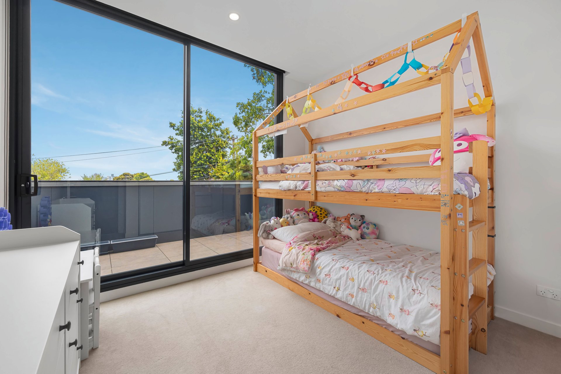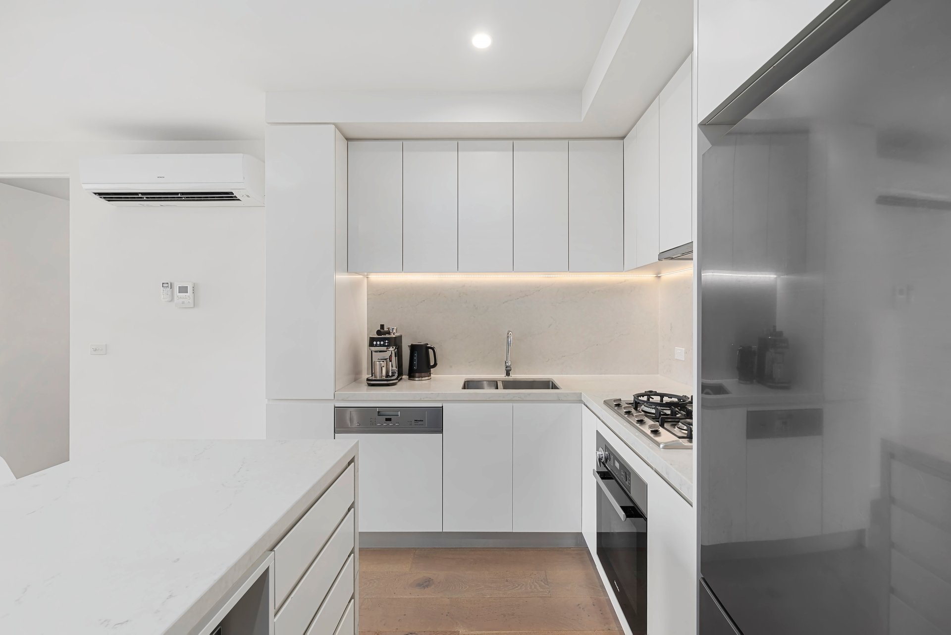 The open-plan meals and family/lounge area is complemented by a sleek kitchen with stone benchtops, quality appliances and ample storage. Glass sliding doors extend the living space to a generous balcony, capturing leafy surrounds and distant city views, ideal for entertaining or unwinding.