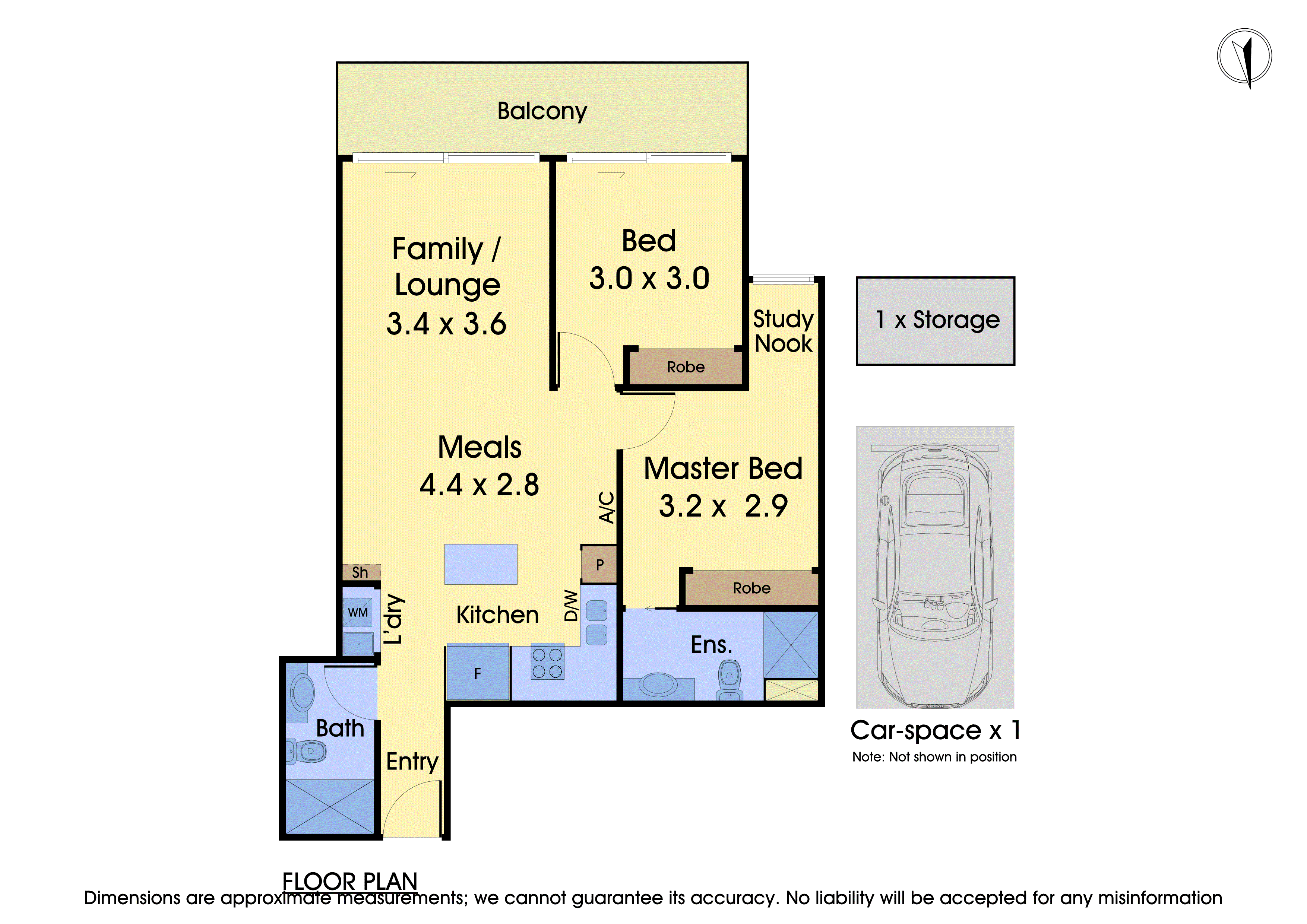 Accommodation includes two well-sized bedrooms with built-in robes, including a master with ensuite, plus a central bathroom and integrated laundry. A study nook adds flexibility for working from home.