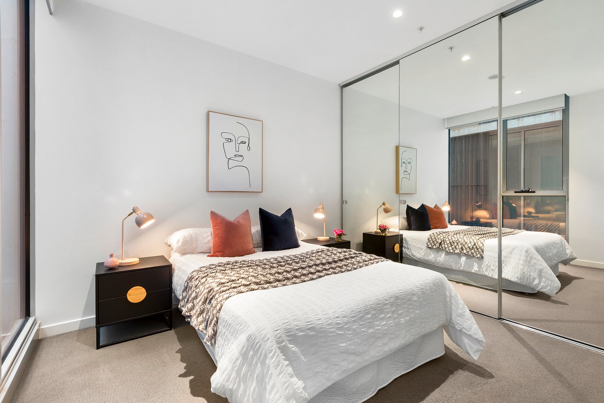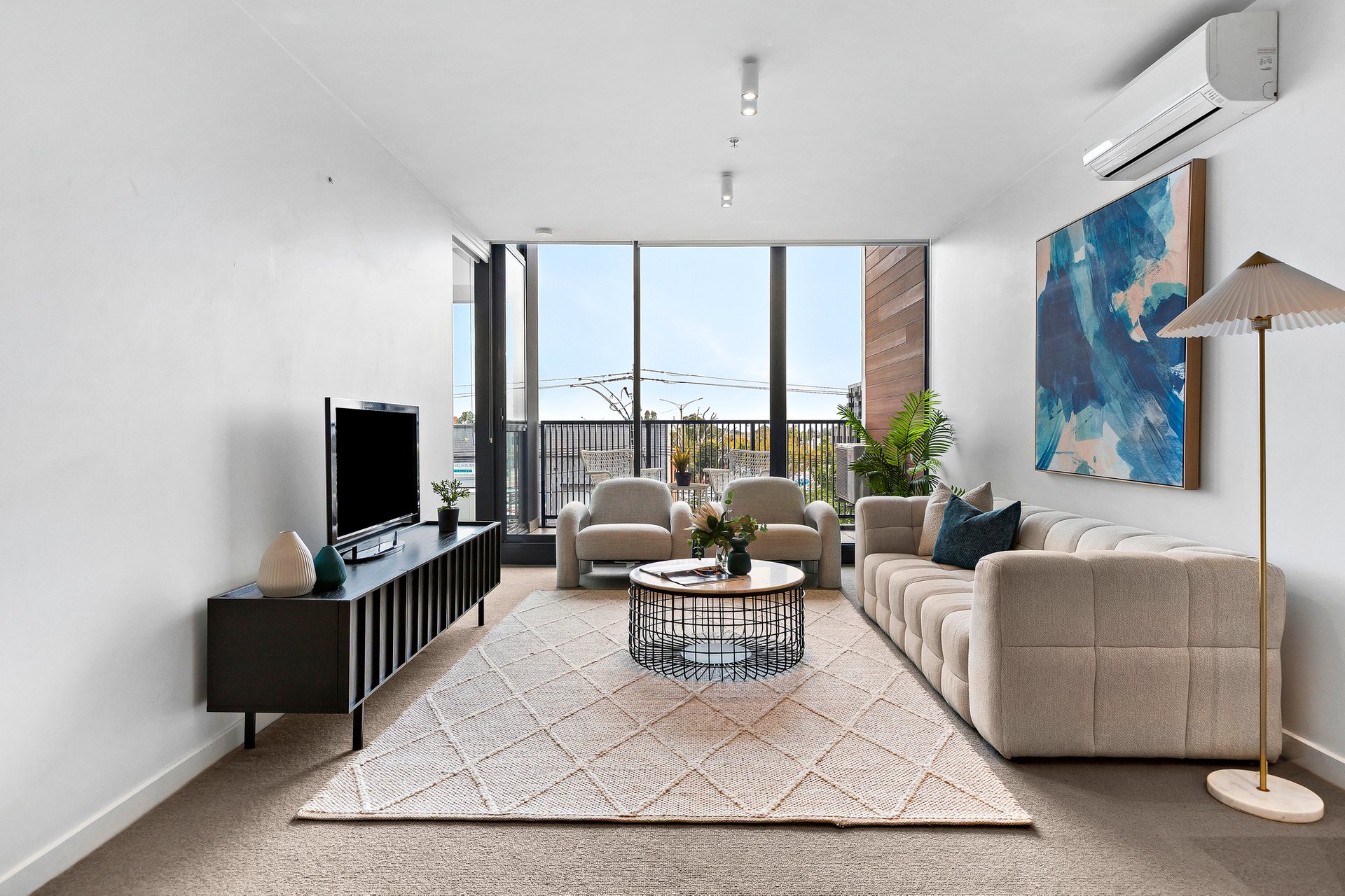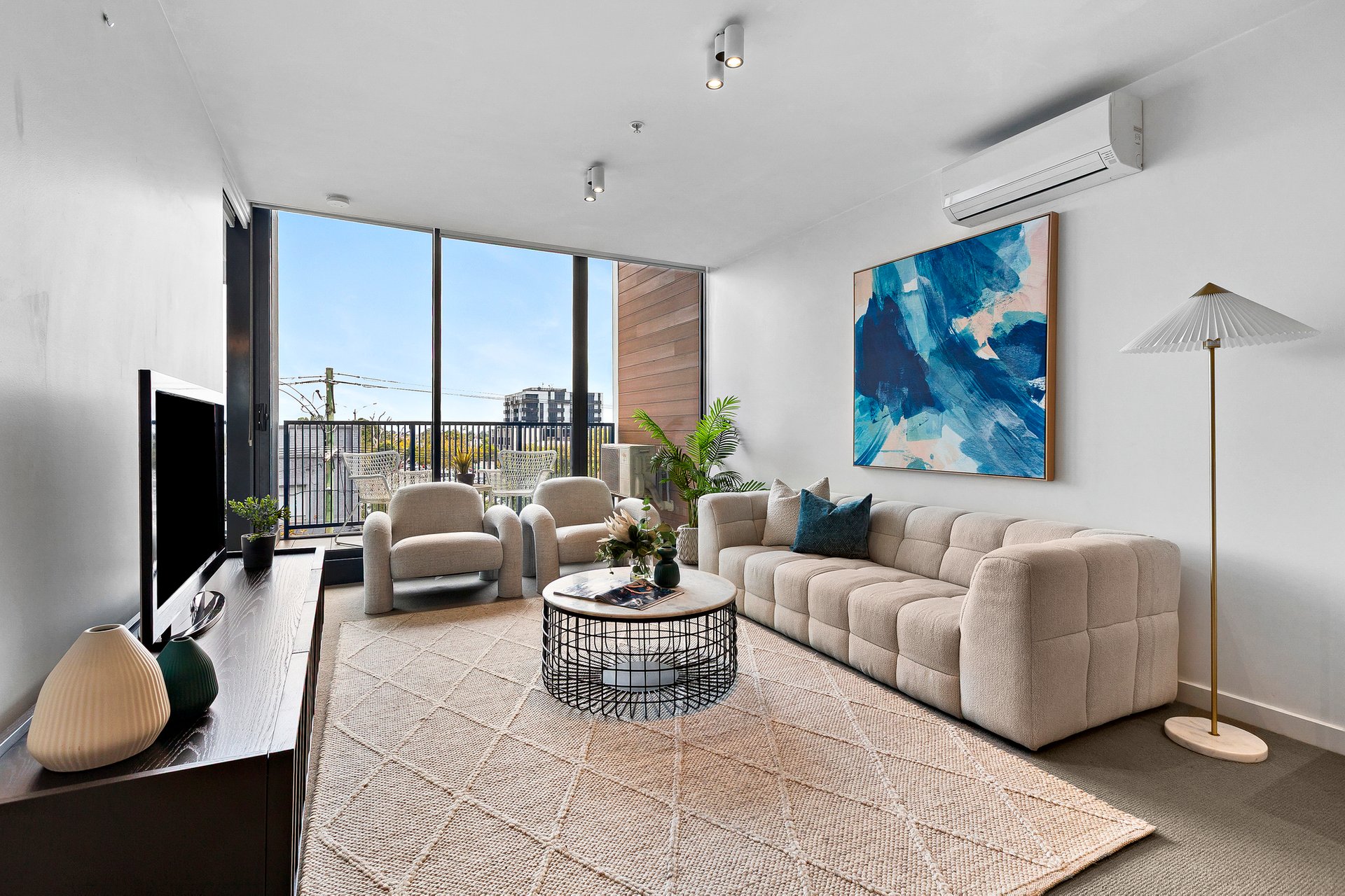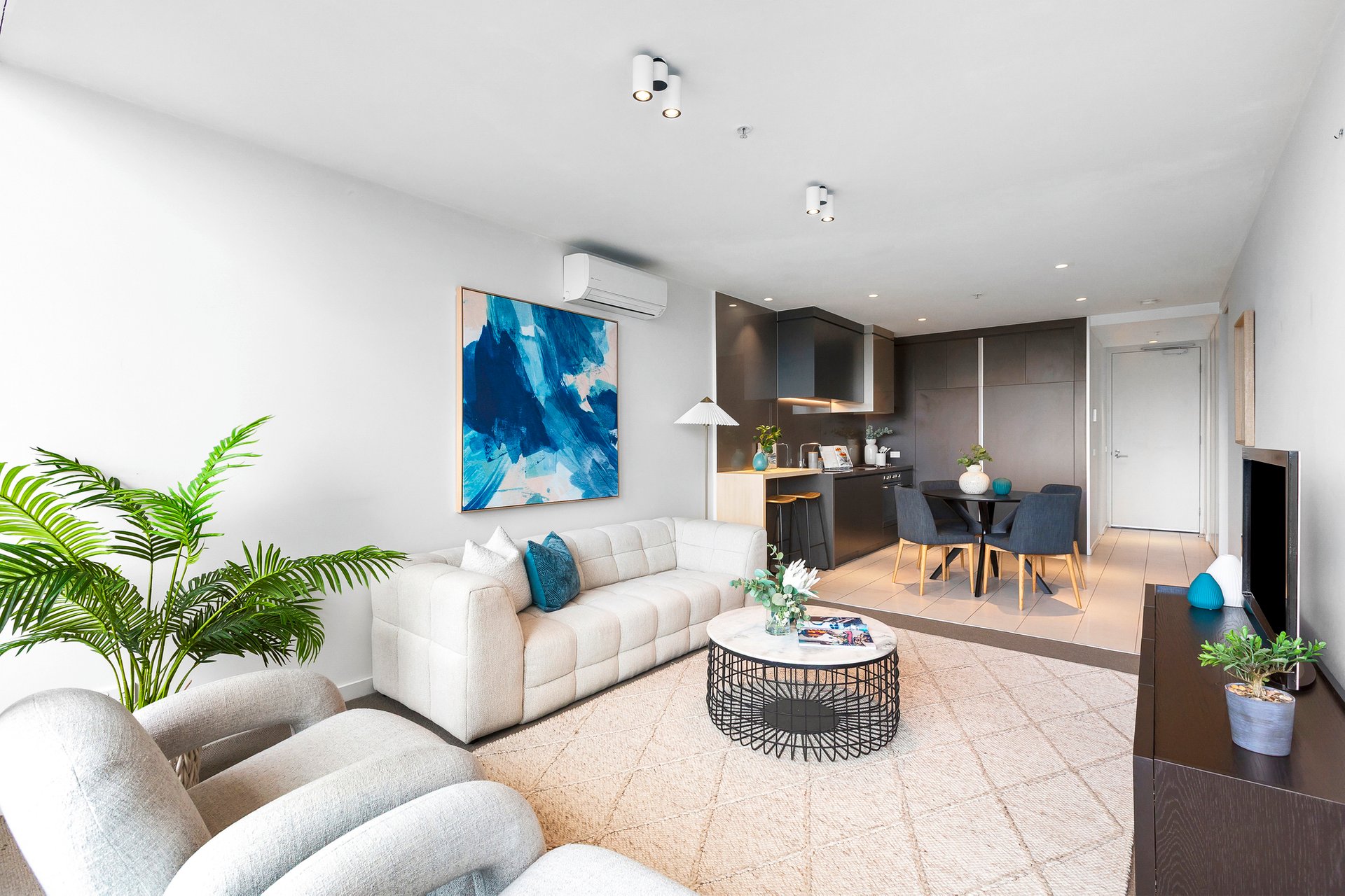 Positioned for exceptional lifestyle convenience, this light-filled and stylish 2-bedroom 2-bathroom apartment delivers contemporary living in the heart of a vibrant precinct. The residence comprises two spacious bedrooms, both fitted with built-in robes, and are serviced by two sleek, modern bathrooms designed with quality finishes.