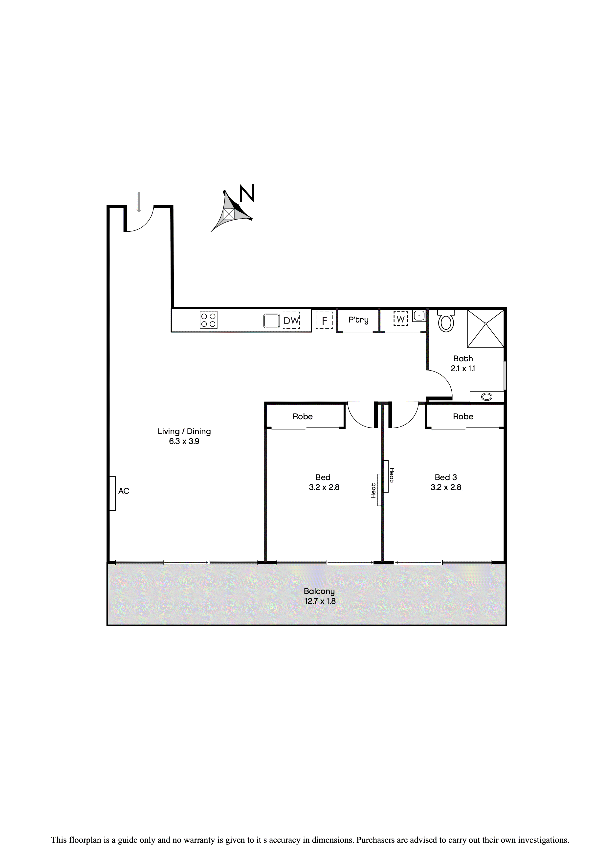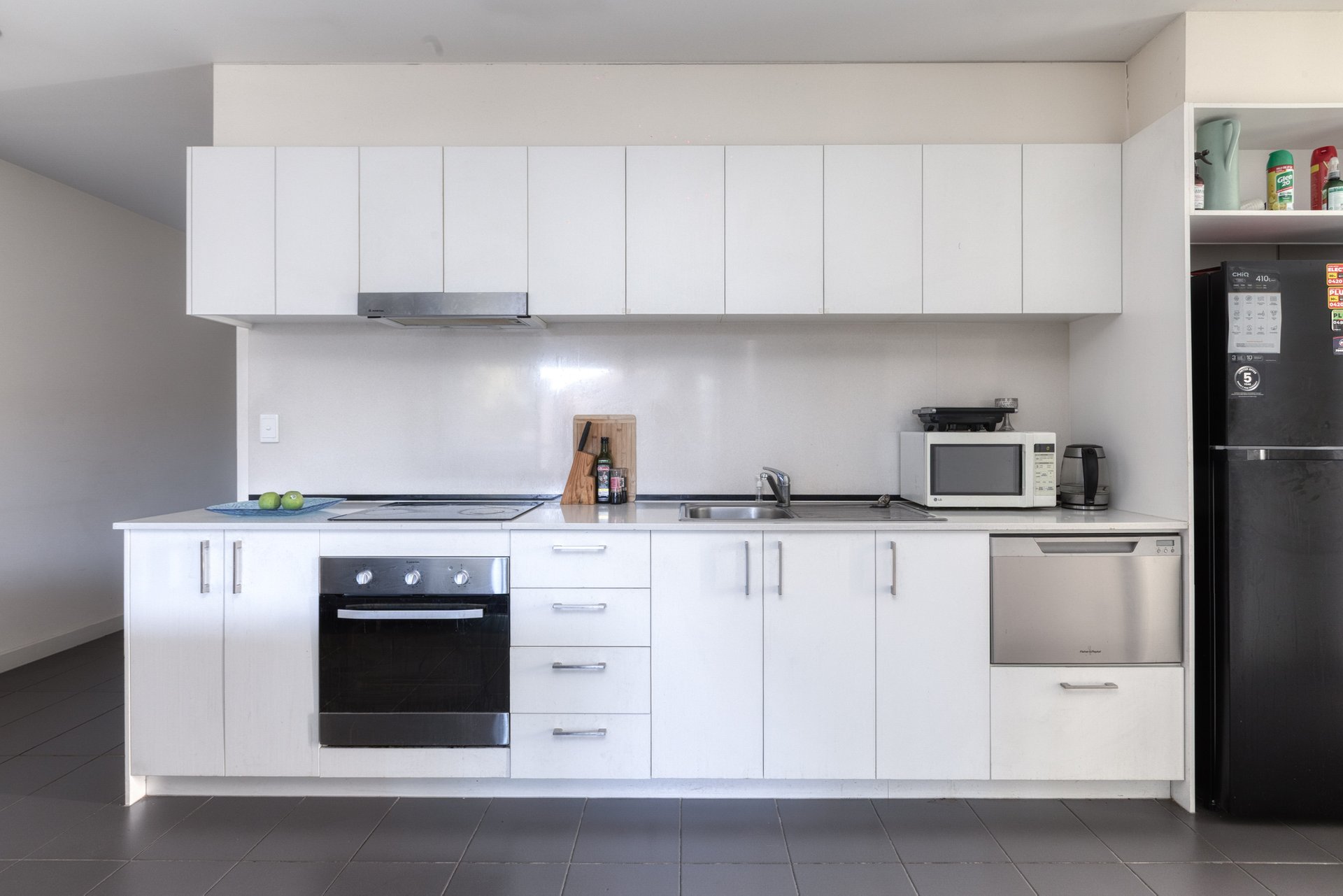 The open-plan kitchen, dining and living area is designed for modern living, flowing seamlessly out to a large north-facing balcony that’s perfect for entertaining or relaxing. Both bedrooms include built-in robes and enjoy direct access to the balcony, creating a strong indoor-outdoor connection, while the central bathroom is well-appointed with modern finishes.