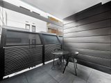 The spacious bedroom is fitted with built-in mirrored robes and soft carpet underfoot, providing a peaceful retreat. The stylish bathroom includes contemporary tiling, quality fixtures and an integrated European laundry, offering modern convenience within a compact footprint. Split-system heating and cooling ensures year-round comfort throughout the apartment.