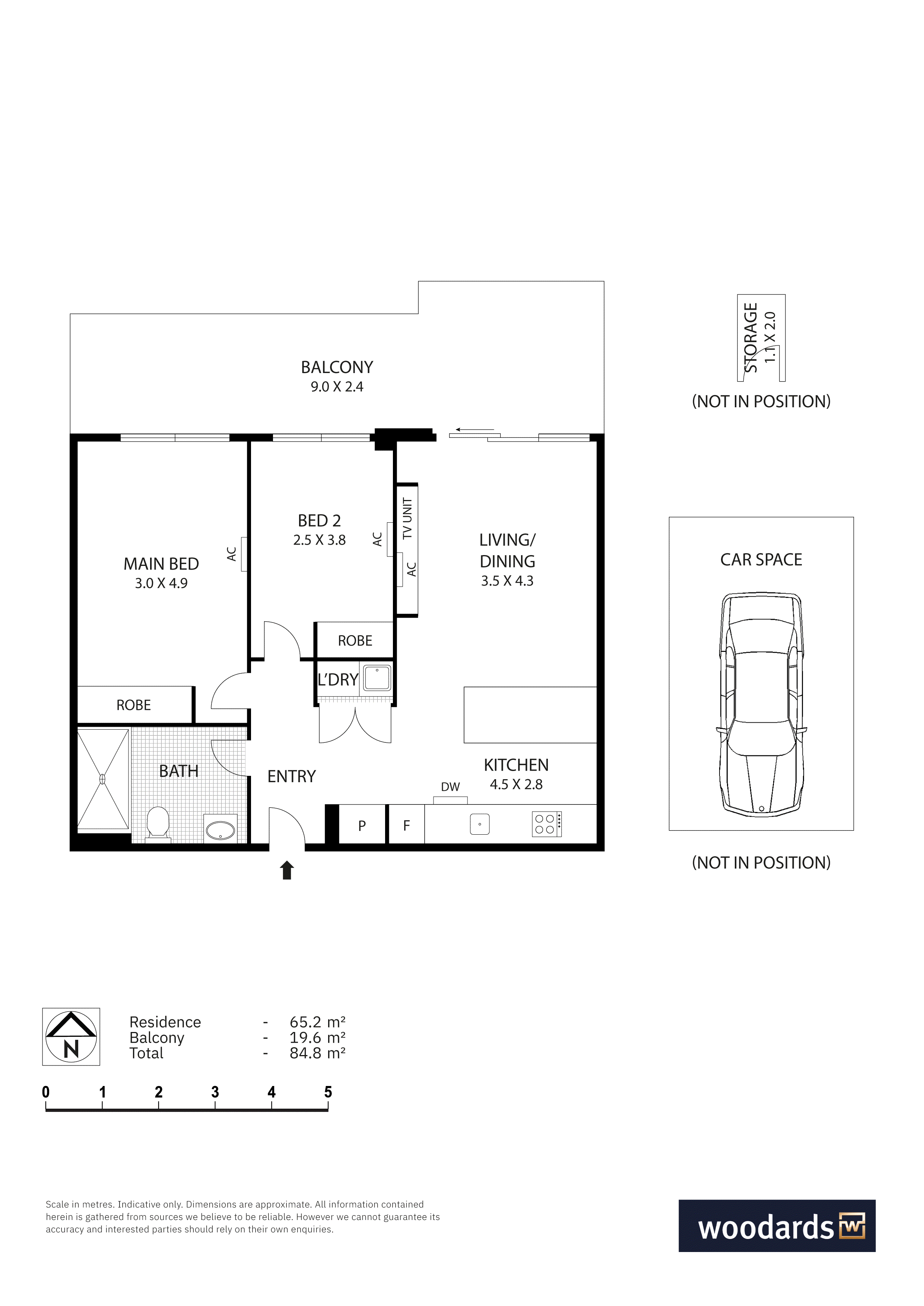 Both bedrooms include built-in robes and their own split systems, while the bathroom is modern and neatly finished. A storage unit on the same level keeps practical items close at hand. A European laundry, car space, secure intercom entry and emergency speaker alarms in the bedrooms complete the package.