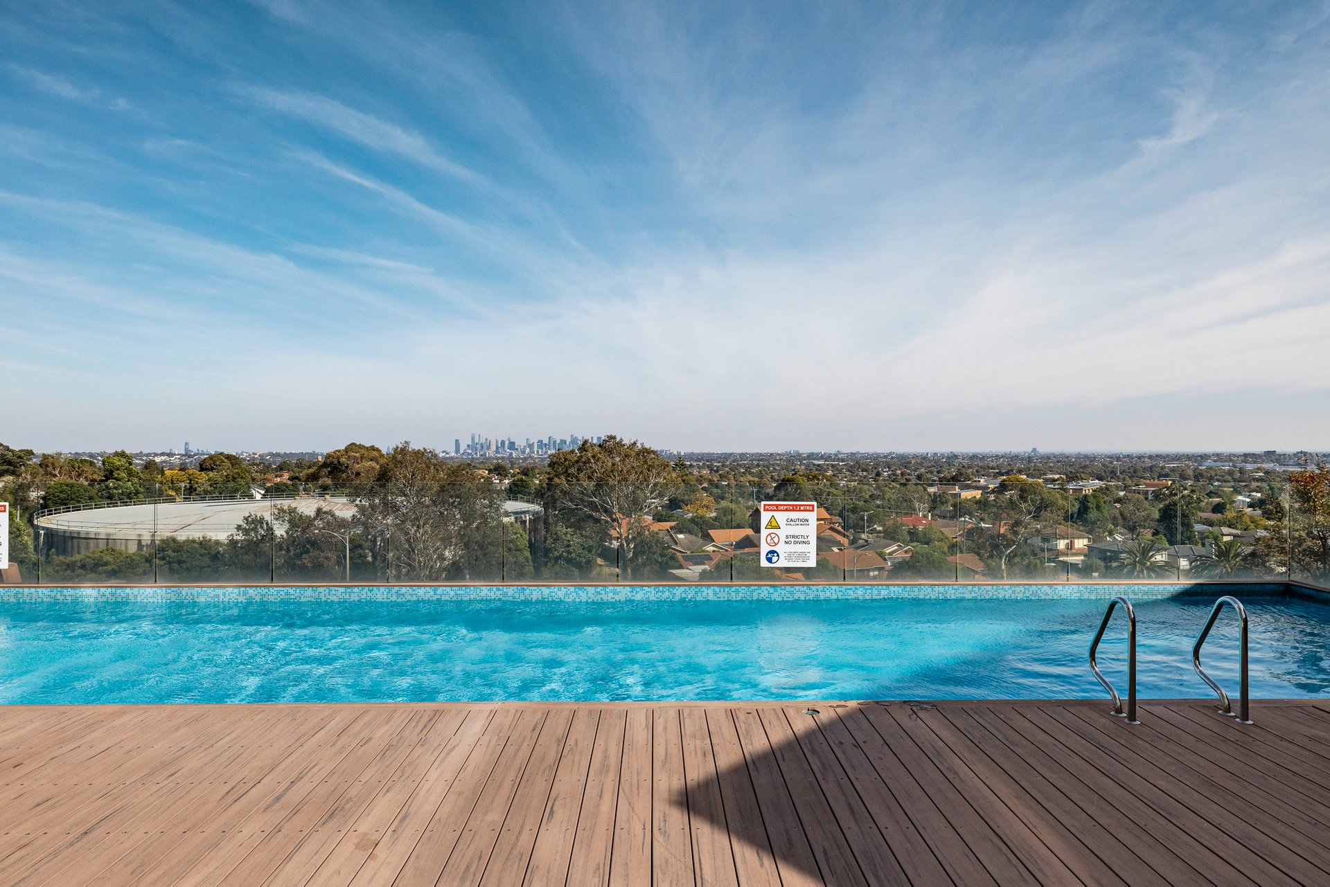 Showcasing the height of sophisticated design and offering a premium lifestyle in a coveted location this Fender Katsalidis designed three bedroom two bathroom apartment impresses with high-end finishes and panoramic views. Clean lines are paired with subtly textured finishes to deliver an inviting open plan domain where a chic Baumatic/Stone appointed soft-close kitchen takes centre stage and opens via full height sliding doors to a balcony where ever-changing sunset views are a highlight. Entertainers will delight in the communal facilities, from a fitted gym, stunning pool with city views, through to communal living and dining with a fully equipped kitchen and leafy atrium alfresco space with built-in BBQ, indoor-outdoor living and entertaining is presented in spectacular style. Add to this spacious bedrooms and designer bathrooms, luxe master with a study nook to the balcony, ensuite and walk-in robe, secure entry, heating/cooling, double glazing, two car spaces and a storage cage, all in one of Melbourne's aspirational suburbs, central to vibrant Burgundy Street and Ivanhoe Village, Austin/Mercy hospital precincts, schools, Heidelberg Station and so much more.