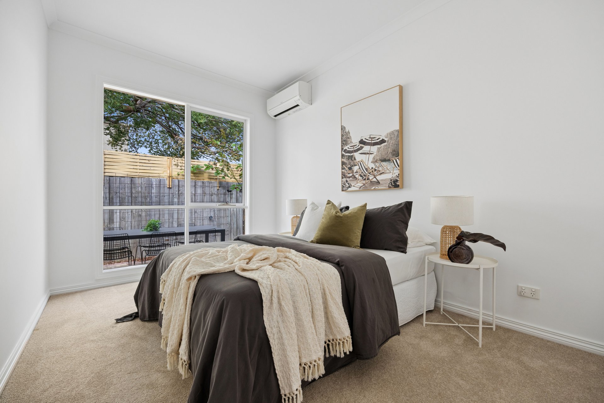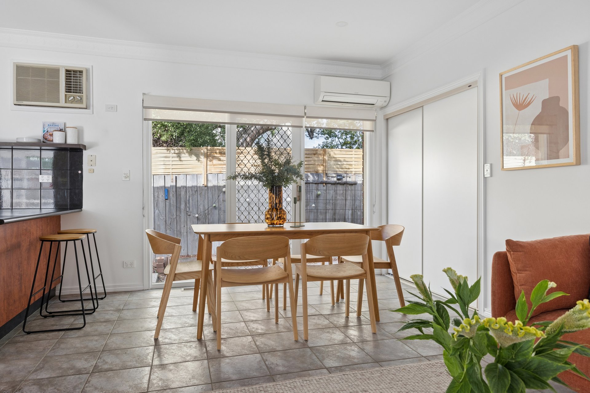 All three bedrooms are fitted with built-in robes and are grouped near a central bathroom with a bath, separate shower and toilet, plus an extra toilet that makes a difference when people are over. There’s also a full laundry, ducted heating and split-system air conditioning throughout, a single garage with access through to the backyard, extra off-street parking and a rainwater tank.
