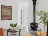 To the left of the entry, the lounge is wrapped in windows, pulling in light and sunshine from the north, west and south. Further in, the living and dining room with a woodfire heater opens through sliding doors to a paved alfresco entertaining patio edged with enough greenery to satisfy a green thumb. The kitchen sits just to the side of this zone, well set up with a gas cooktop, under-bench oven, dishwasher and a breakfast bar that keeps things connected without getting in the way.
