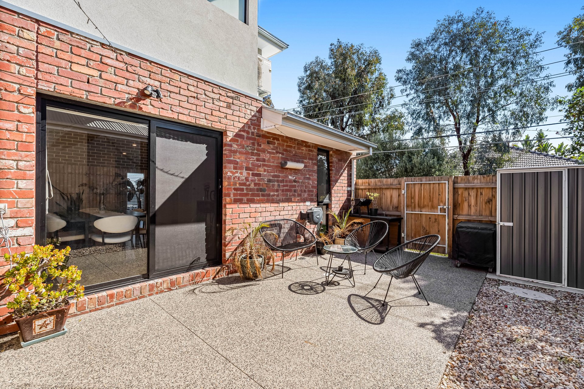 Outdoors, a paved, low-maintenance backyard with additional shed provides the perfect balance of comfort and practicality. Additional features include air conditioning, a single car space, and a modern, low-upkeep design throughout.