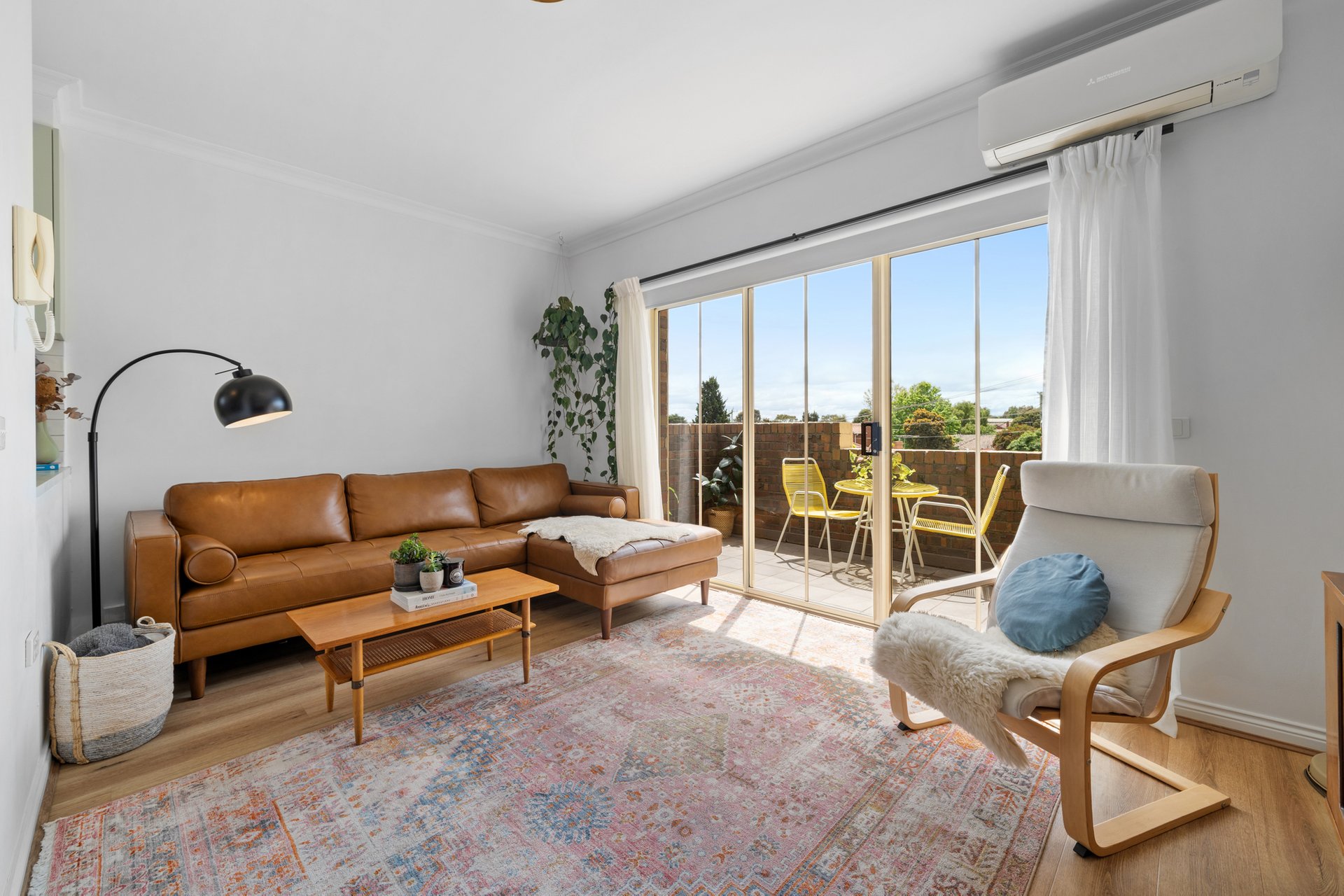 Blending heritage charm with modern comfort, this two bedroom apartment delivers a lifestyle of ease, light, and connectivity in one of Ascot Vale’s most vibrant neighbourhoods. The open plan living and dining zone is enhanced by timber look flooring, large sliding glass doors, and a split system for year round comfort. Flowing effortlessly to a private balcony with a leafy outlook, it’s the perfect spot to enjoy morning coffee or evening drinks surrounded by fresh air.
