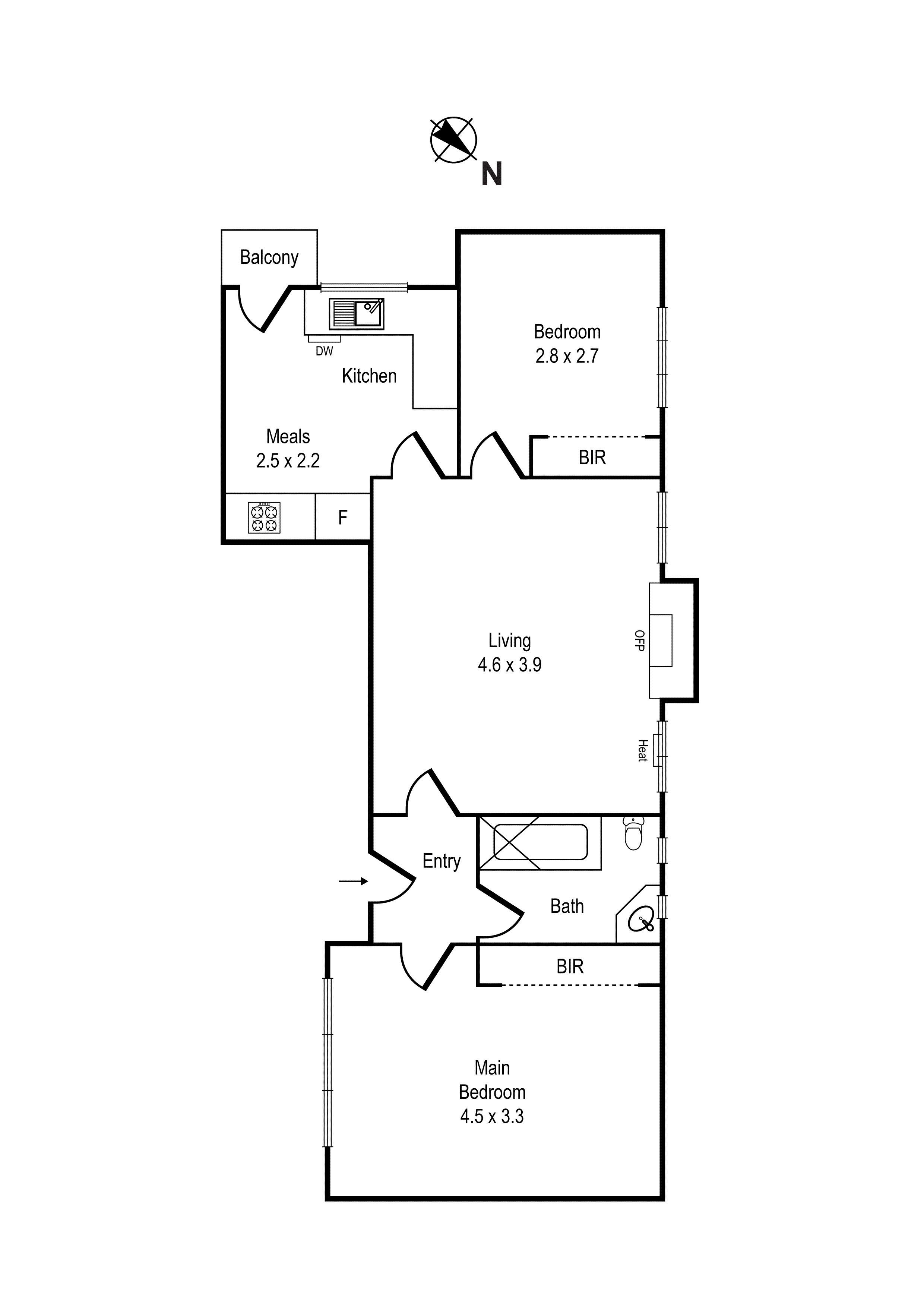 Introduced by a distinct entrance hall, the floorplan flows through to an oversized living room plus a duo of north-westerly window luring in plenty of sunshine. Offering a heater to ward off the winter chill, this space gives way to the generous kitchen and meals area equipped with quality appliances including gas cooking, fridge and a full-size dishwasher.