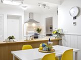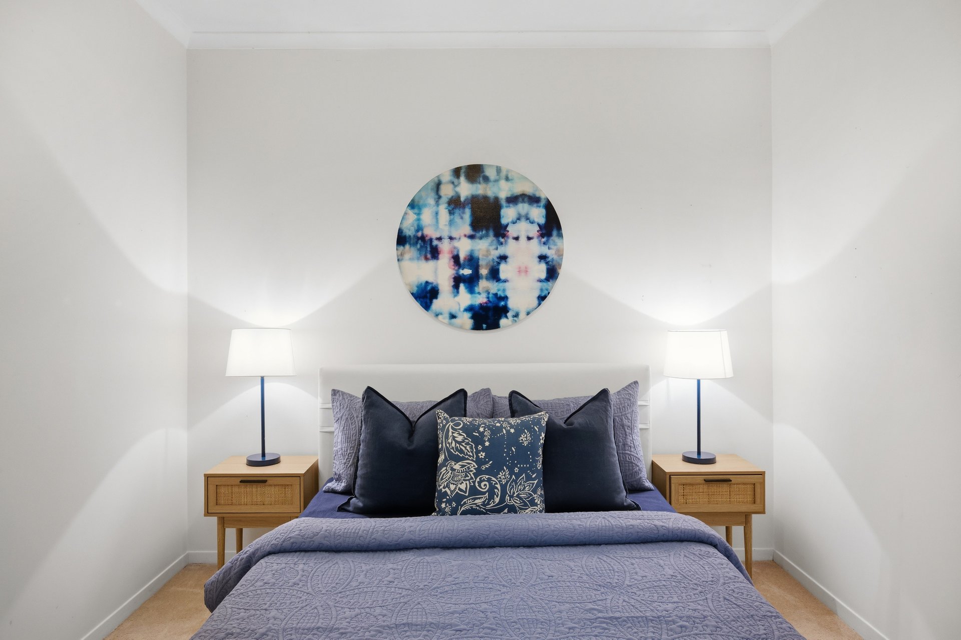 The main home feels easy and welcoming, with two separate living zones connected by a central skylit kitchen with electric cooking and dishwasher. All three bedrooms include walk-in robes, while the bathroom features an ensuite-effect layout and separate powder room to help streamline busy mornings.