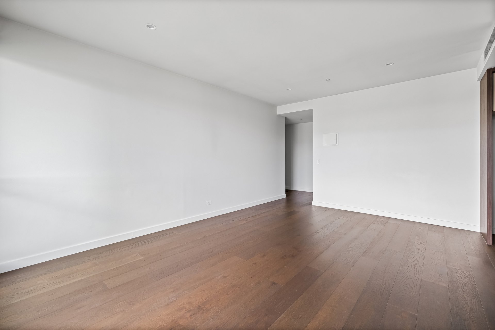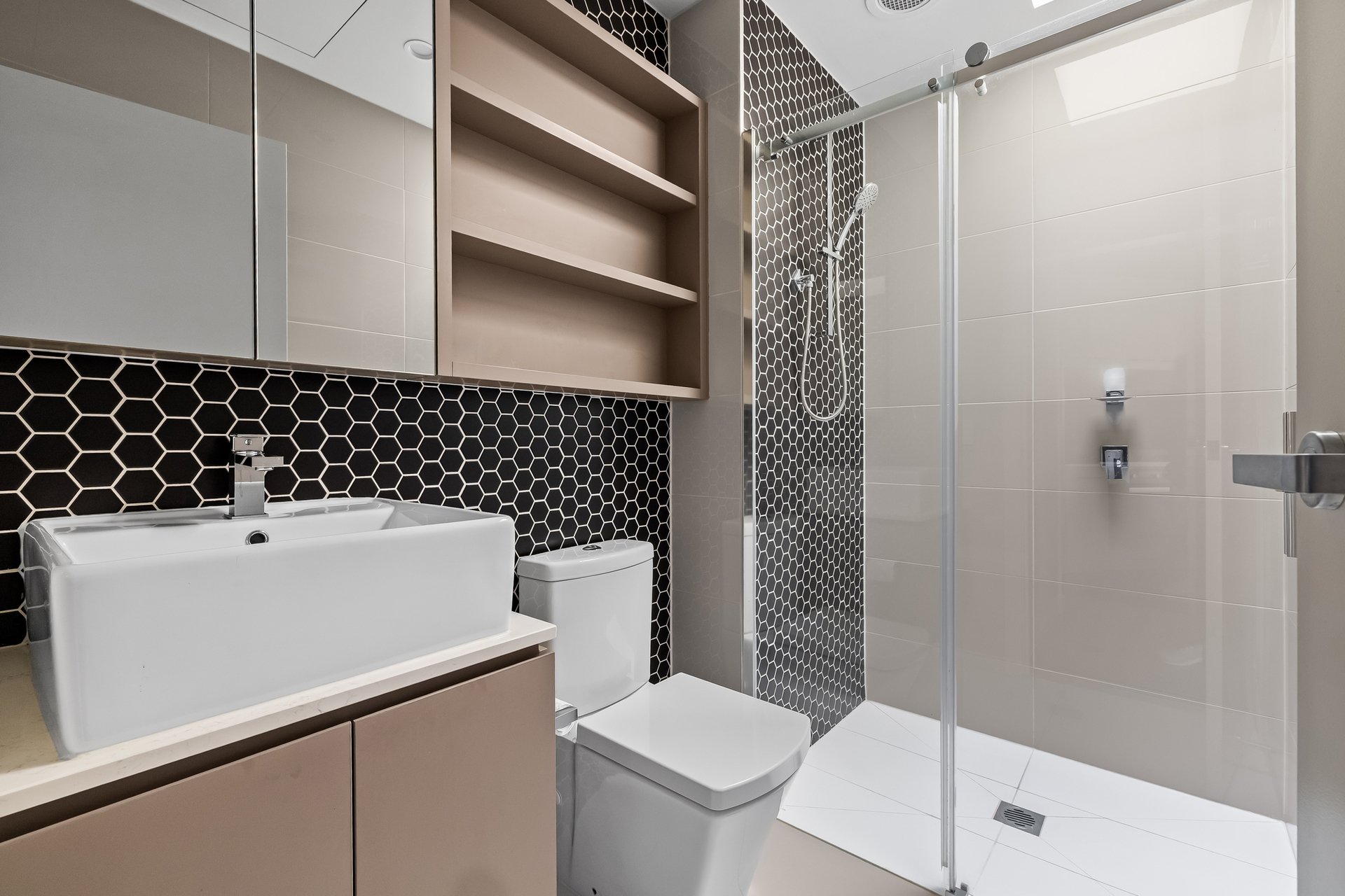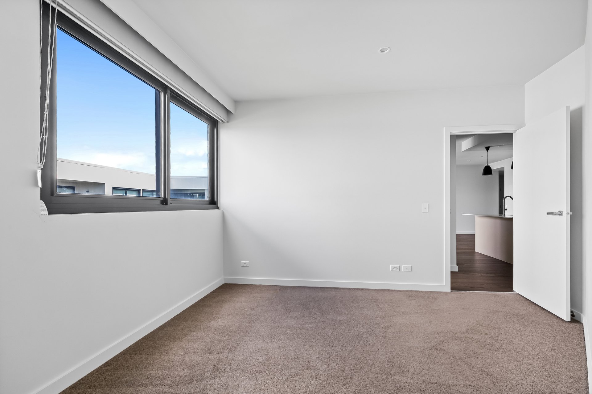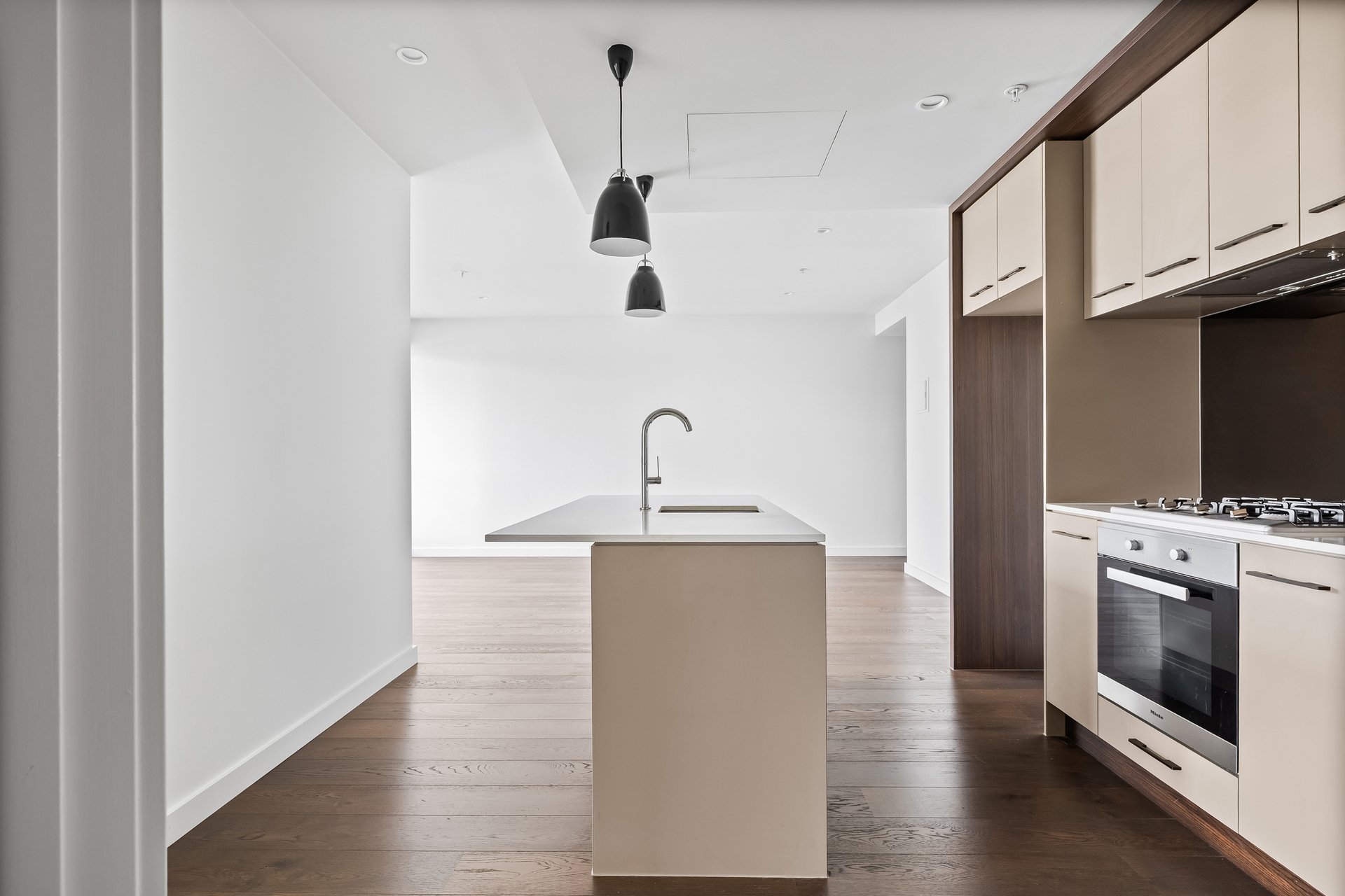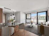 This refined two-bedroom, two-bathroom apartment delivers a practical yet upscale layout tailored for modern living. As you enter, a dedicated study/office nook sits at the end of the hallway, creating an ideal space for working from home. Beyond this, a generous open-plan living and dining area unfolds, framed by full-height windows that bathe the space in natural light.