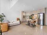 A one bedroom floor-plan of immediate appeal defines this apartment, in which the ideas of Metaxas Architects are evident throughout a living/dining area that's accompanied by an inviting balcony and an open plan kitchen featuring stone benches and stainless steel appliances.