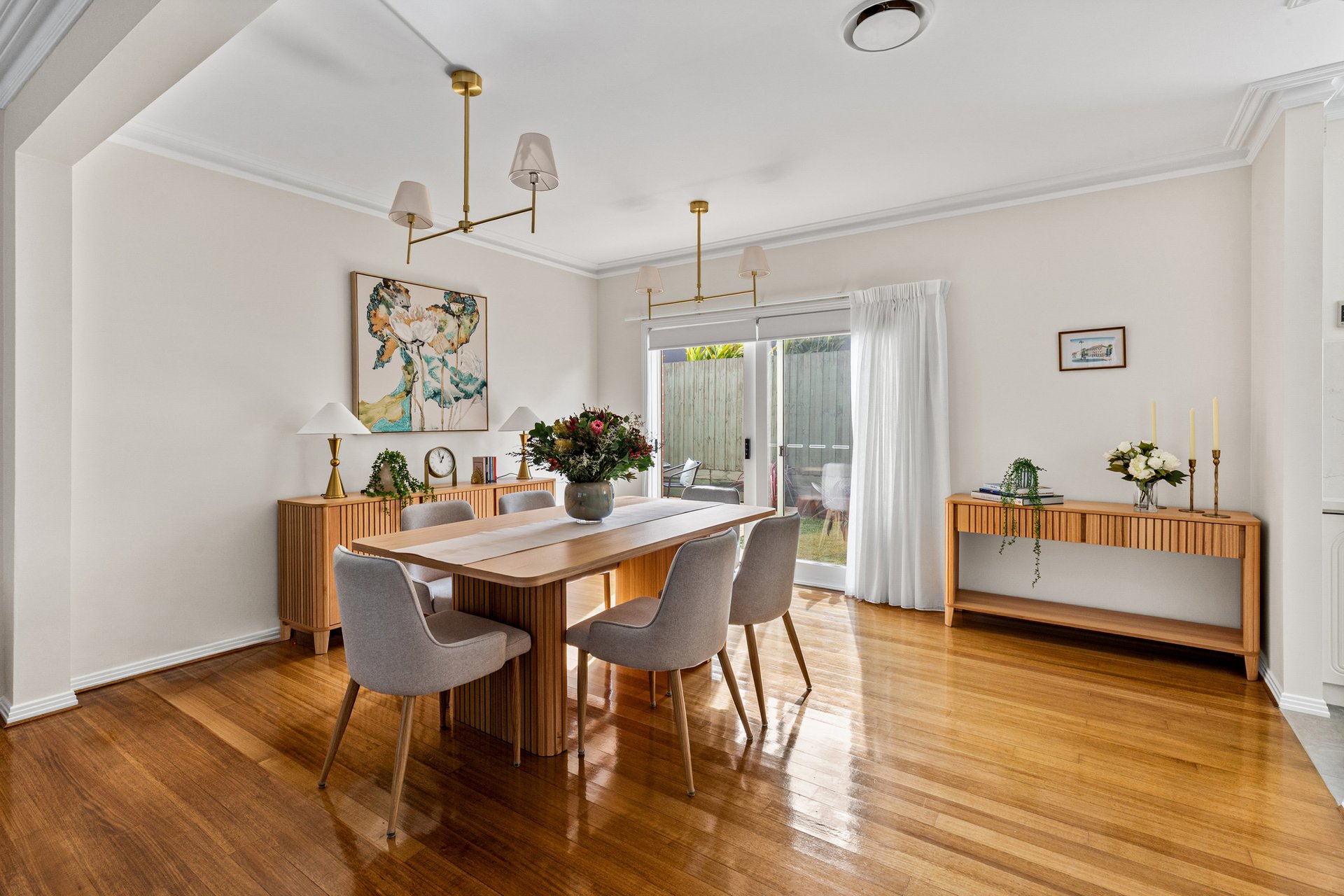 A thoughtfully reconfigured floorplan introduces a generous, light filled ground floor, where the removal of a structural wall has created a seamless open plan living and dining domain with excellent natural flow. Timber floors add warmth and character, while the renovated 2025 kitchen features quality Bosch appliances, excellent storage and a highly functional layout for everyday living and entertaining.